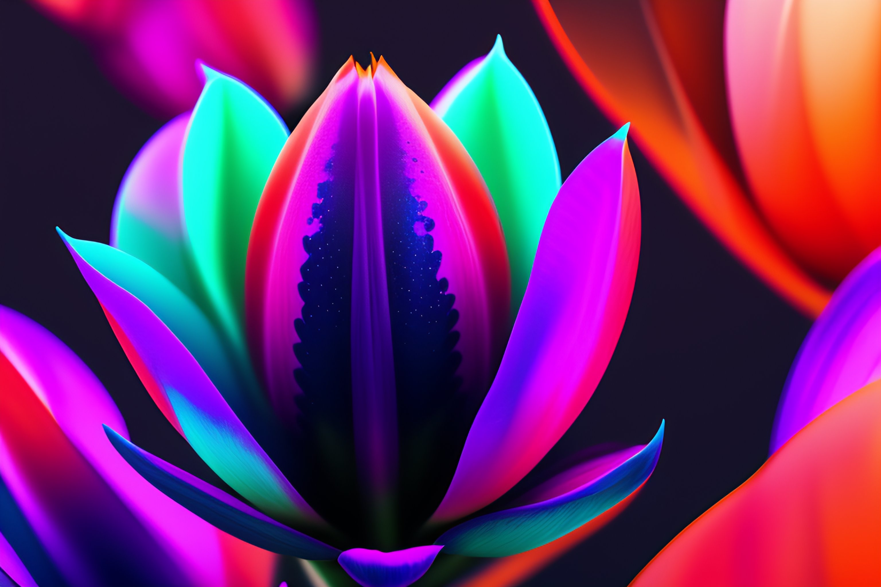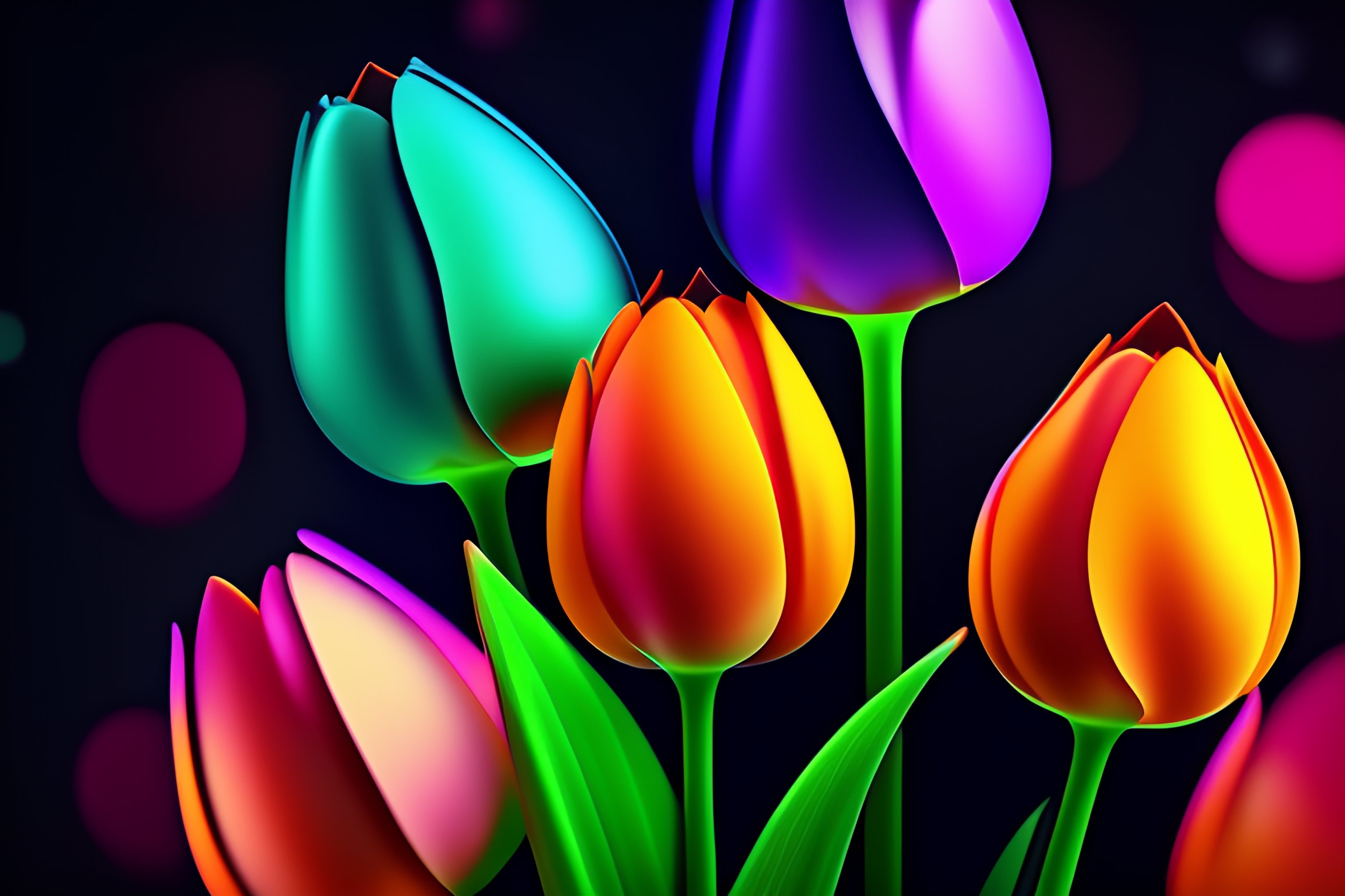 Dark minimalist background with low poly flowers tulip splash abstract neon vector colored degraded gradient abstract hdr, uhd, 4k, 8k trending on artstation and deviantart bokeh