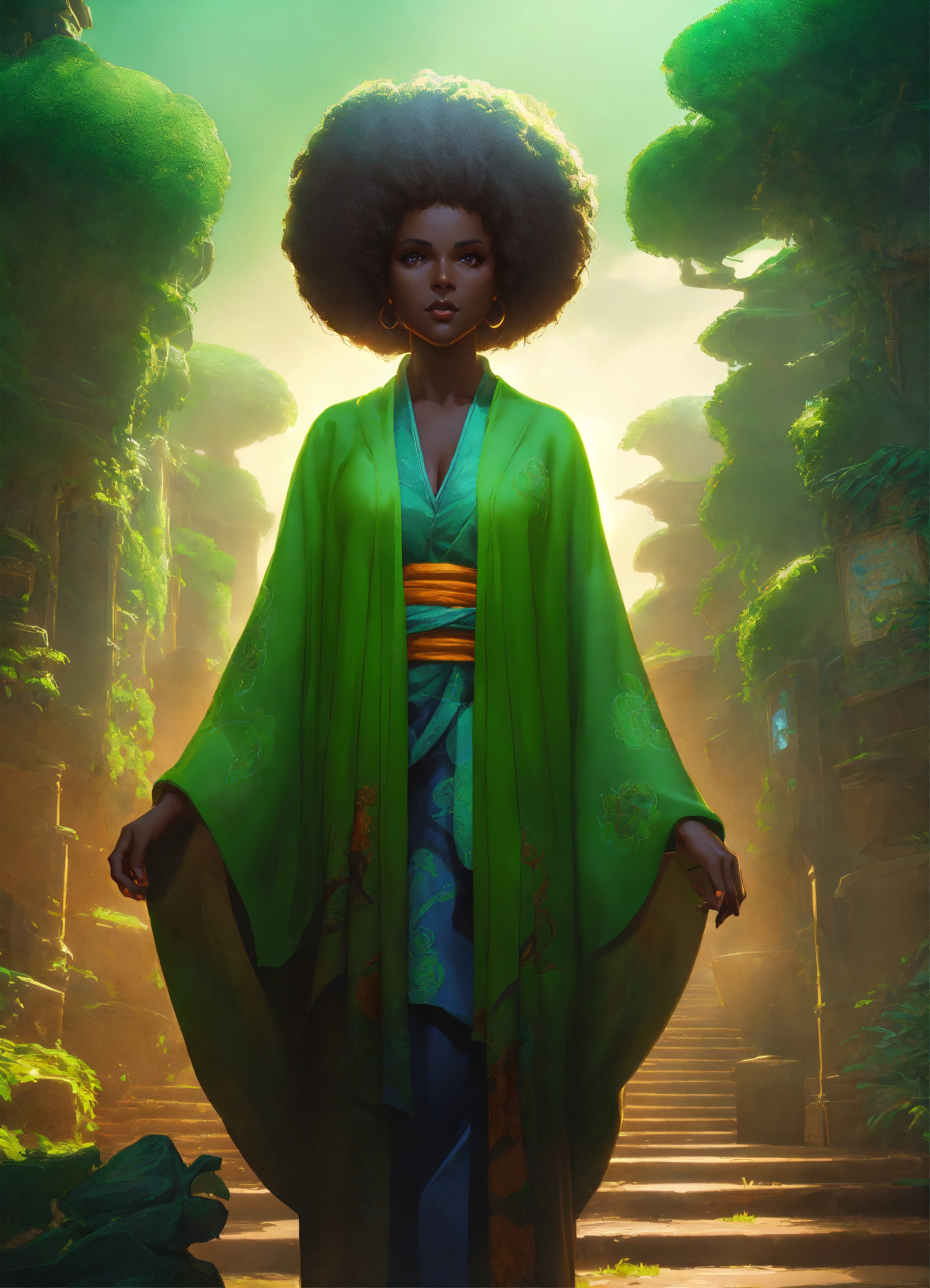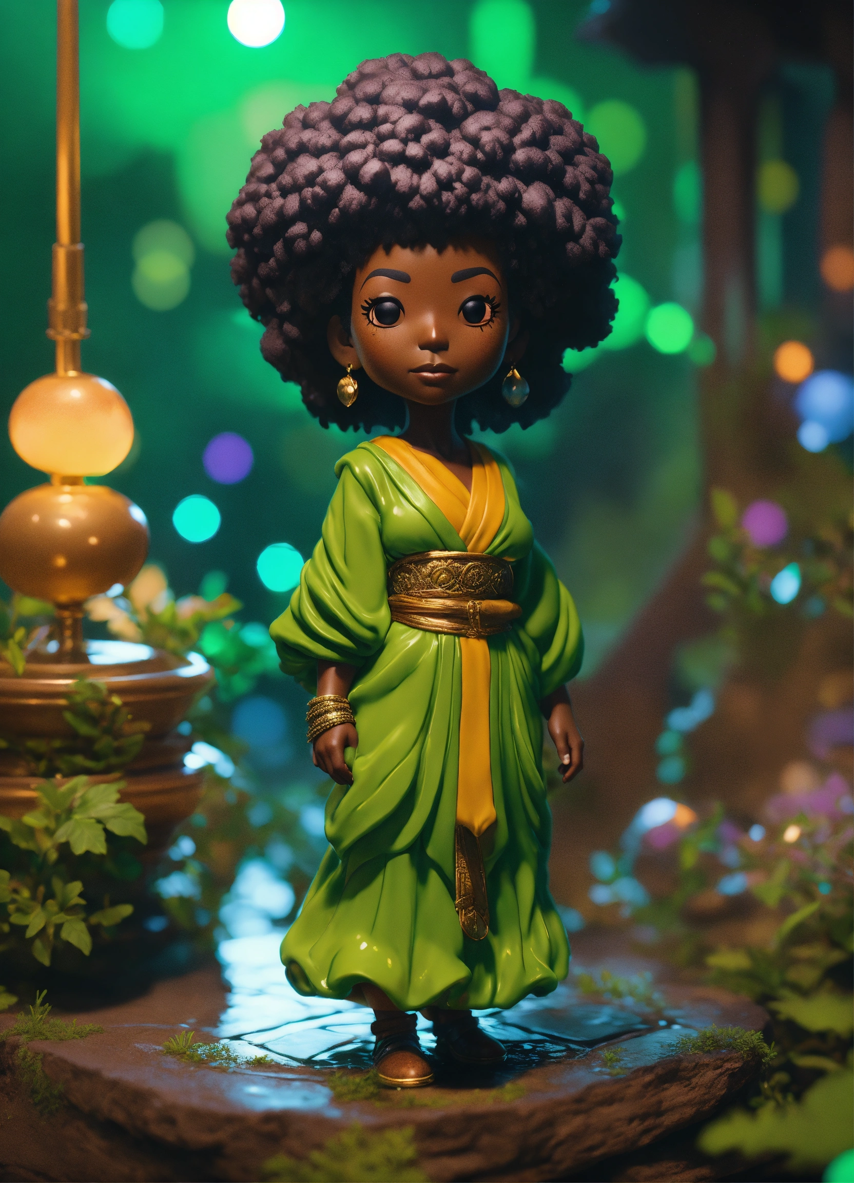 Highly detailed funko pop of dark skinned black grandmother of goku in green, unreal engine, fantasy art by greg rutkowski, loish, rhads, makoto shinkai and lois van baarle, ilya kuvshinov, rossdraws global illumination, radiant light, detailed and intricate environment