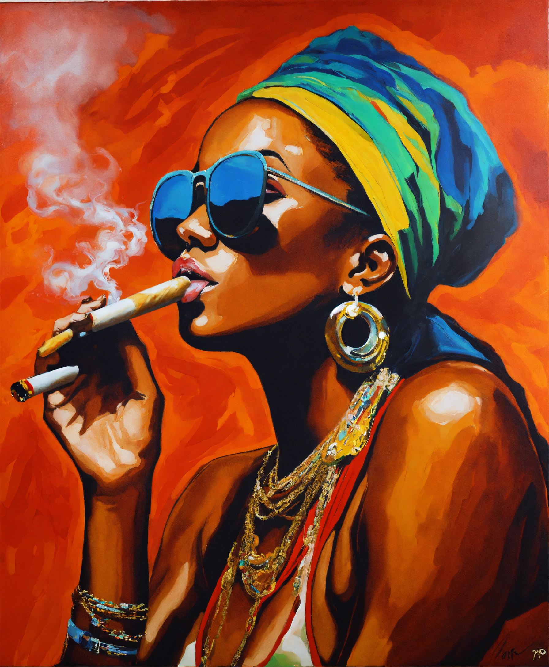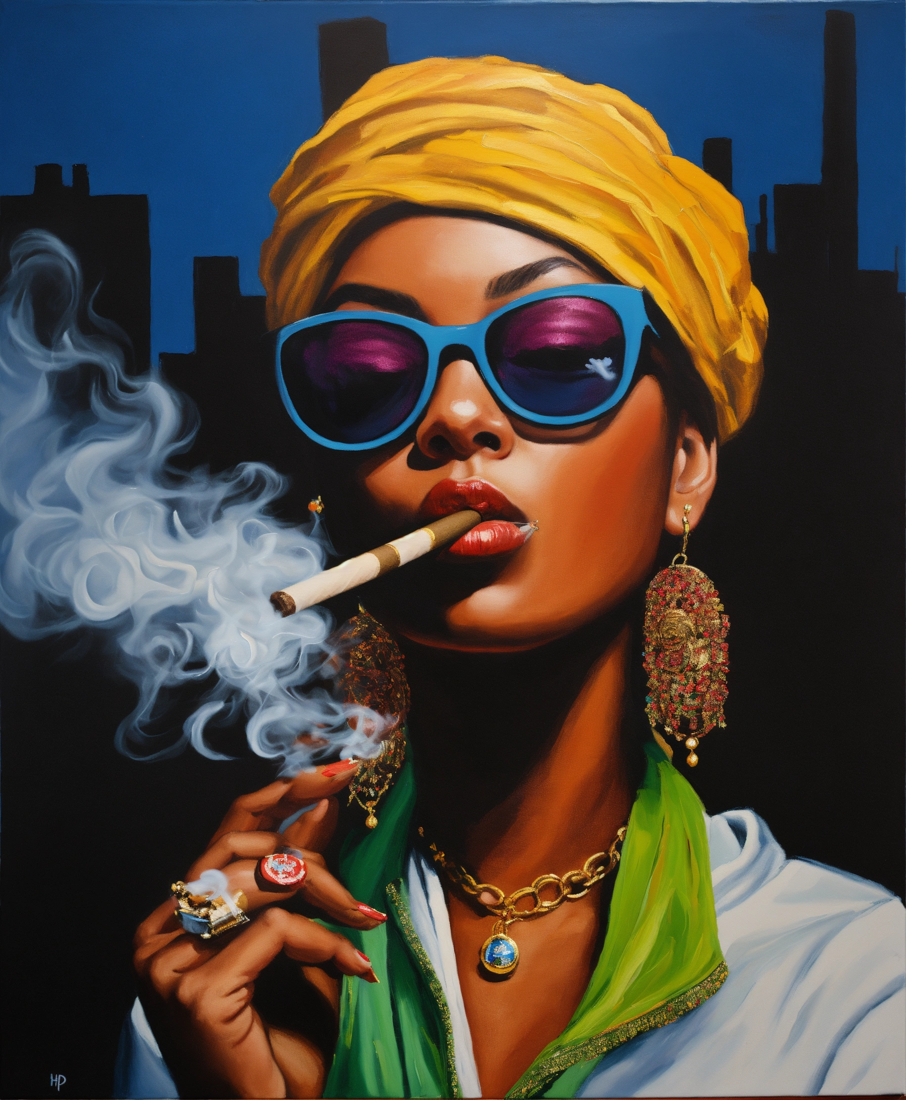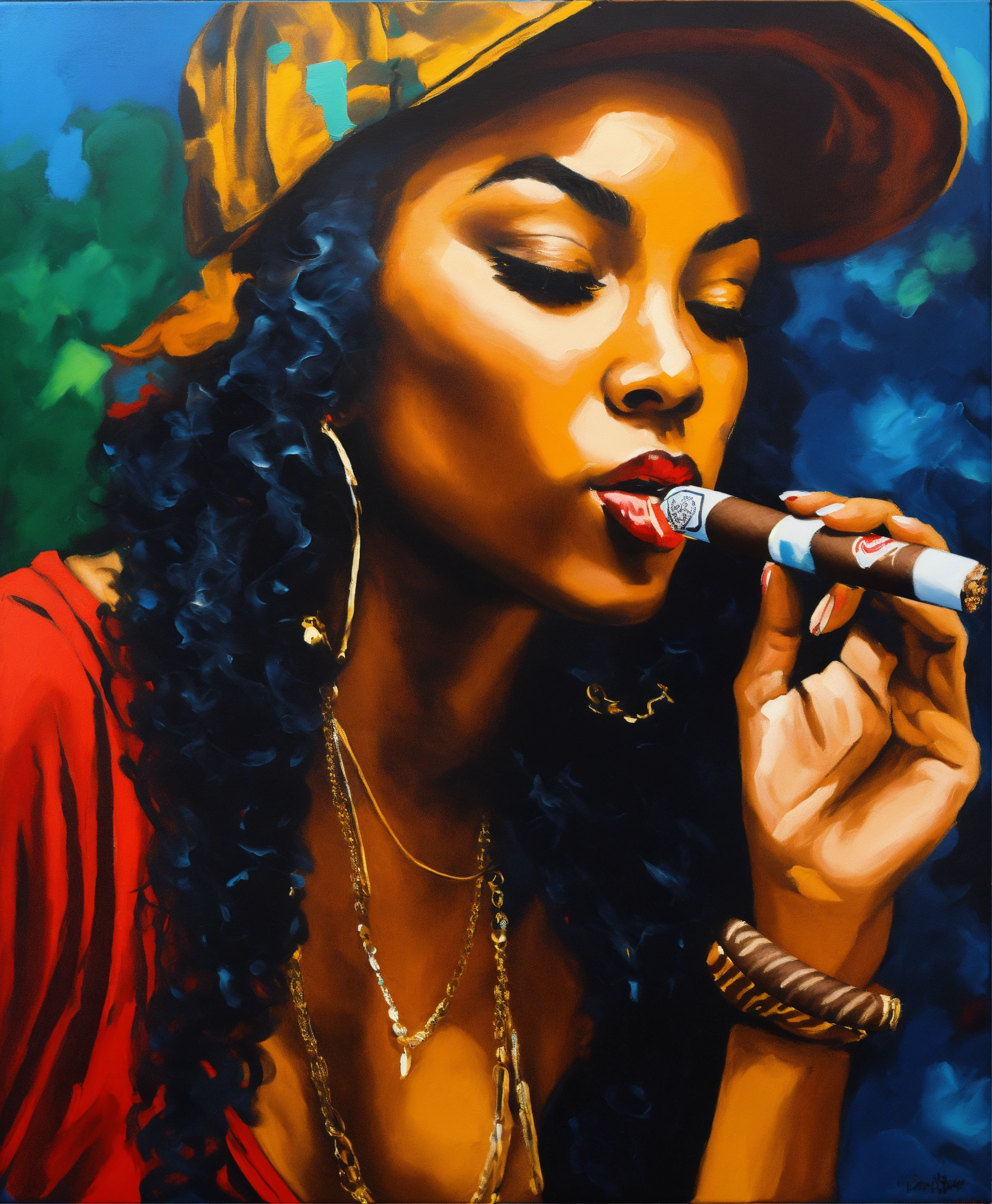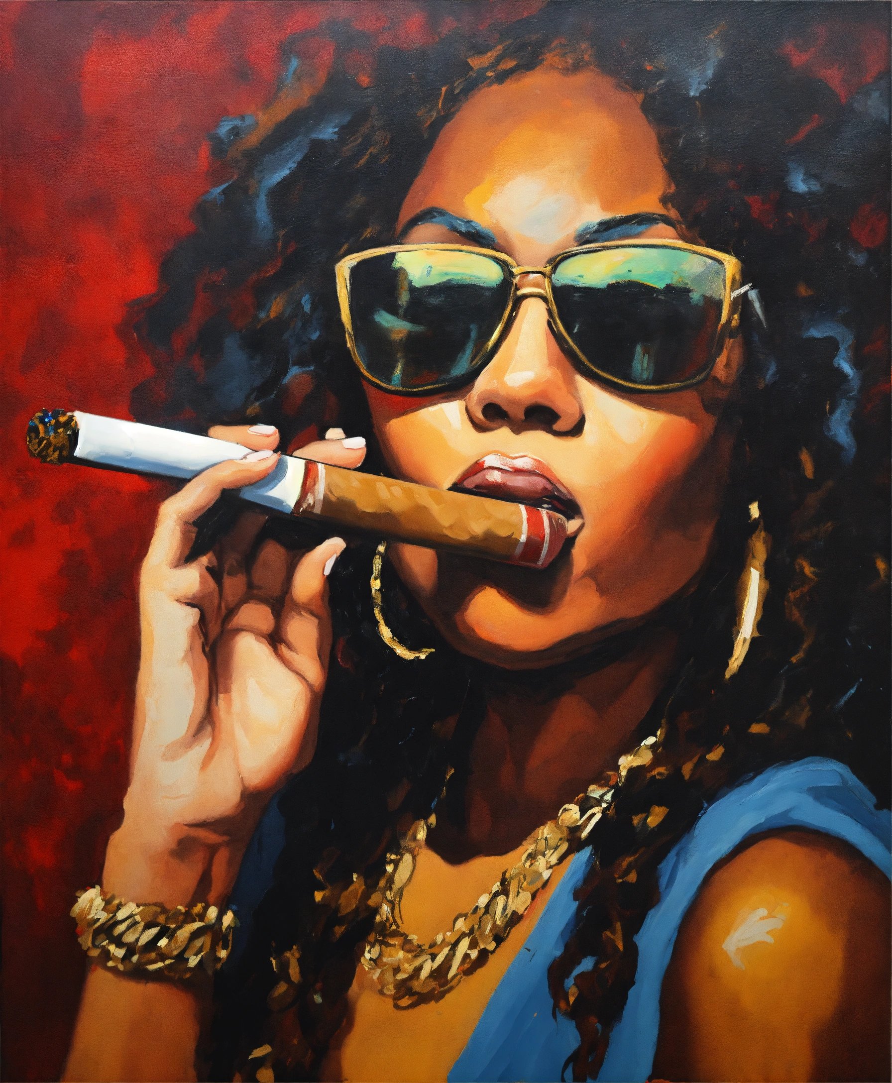 Hip hop woman smoking a cigar
