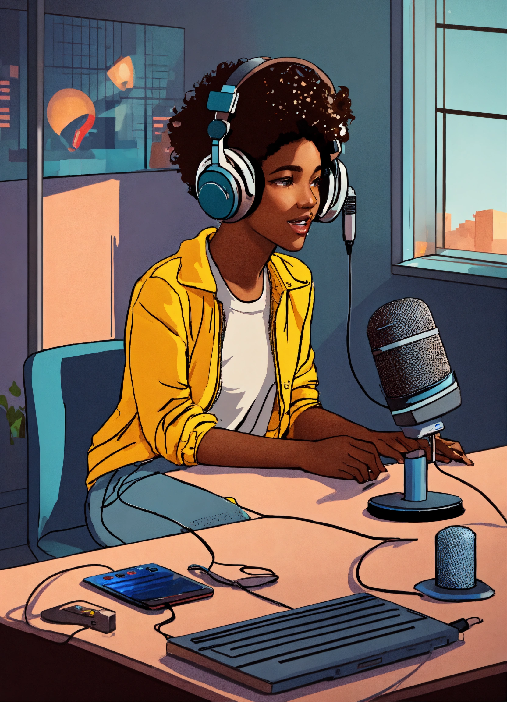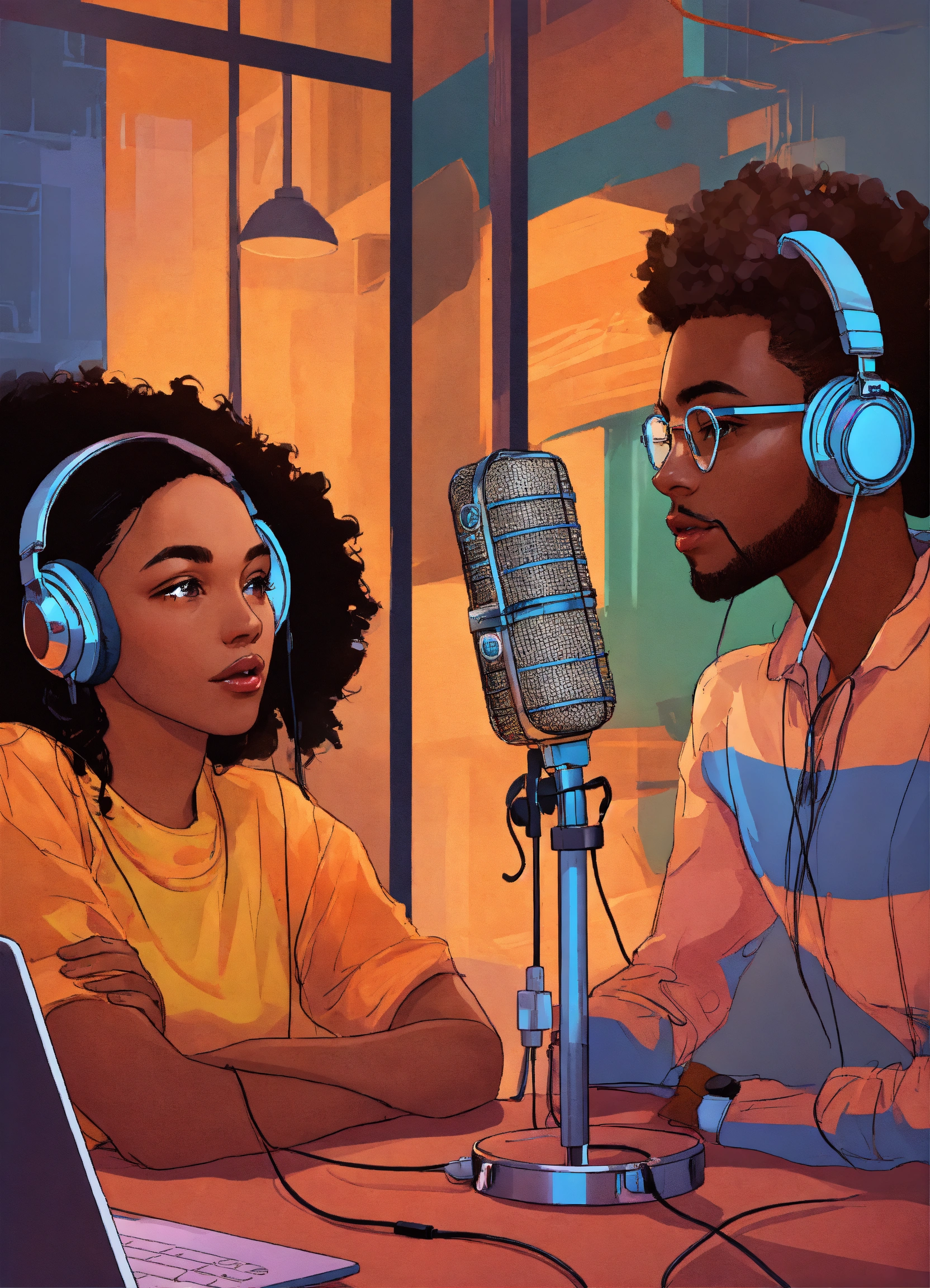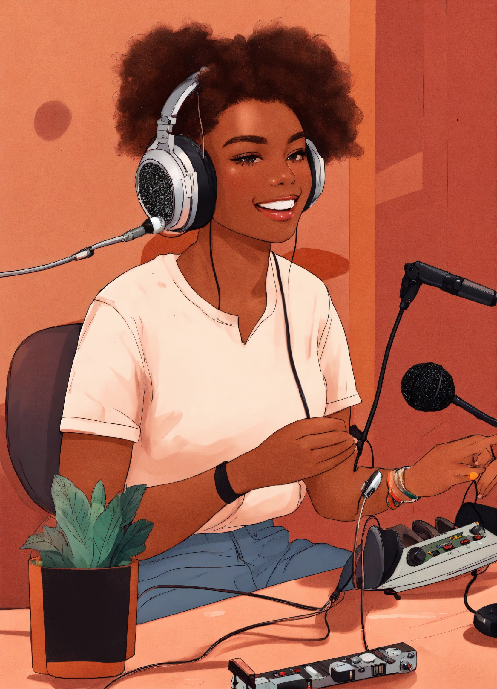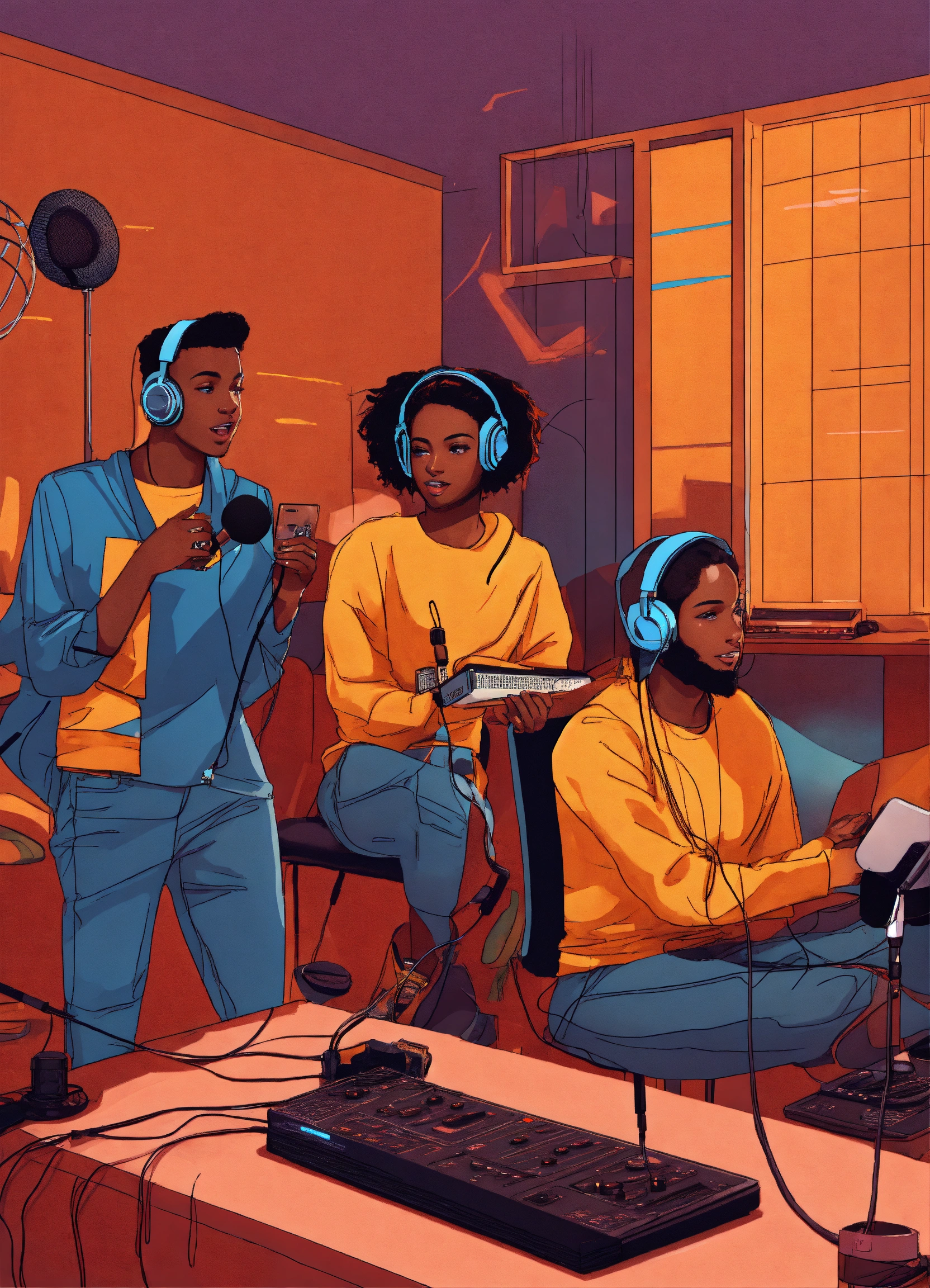 Young people from a diverse background doing radio and podcasting