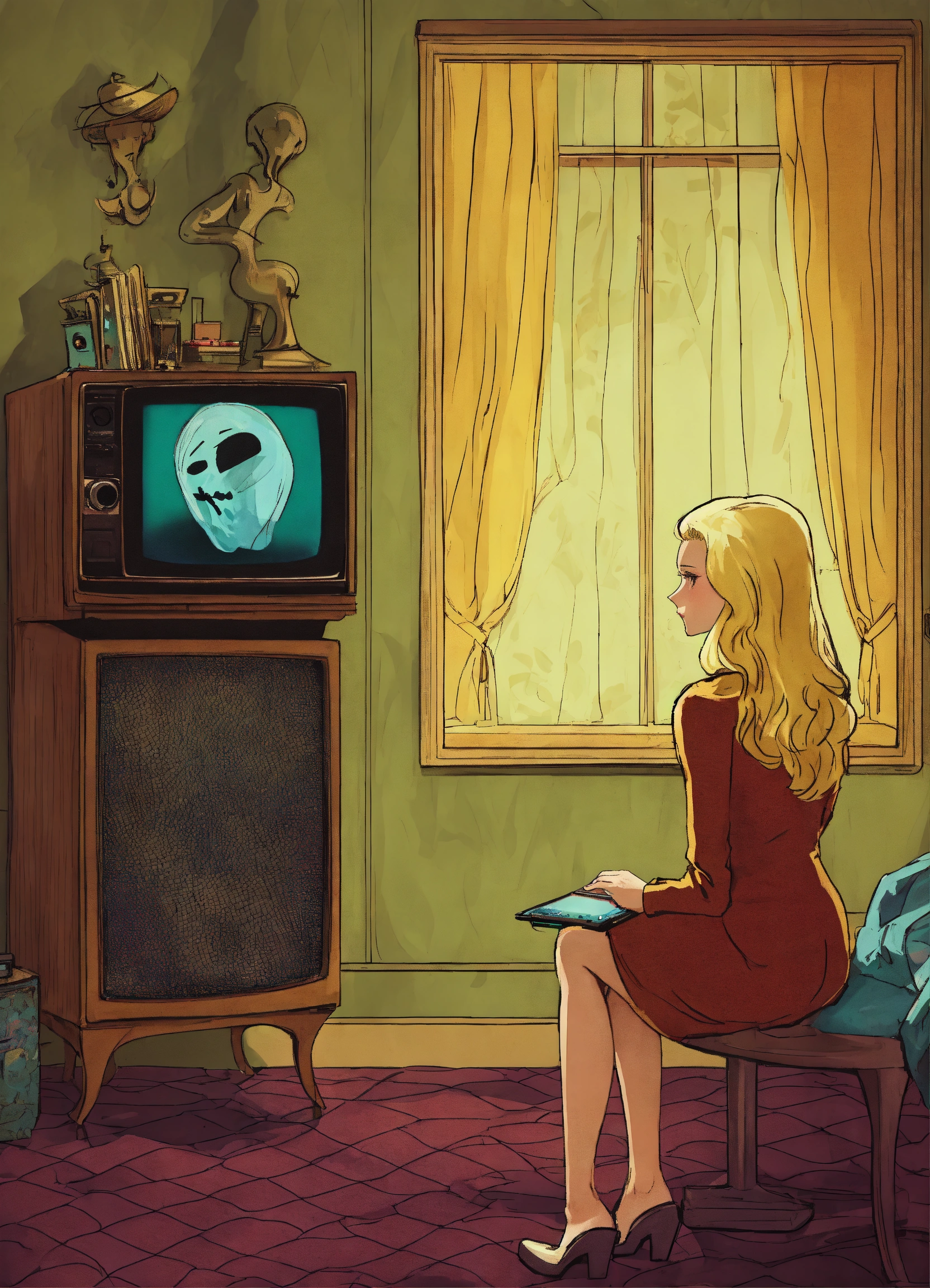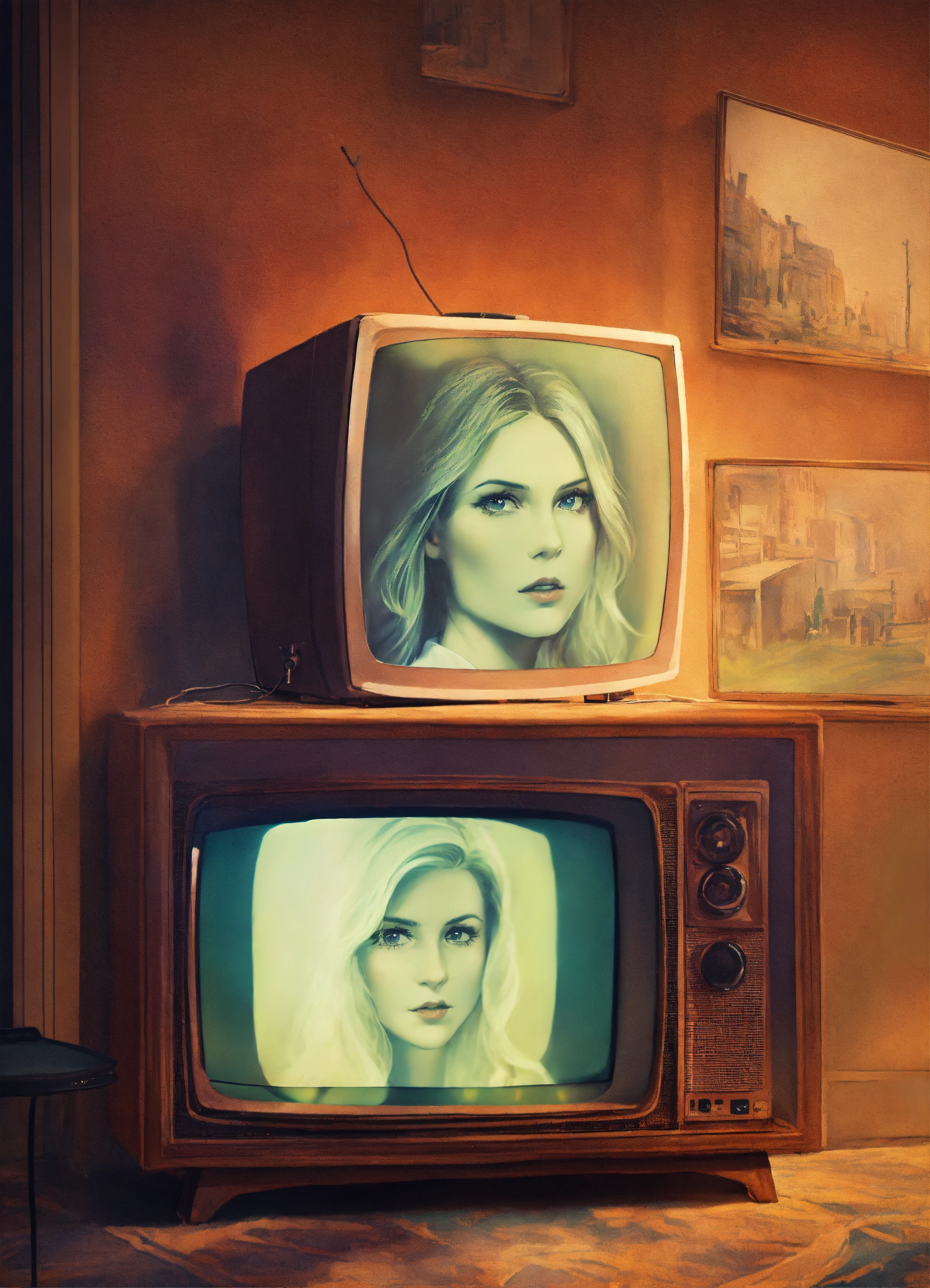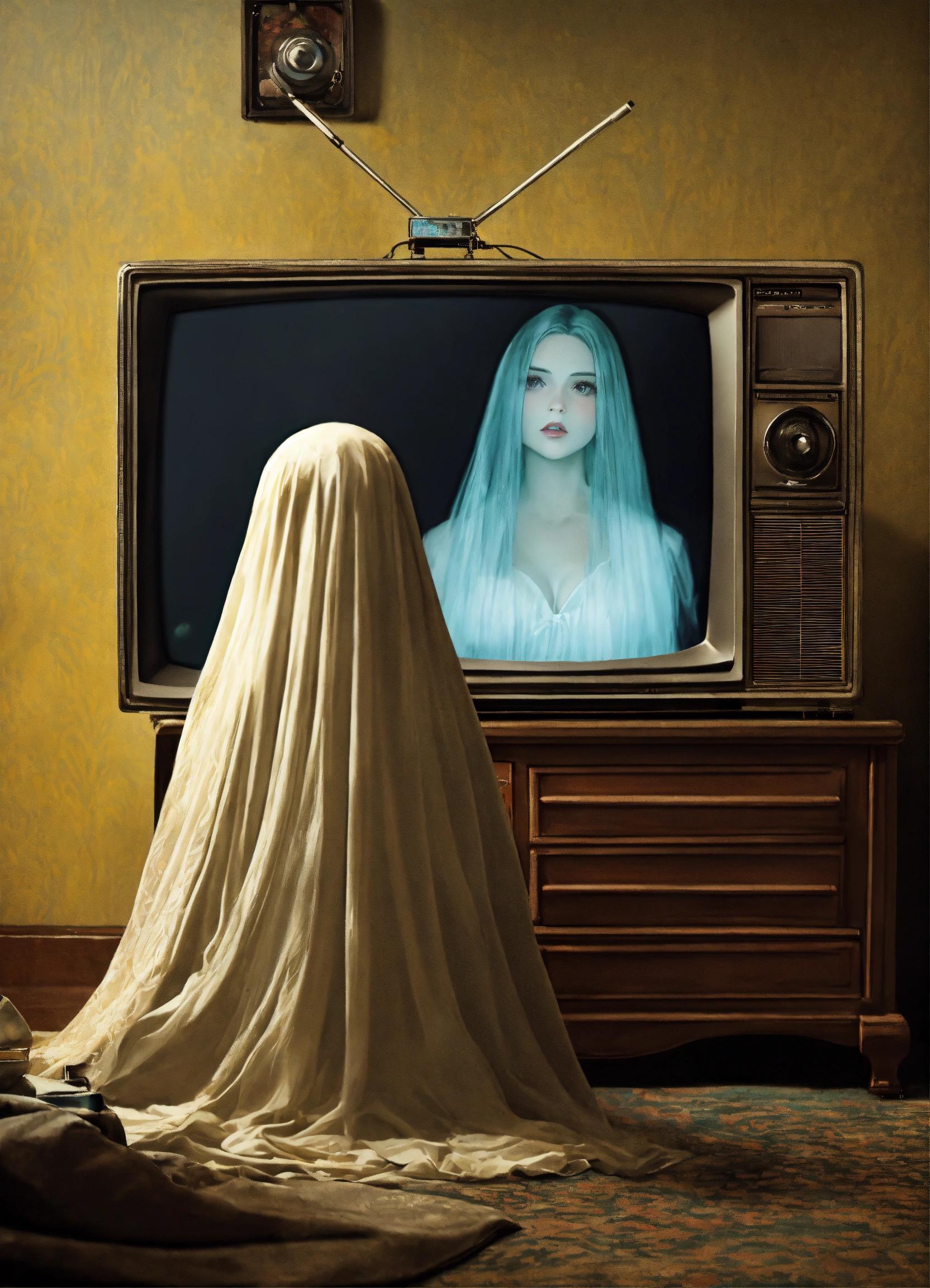 Television where we see the ghost of a pretty white woman with a bad look who observes us through the tv