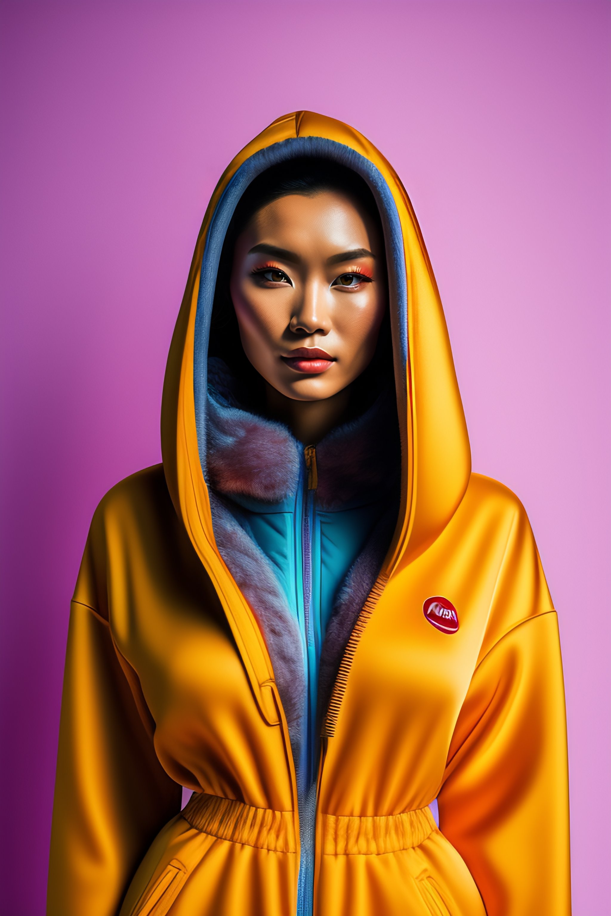 Well lit fashion shoot portrait of female statue wearing huge oodie (oodies are fleece jumpsuits with a hood that are designed to be worn as comfortable and casual clothing) in the style and colour of a beauxbatons uniform over size loungewear, sharp focus, clear, detailed, glamorous, symmetrical, vogue, editorial, fashion, hyperrealistic and heavy detailed, leica sl 2 5 0 mm, vivid color, high quality, high textured, real life