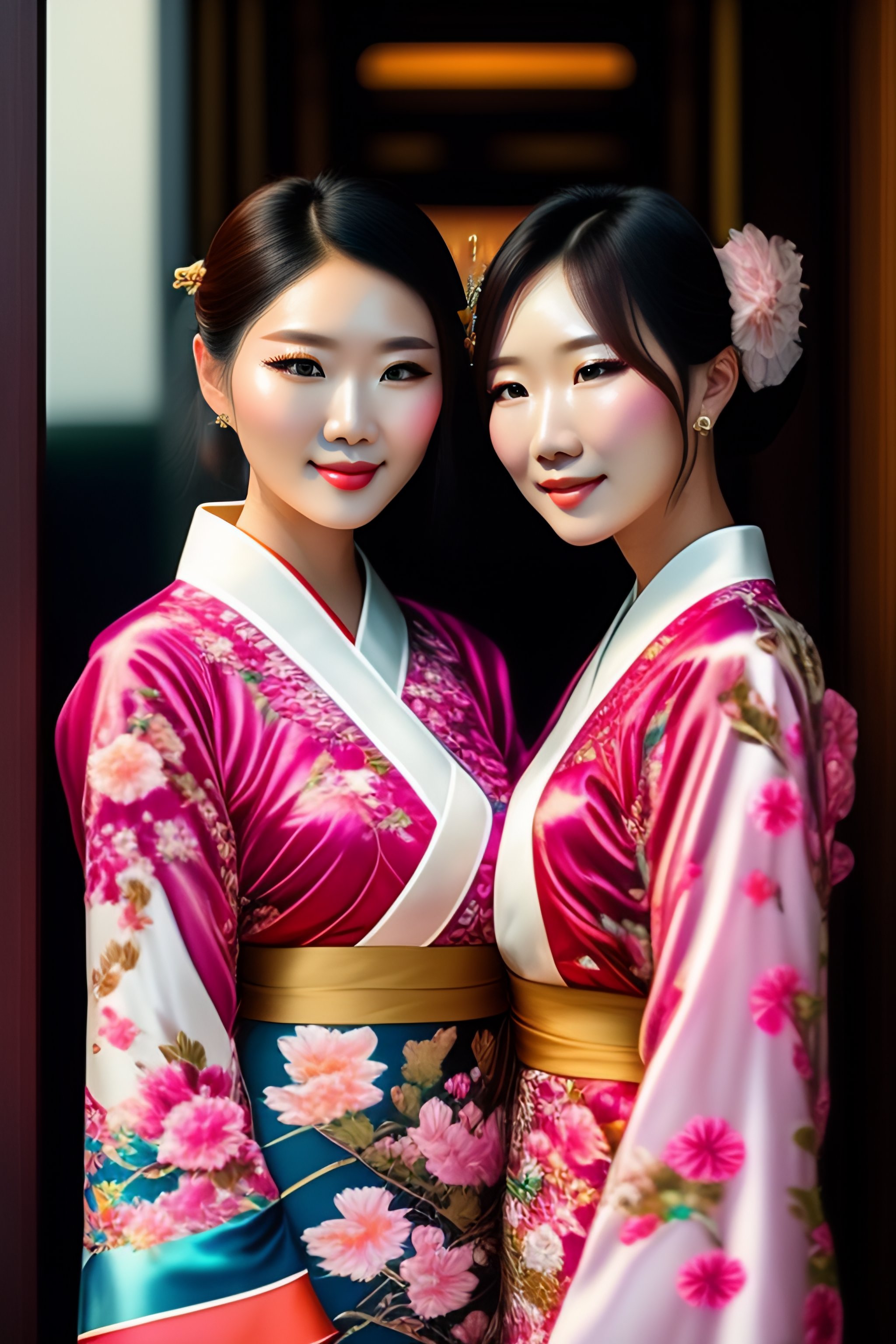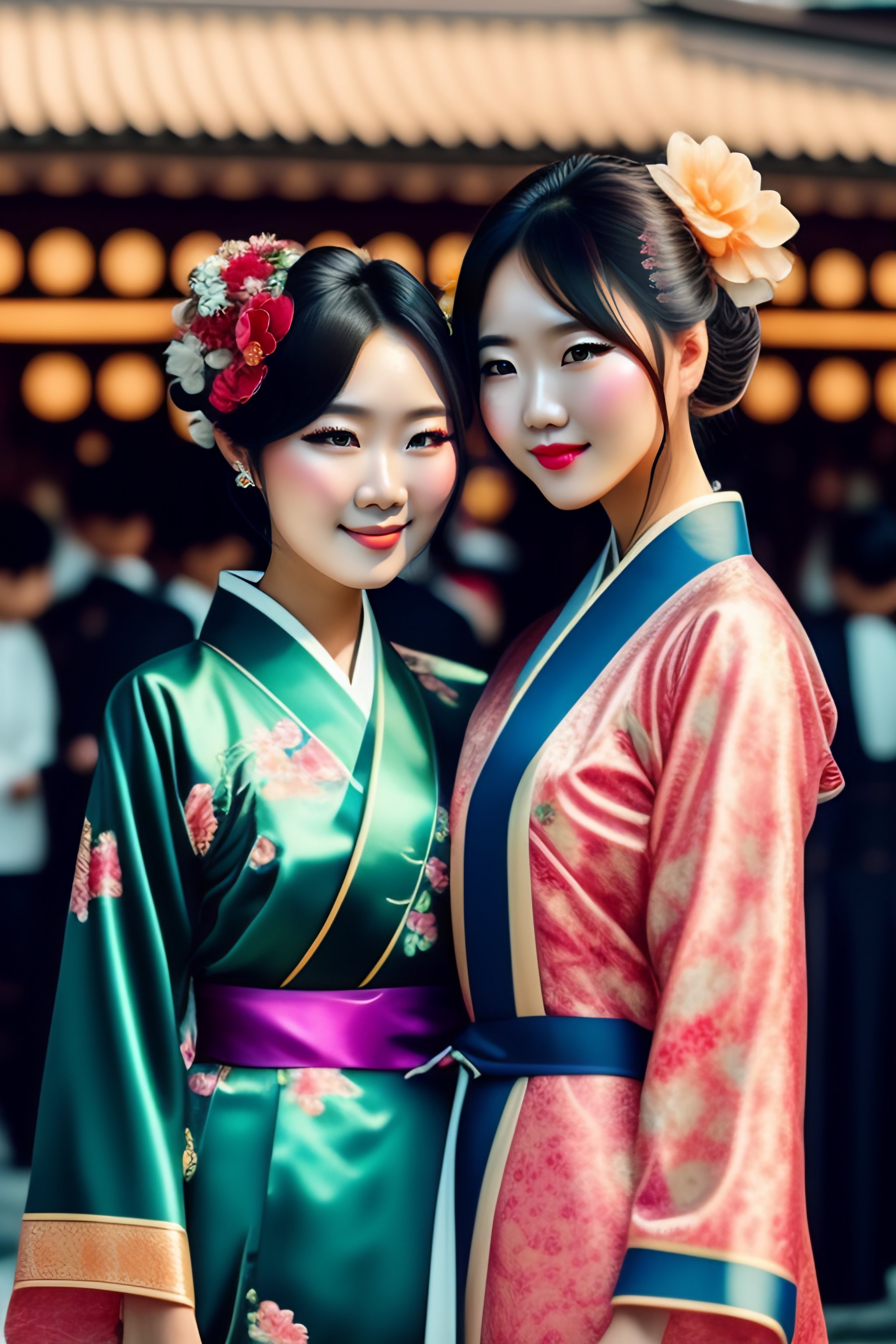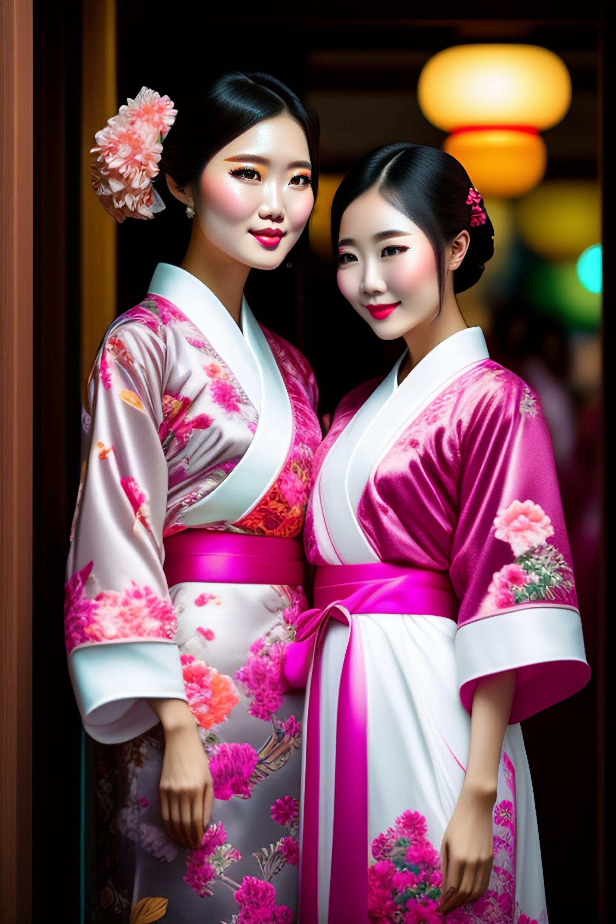 Two beautiful fashion taiwan girl wear elegant yukata in festival by hisaji hari