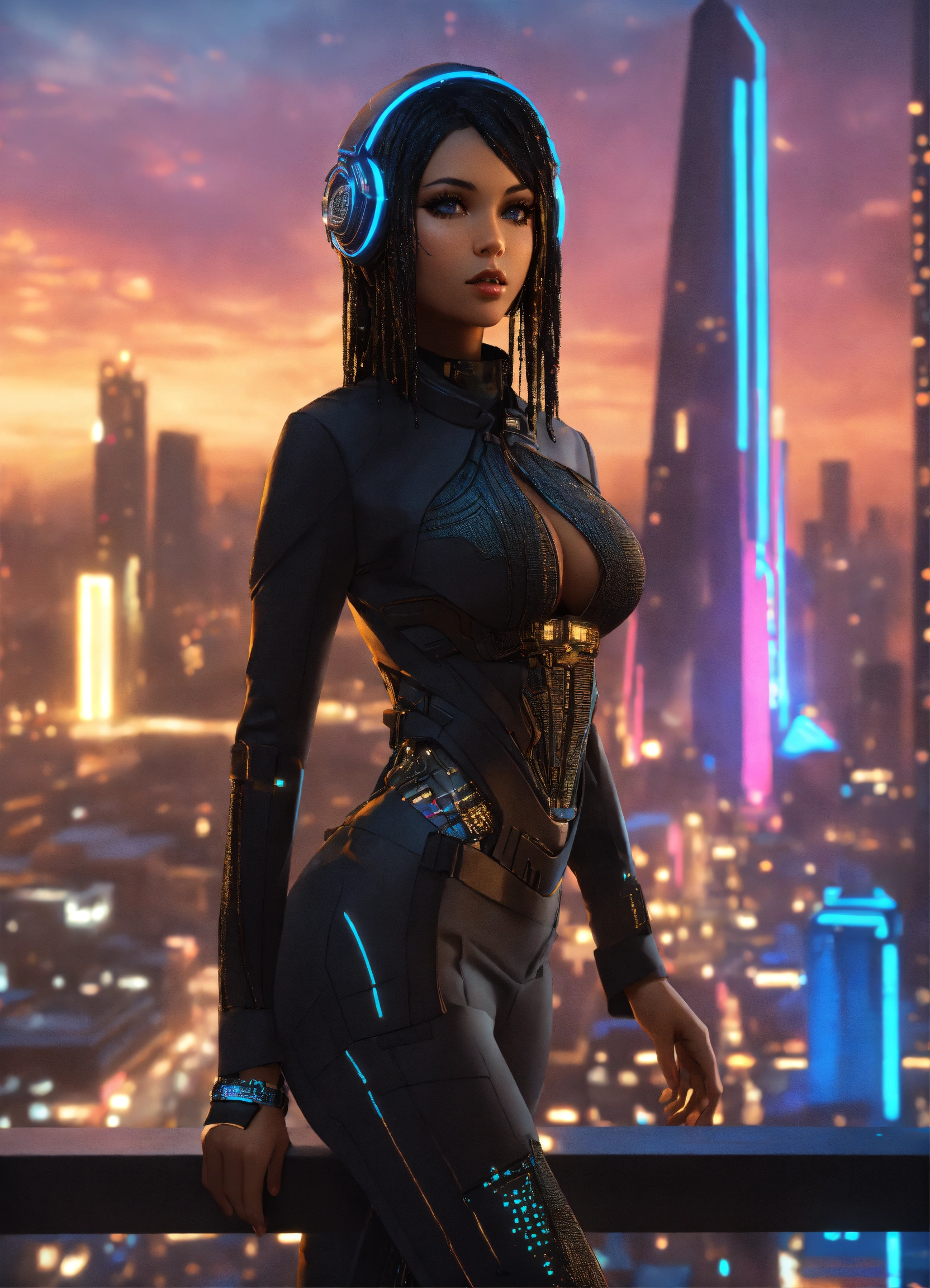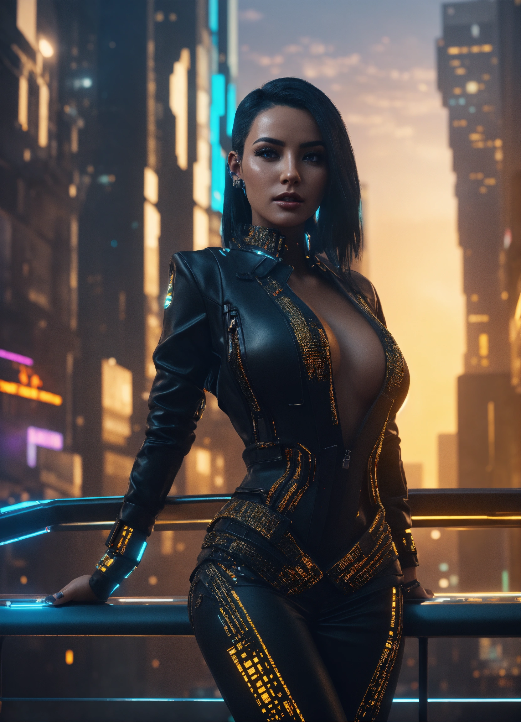 Beautiful egyptian bimbo wearing a black egyptian business suit, in a futuristic cityscape, hyper detailed, digital art, cyberpunk style, cybercinematic lighting, studio quality, smooth render, unreal engine 5 rendered, octane rendered, face view