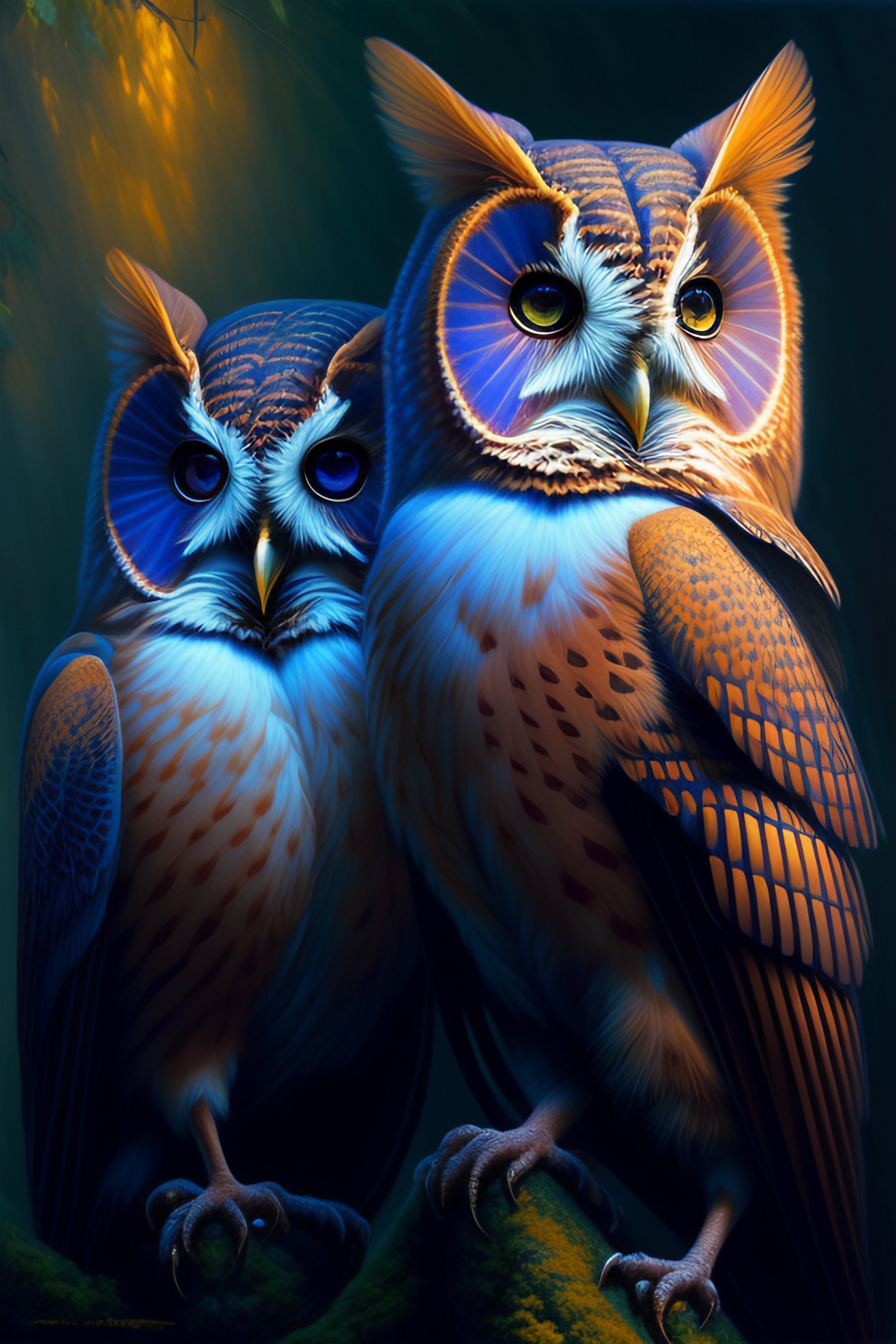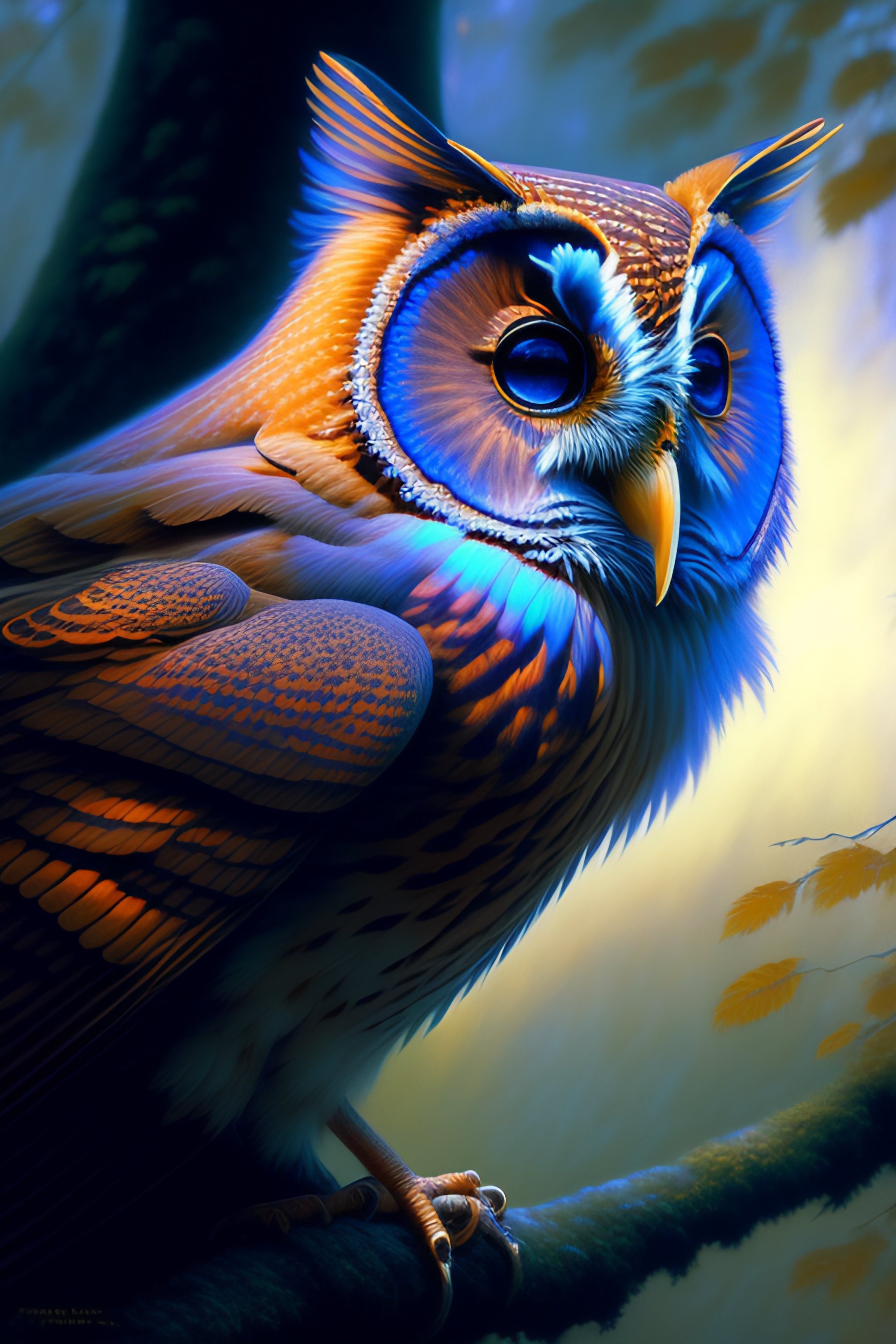Tawny owls blue eyes, ethereal, extremely high detail, photorealistic, cinematic lighting, artstation, octane render, art by zdzisław beksiński, painted by art by tsuyoshi nagano, greg rutkowski, artgerm, alphonse mucha, spike painting