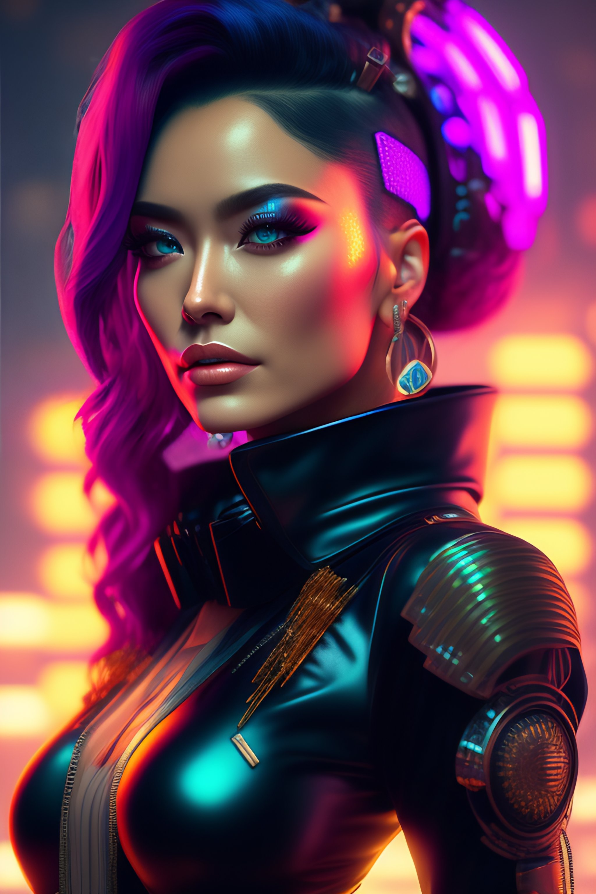 Portrait of agatha vega as a cyberpunk cyborg. sci - fi, missing panels, intricate abstract upper body intricate artwork, by tooth wu, wlop, beeple, dan mumford. concept art, octane render, deviantart, greg rutkowski, cinematic, key art, hyperrealism, iridescent accents