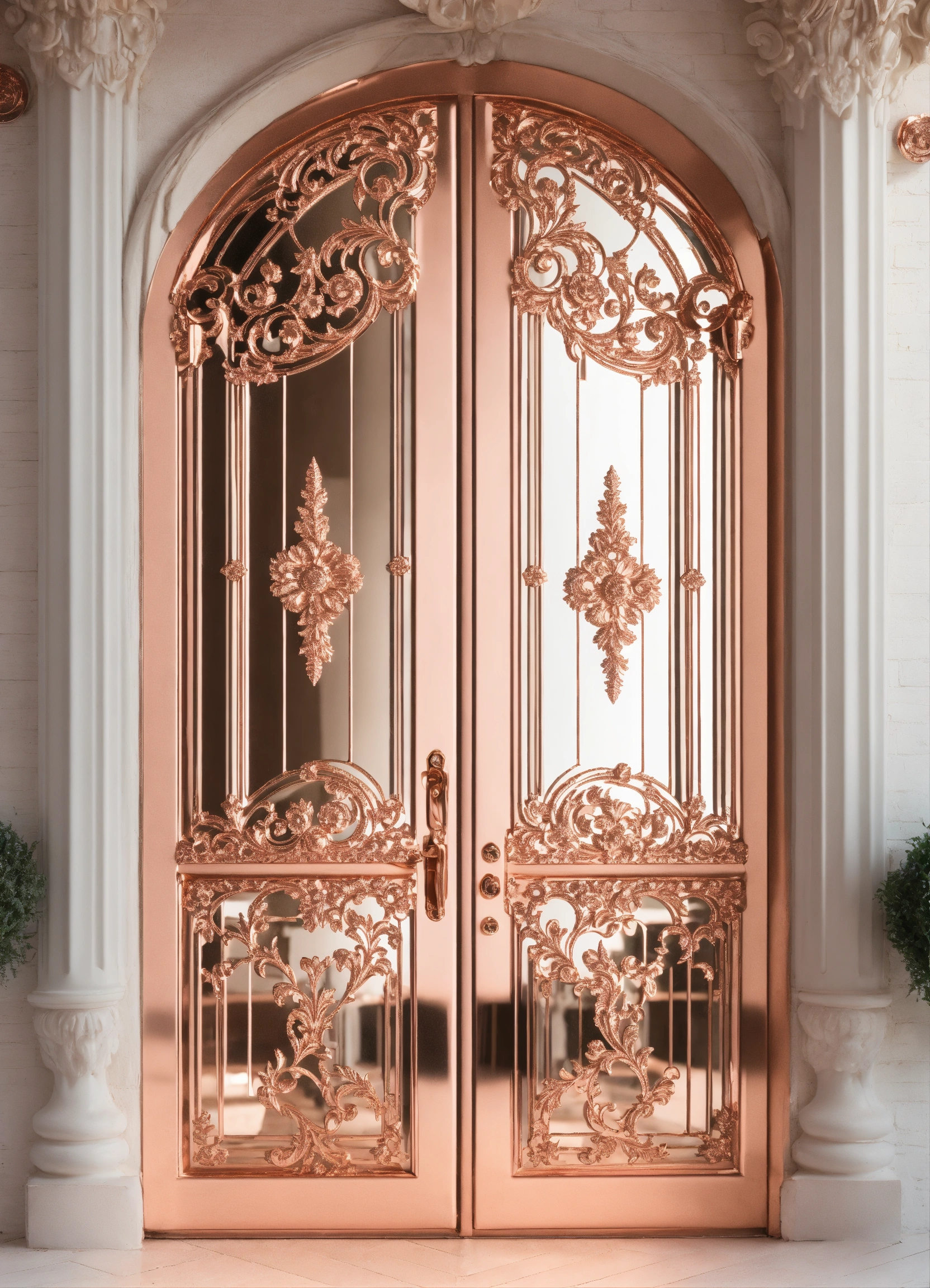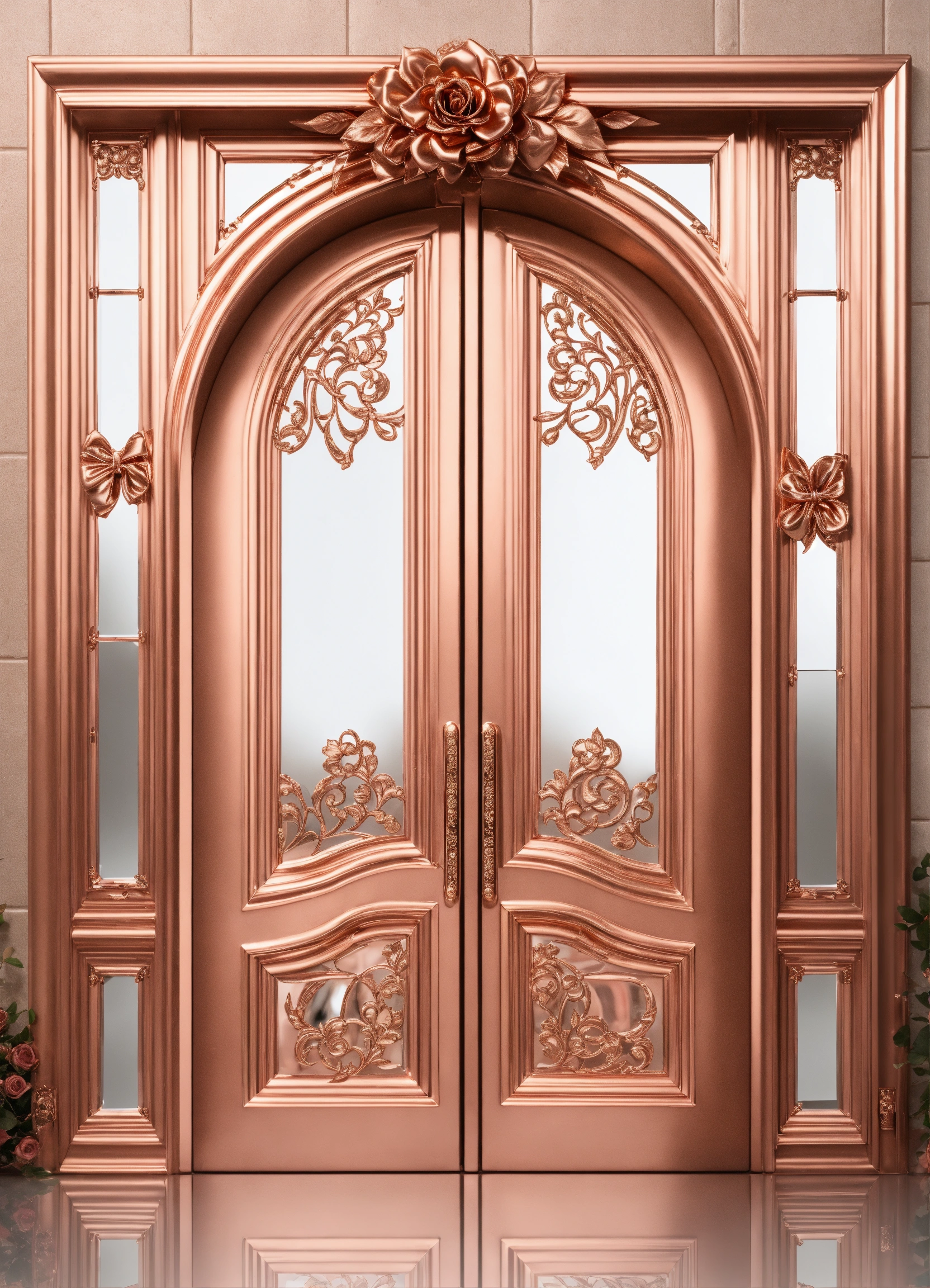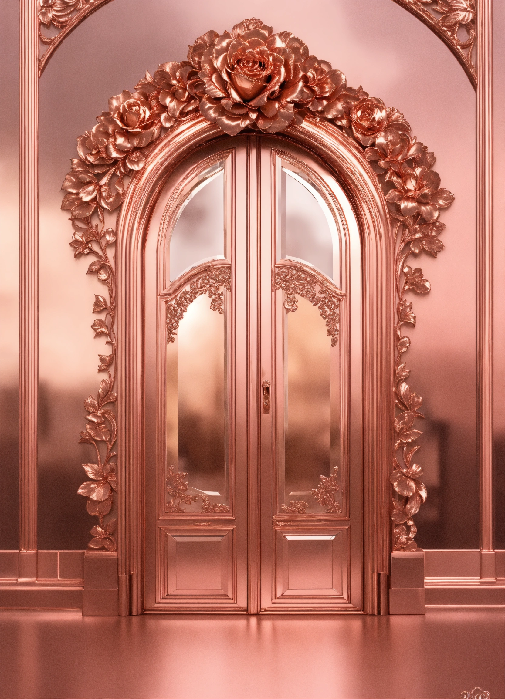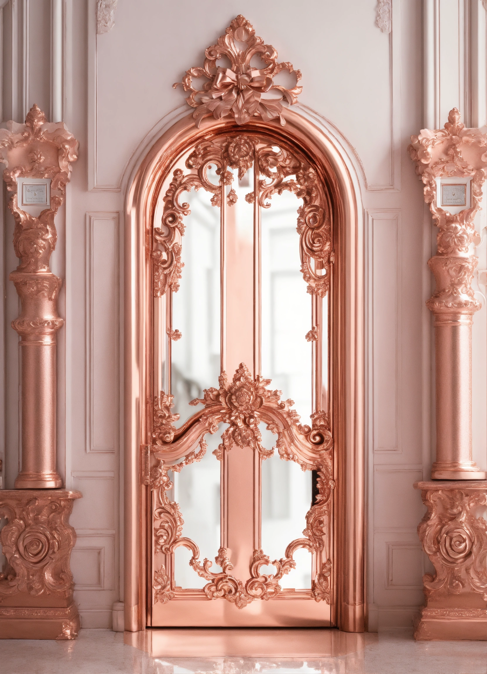 Text bow belles 5 logo rose gold mirrored white castle door background beautiful ornate