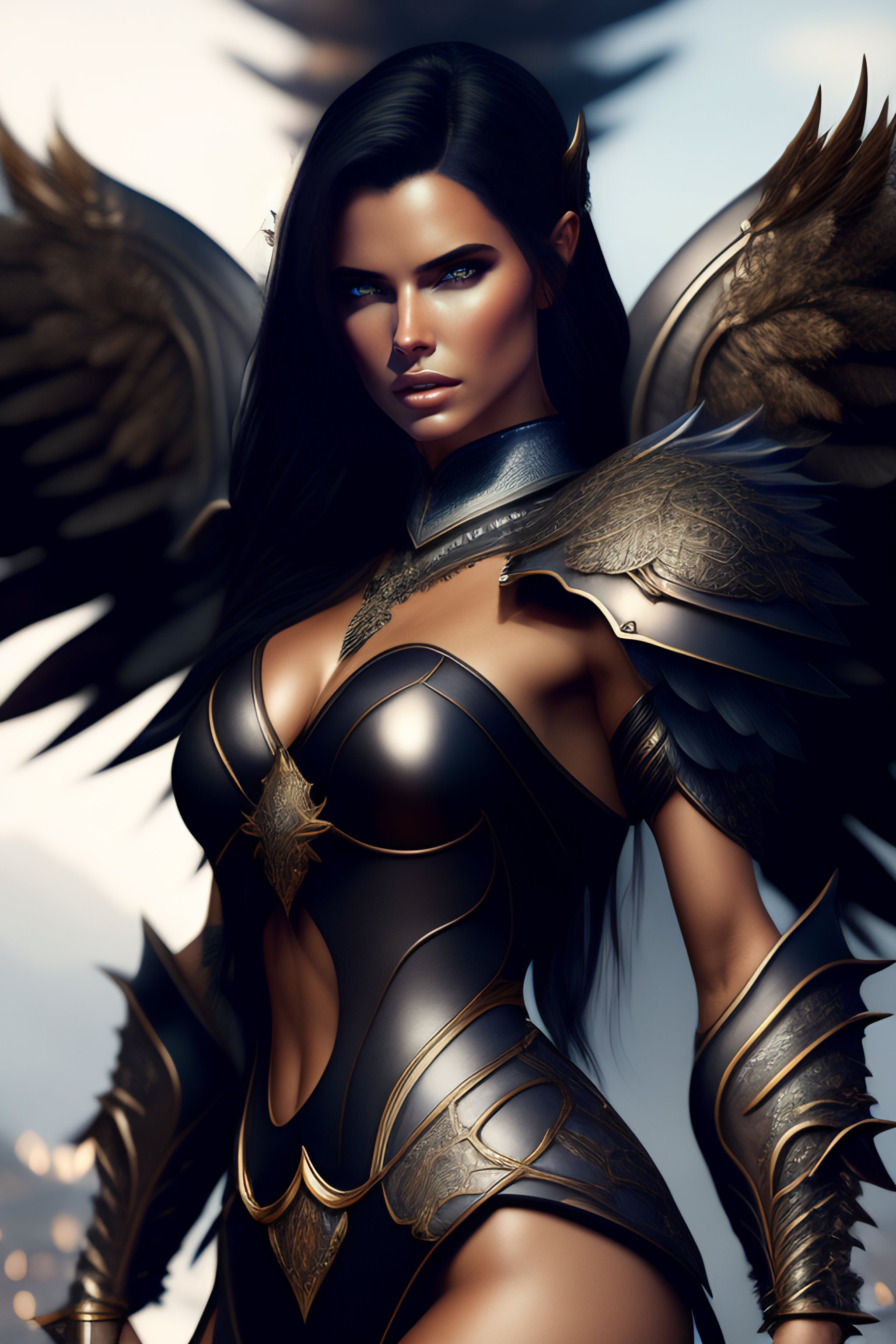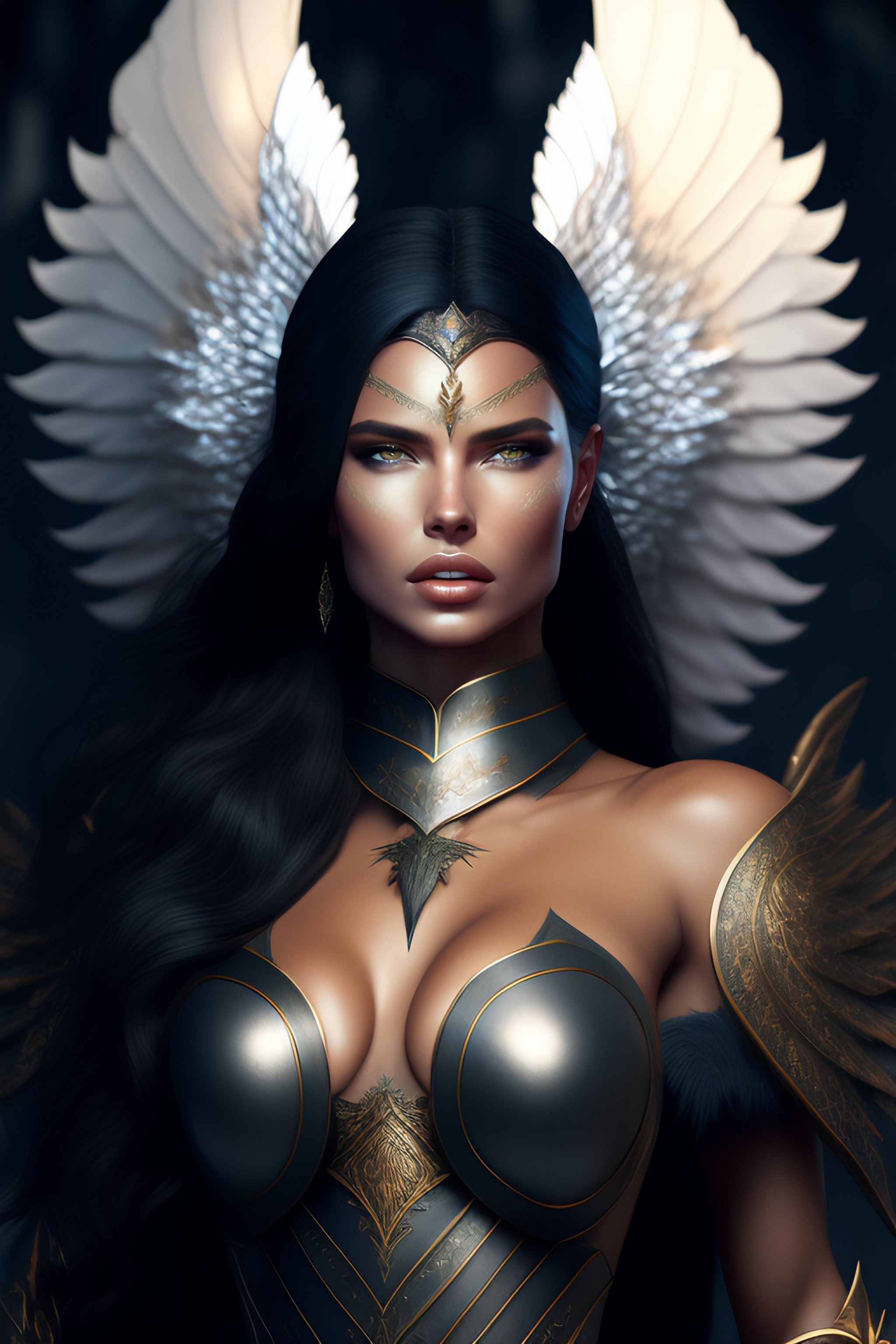 8k render! beautiful adriana lima in skyrim mod angel armor, wings wide opened, whole body heavily covered in elfish tattoos, intricate, elegant, highly detailed, digital painting, artstation, wallpaper!, concept art, smooth, sharp focus, high fantasy illustration, art by artgerm and vasylina, and peter andrew jones
