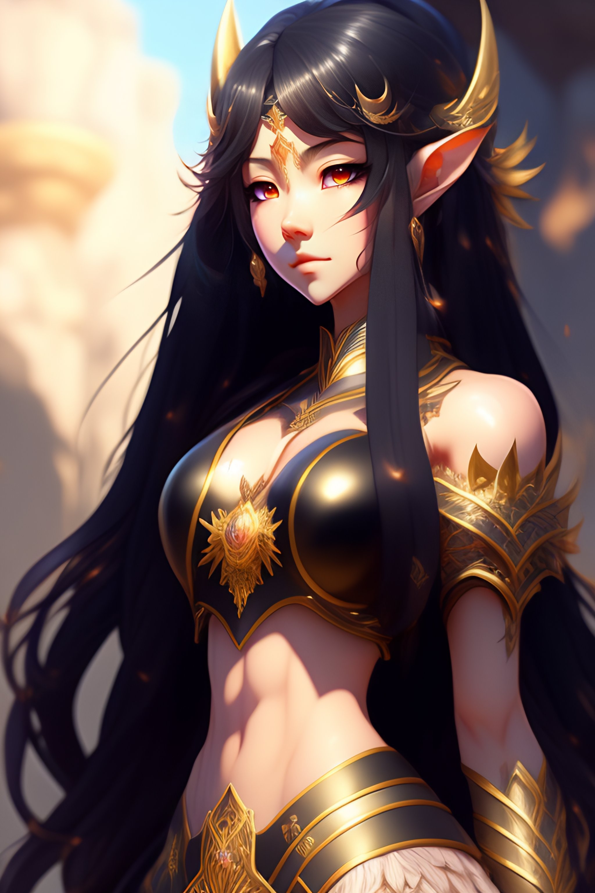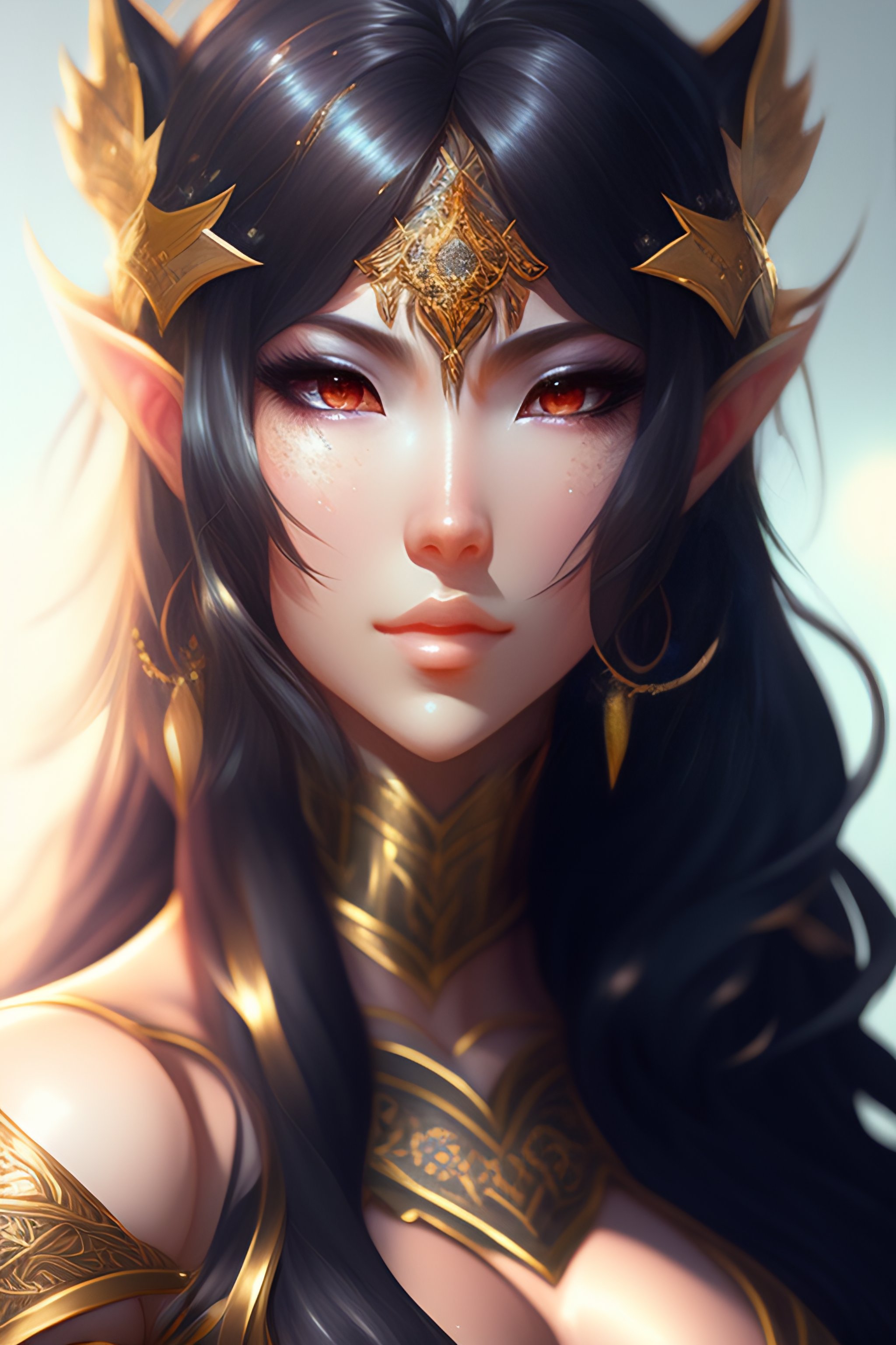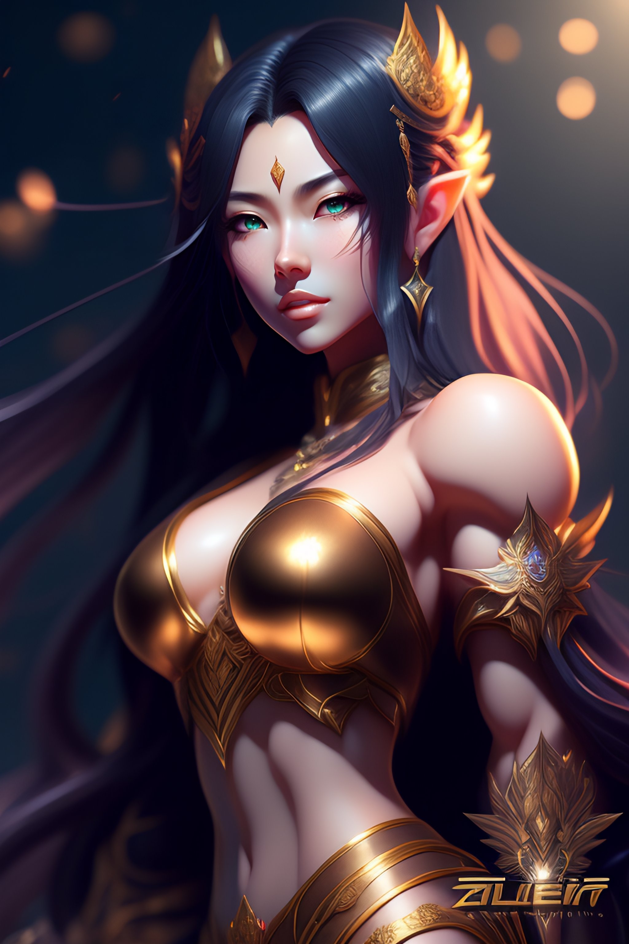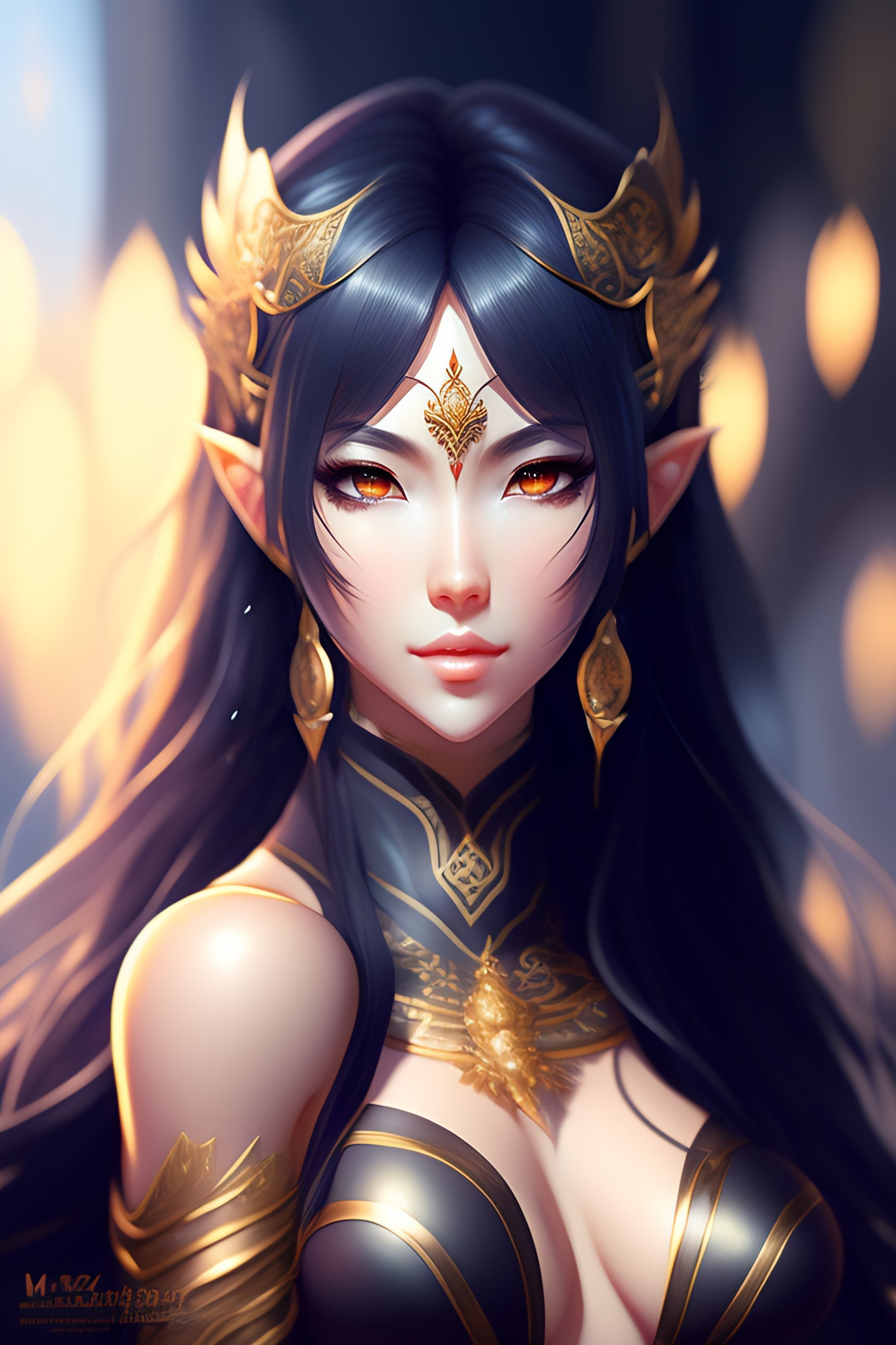 Full body potrait of muscular elf queen anime version, full long black hair highly intricate detailed, light and shadow effects, intricate, highly detailed, digital painting, art station, concept art, smooth, sharp focus, illustration, advanced digital anime art, atmospheric lighting, detailed face, 8 k, hq, artstation, by makoto shinkai, stanley artgerm lau, wlop, rossdraws ”
