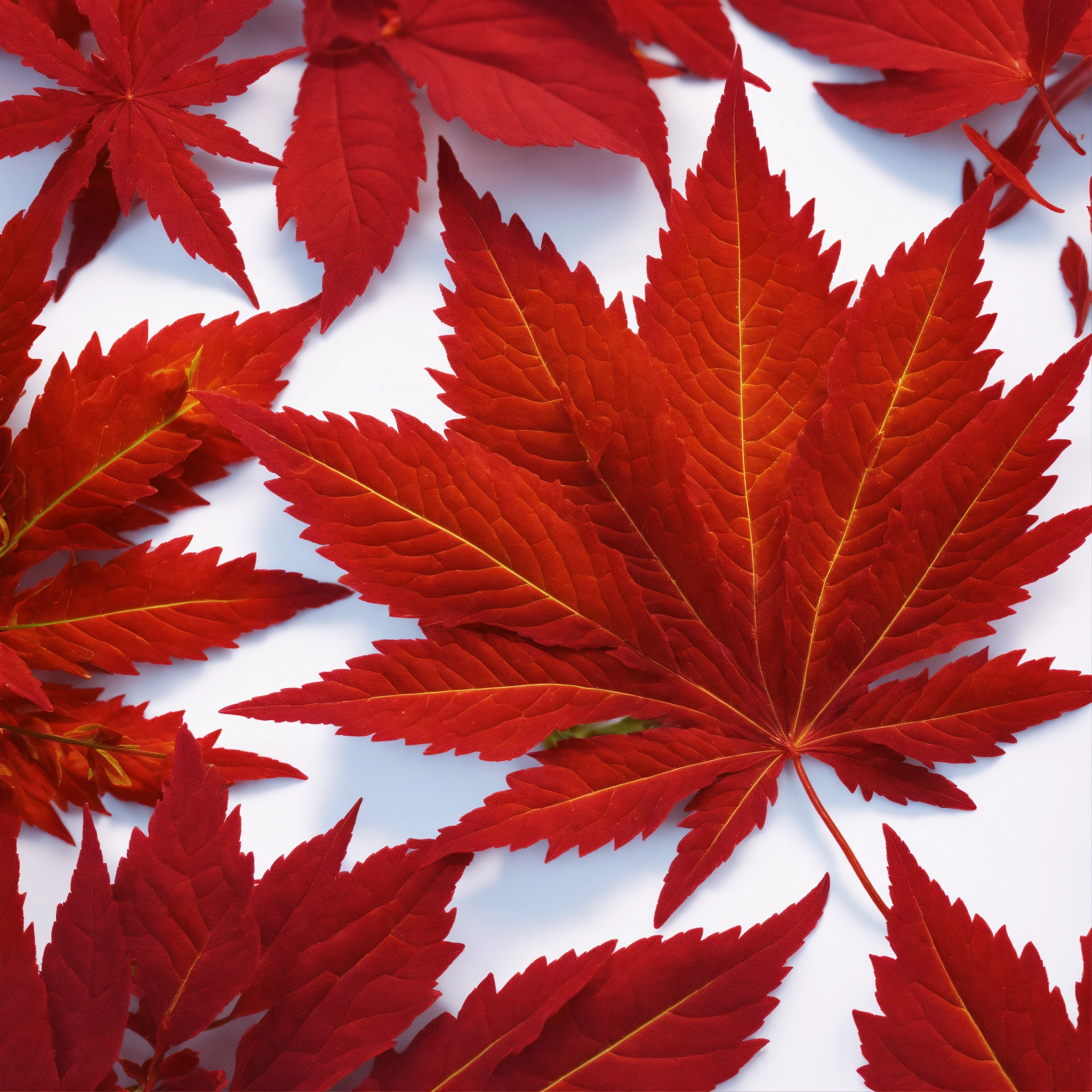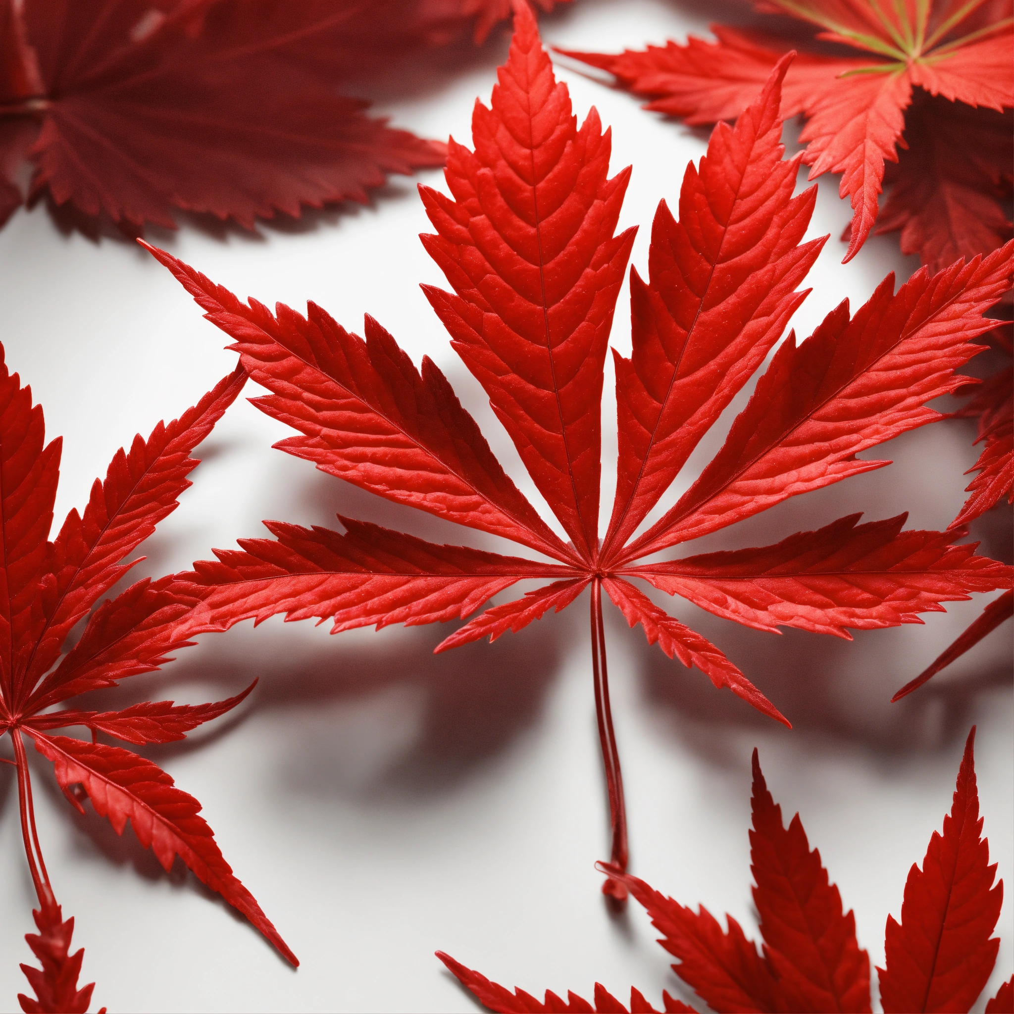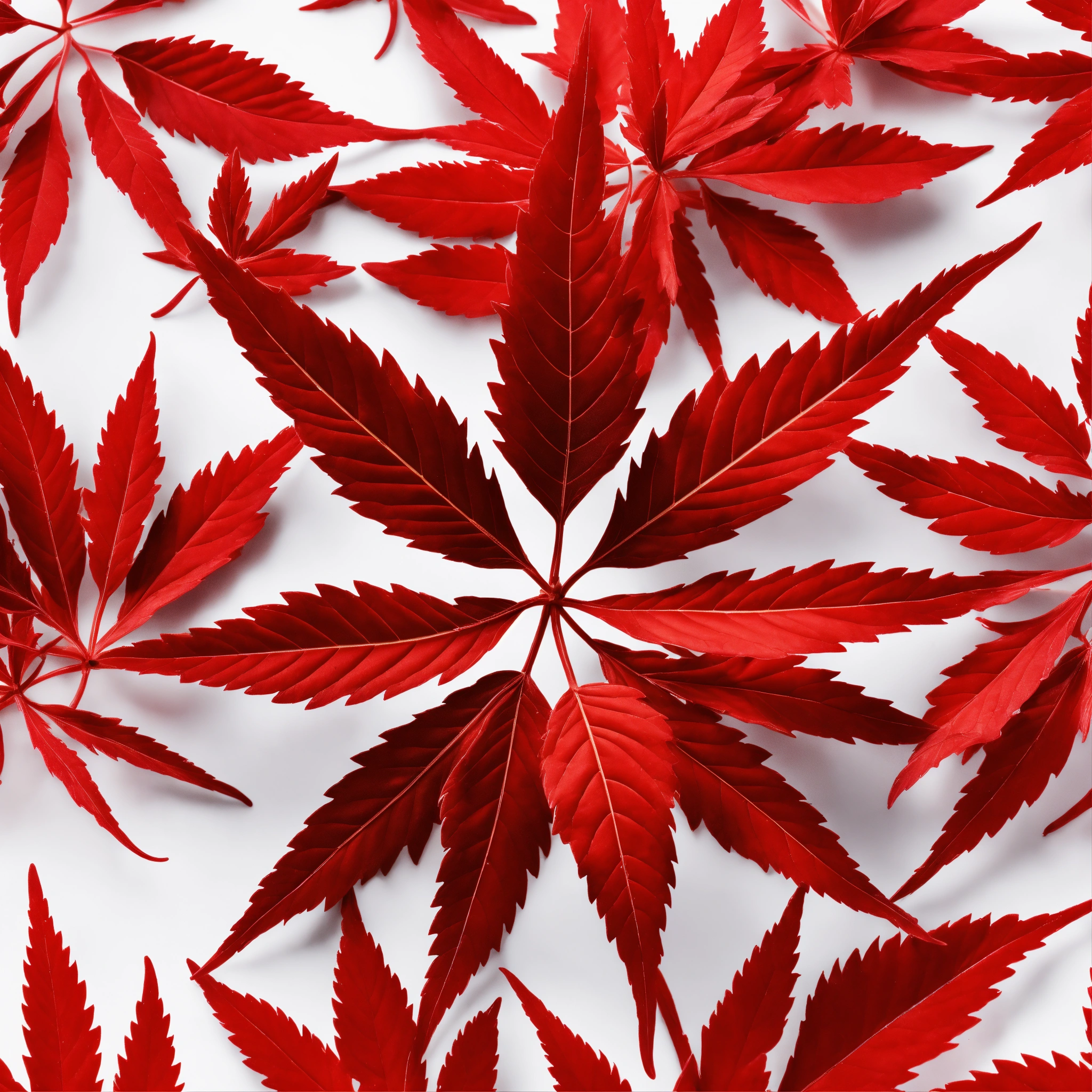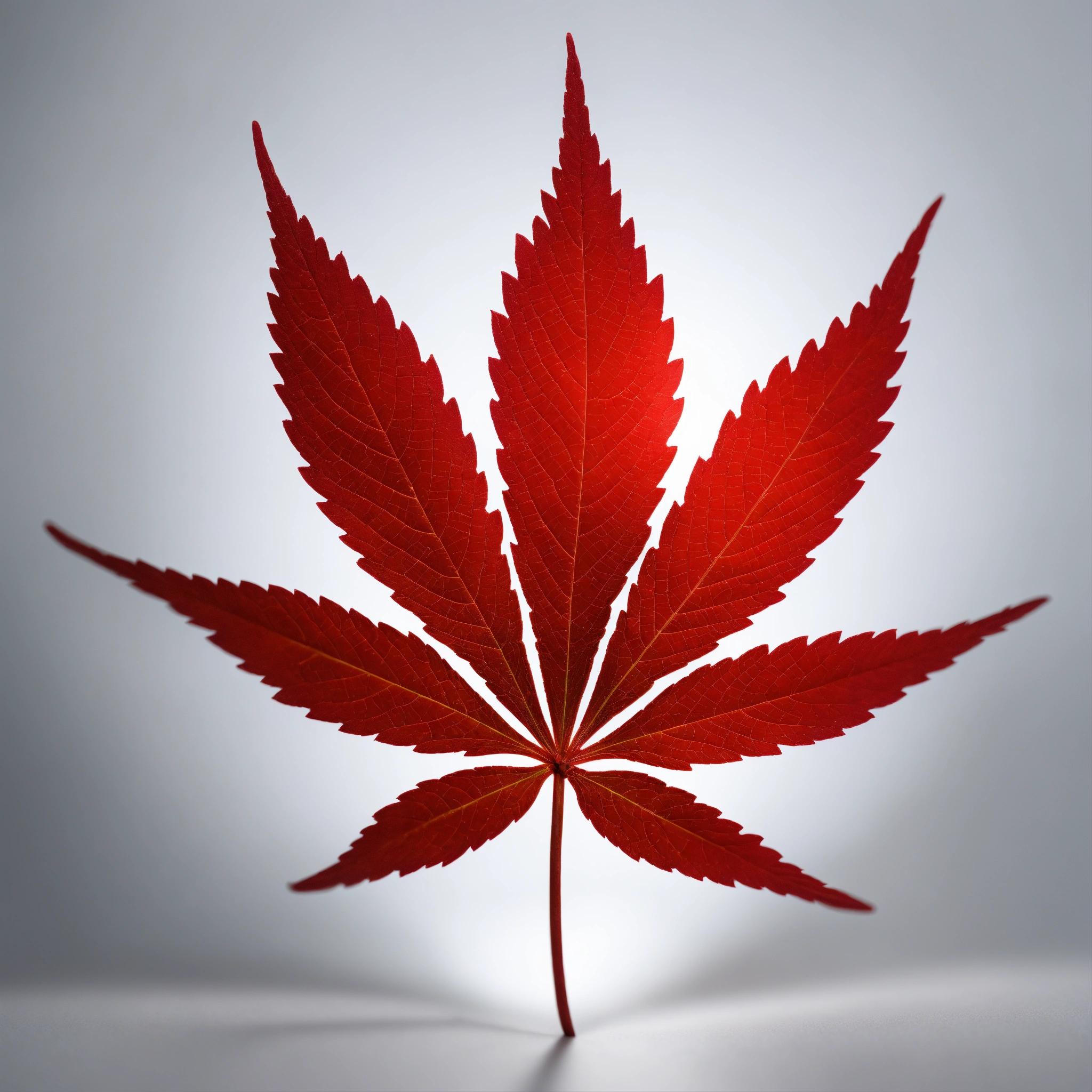 Designed by 8k resolution, hyper realistic, detailed render, beautiful red marijuana leaf in center on white background, product photo