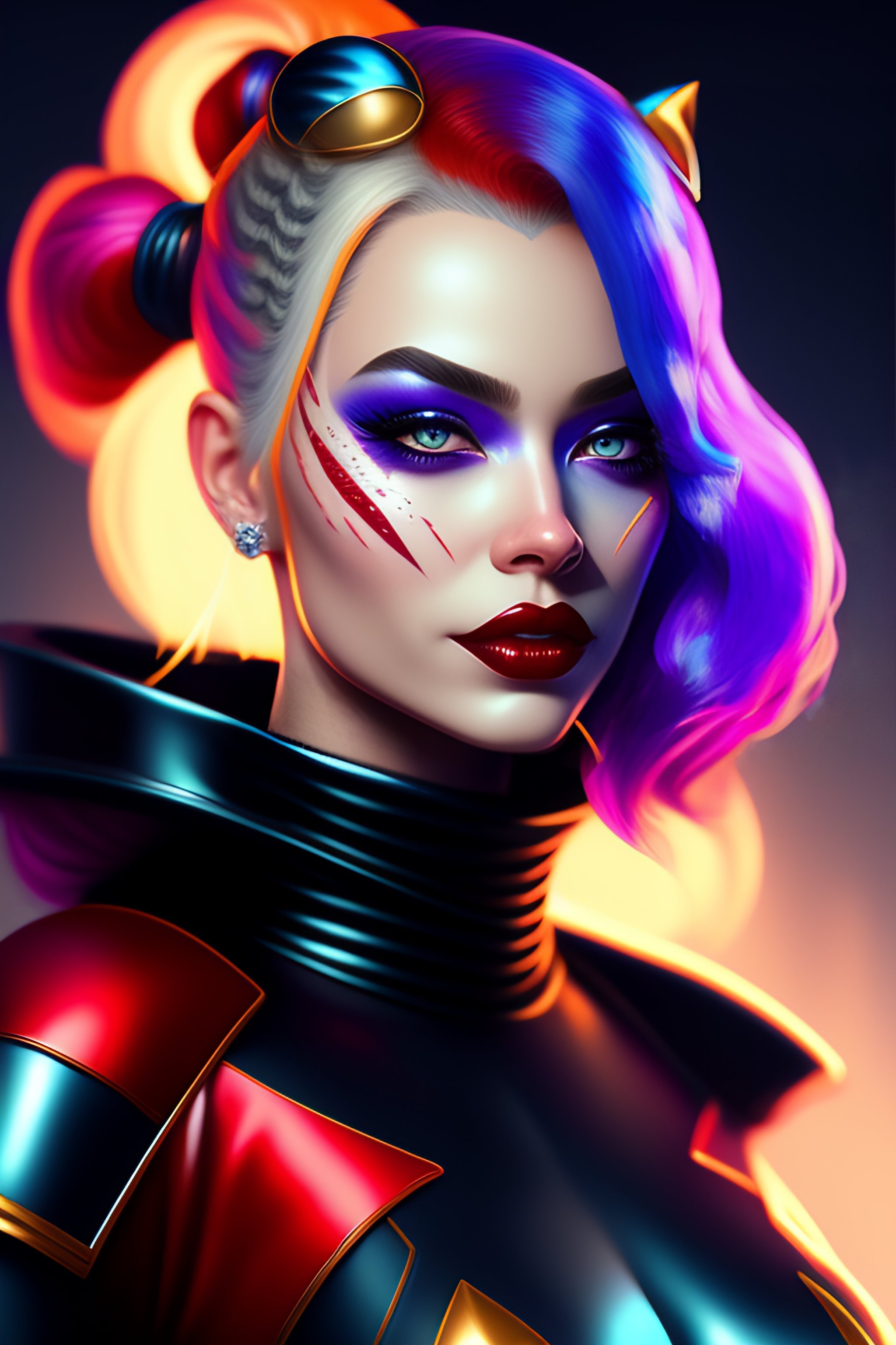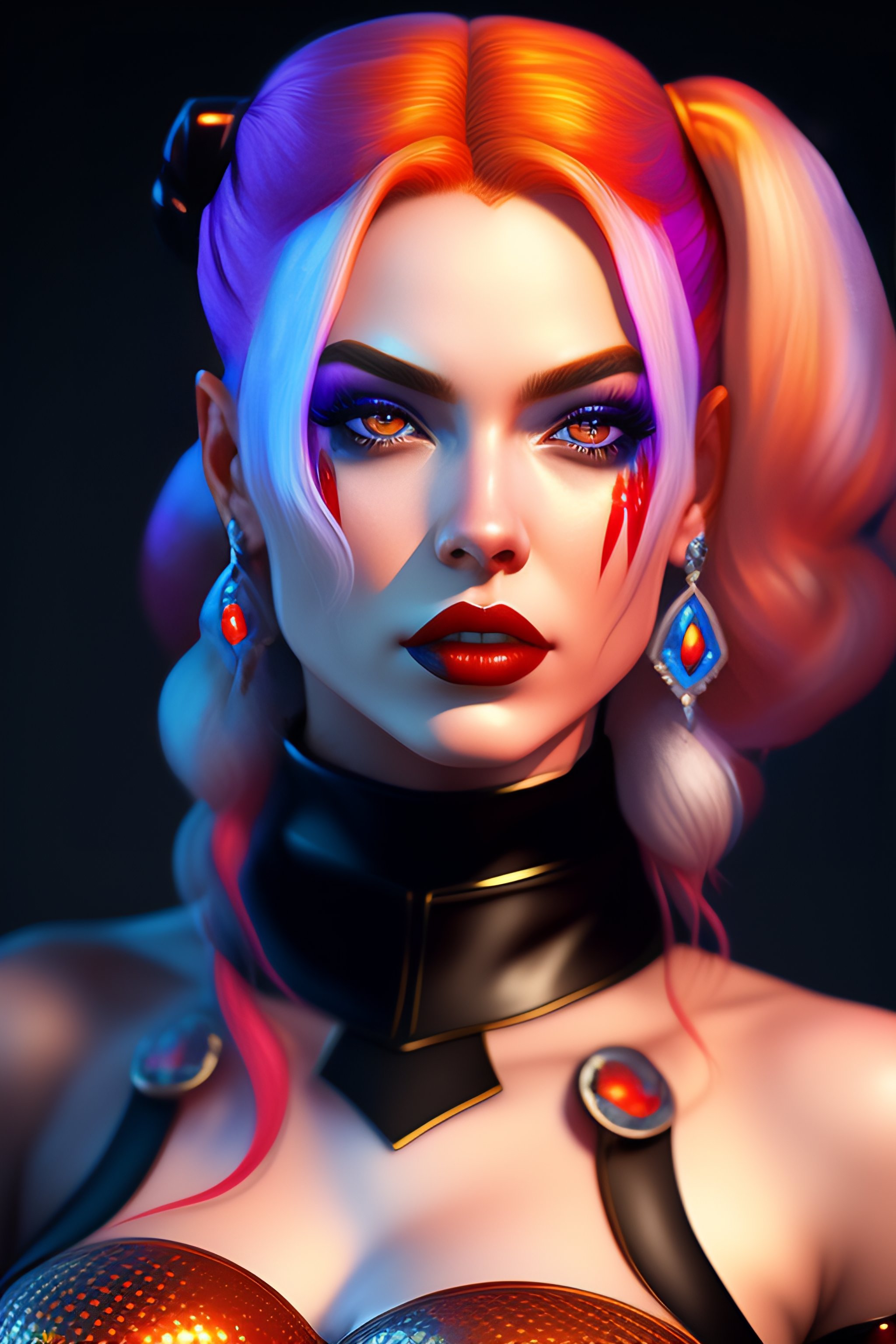 Harley quinn concept art portrait by casey weldon, olga kvasha, miho hirano, hyperdetailed intricately detailed gothic art trending on artstation triadic colors unreal engine 5 detailed matte painting, deep color, fantastical, intricate detail, splash screen, complementary colors, fantasy concept art, 8k resolution, gothic deviantart masterpiece