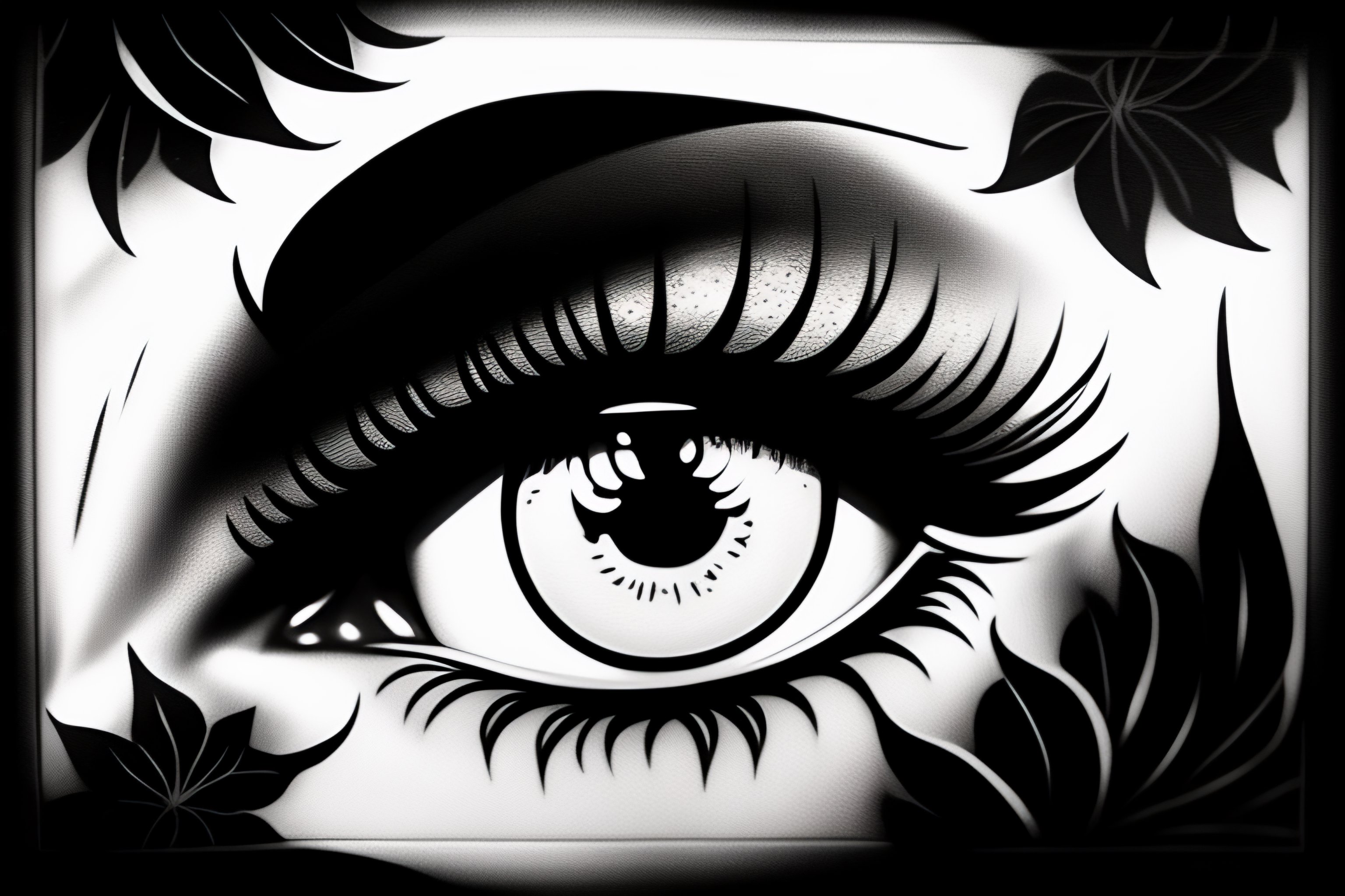 A tattoo stencil of anime eyes in blackwork style!, crying, in high definition, art station, very very detailed, many sharp edges, digital art