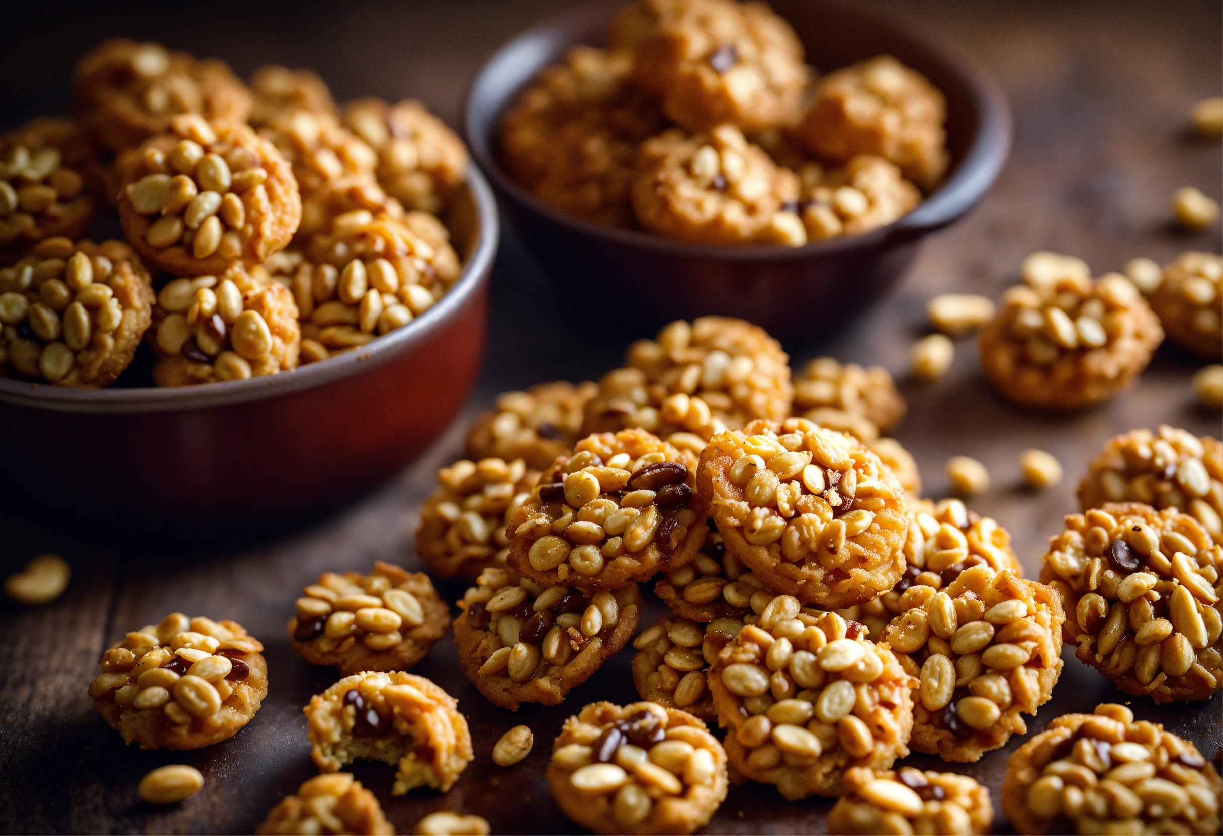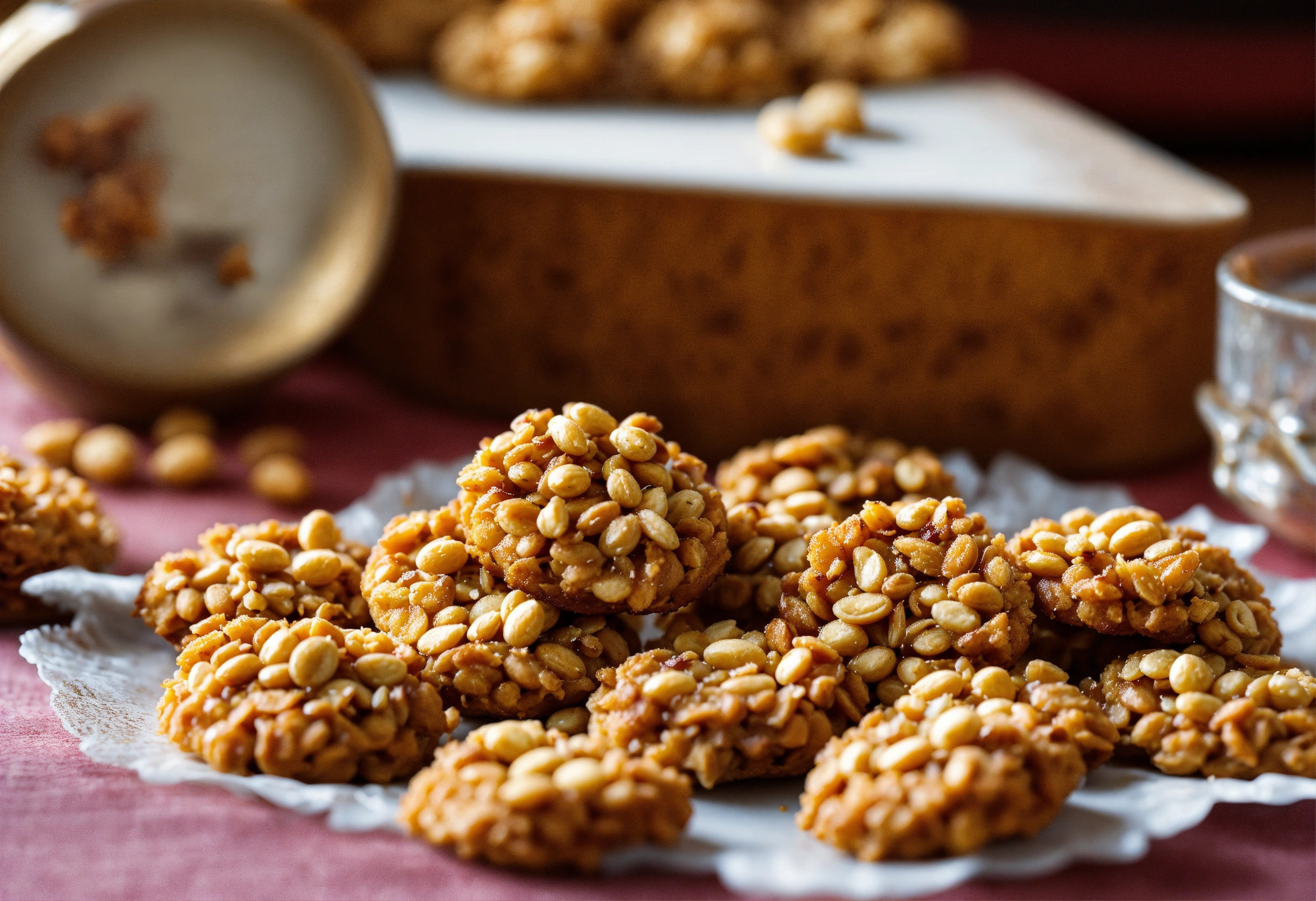 Capture the essence of fried peanuts in a single image for our recipe website. show off its golden, lacy texture and the perfect balance. make our readers crave a bite just by looking at your photo. we want to see the florentine cookie in all its mouthwatering glory, ready to inspire bakers and delight sweet tooths alike. get creative with your composition, lighting, and styling