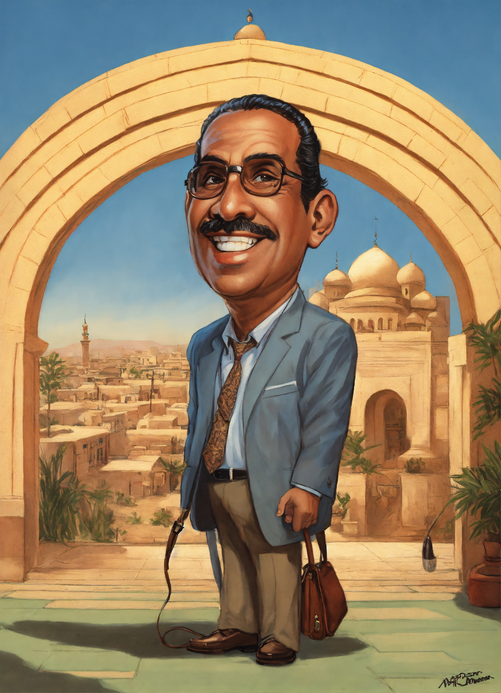 Create a cartoony caricature portrait of "mohamed omar mena" by mort drucker mad magazine
