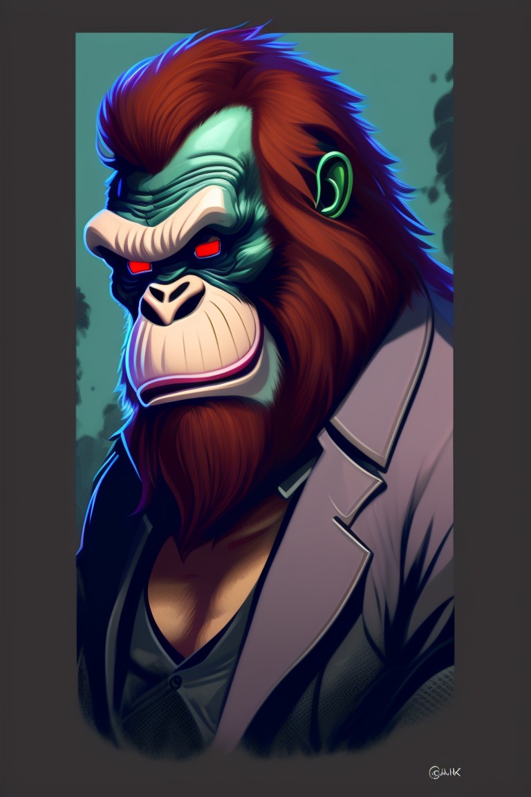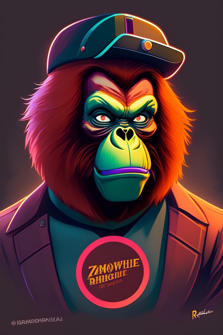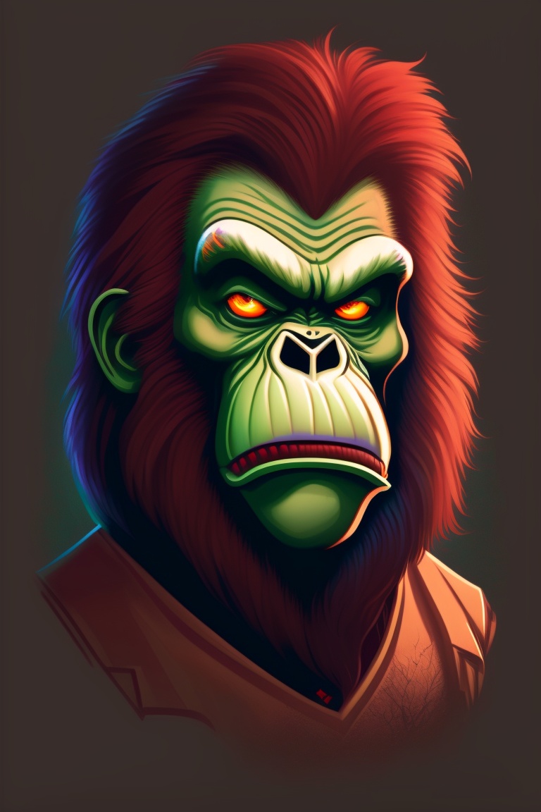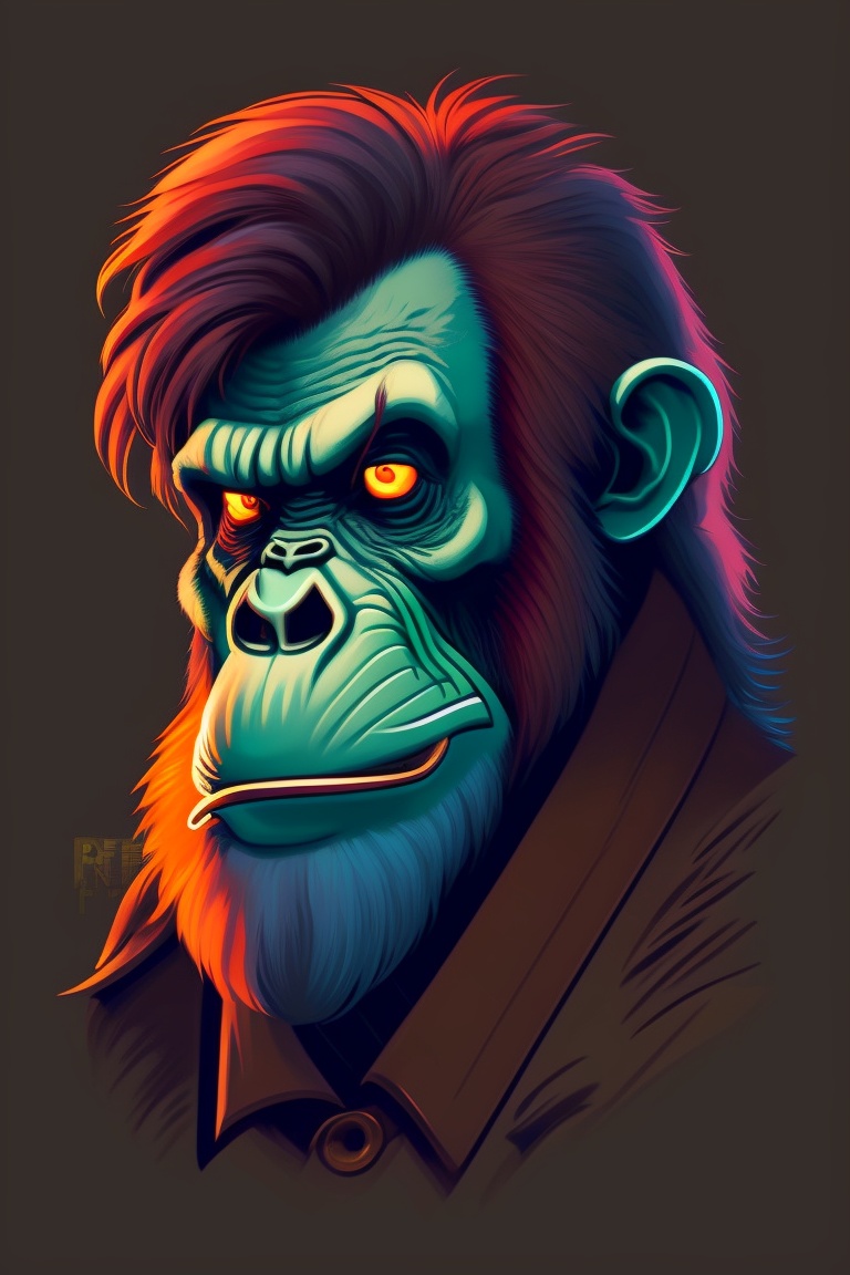 A t-shirt design of an orangutan wearing a monocle and a zombies face, a closeup portrait of a zombie, decaying skin and clothing, dark and eerie, 8k, horror style, art by greg rutkowski, charlie bowater, and magali villeneuve, mutation, anger, low details, digital art, solid colors, sharp focus, trending art, pastel colors, print art, vector illustration, white background