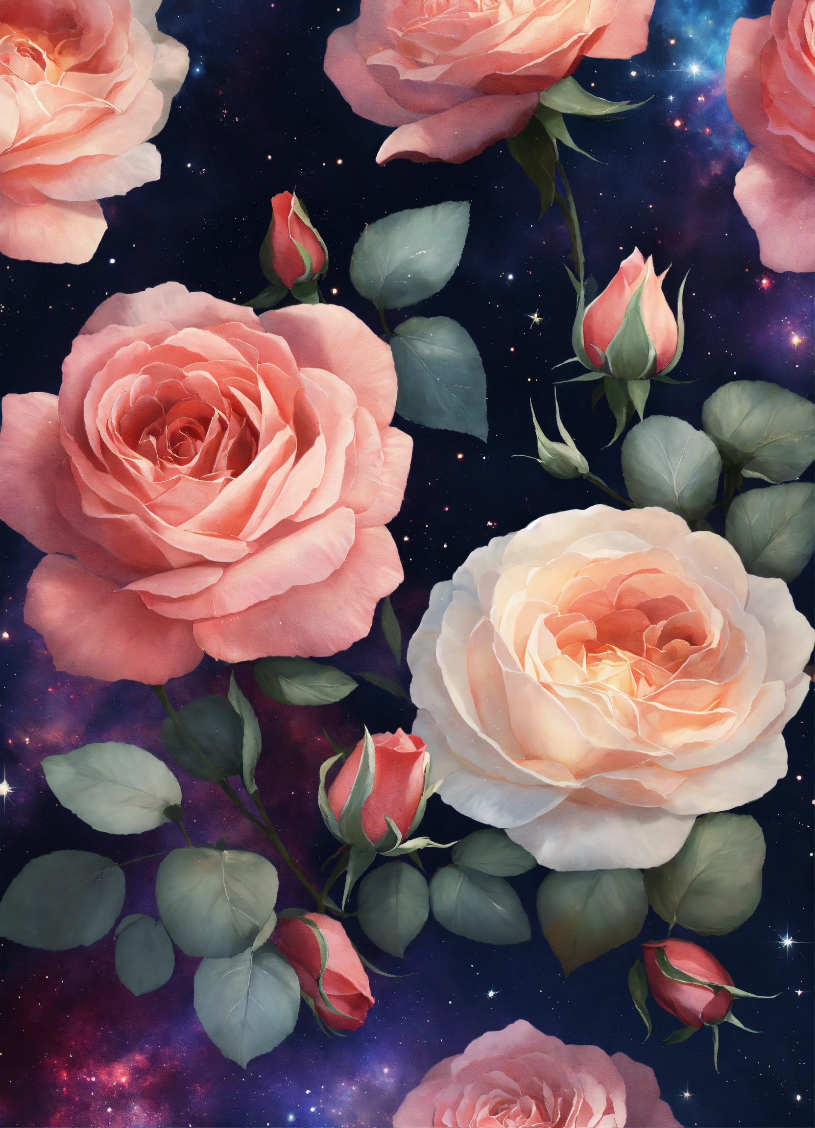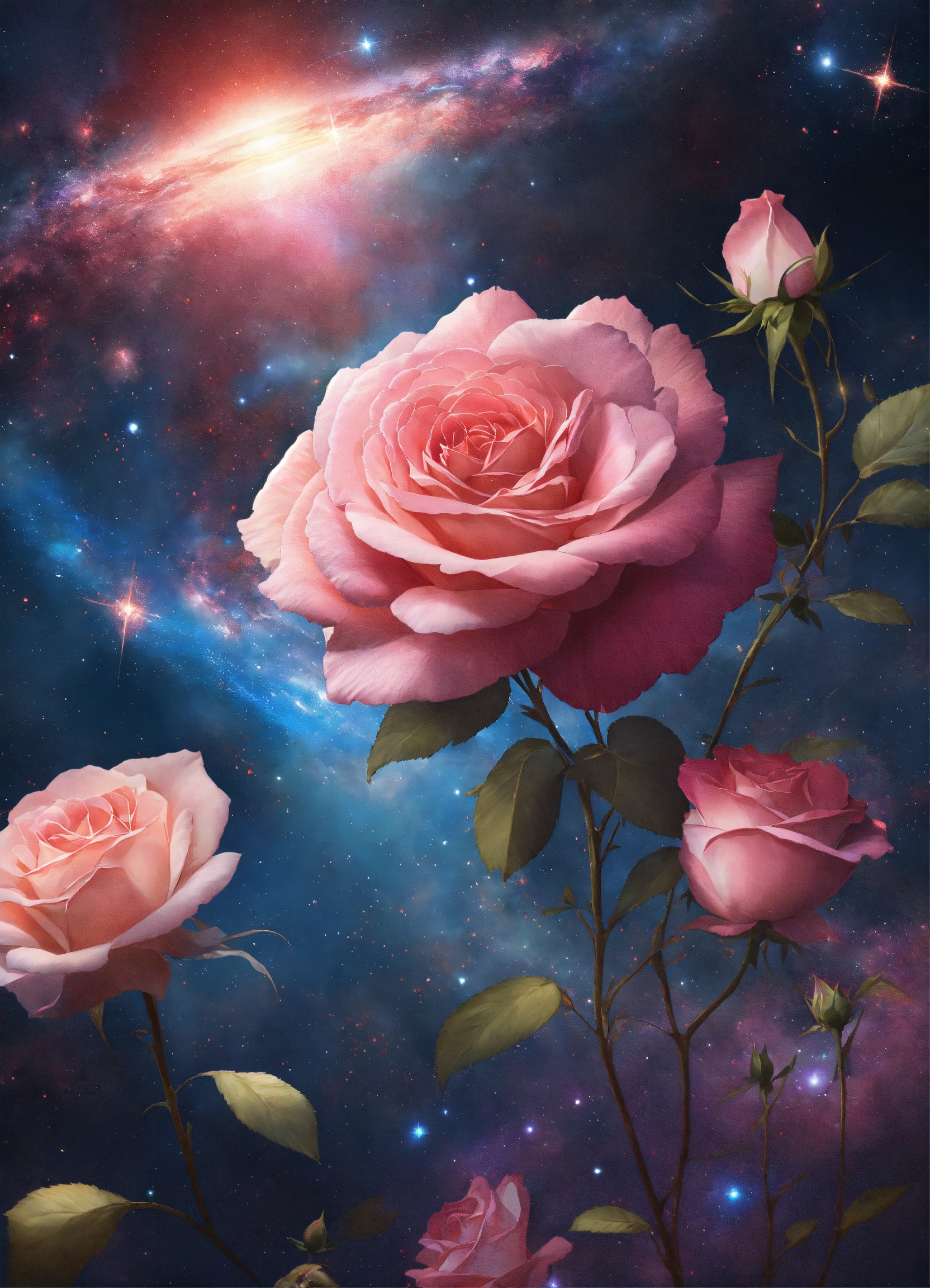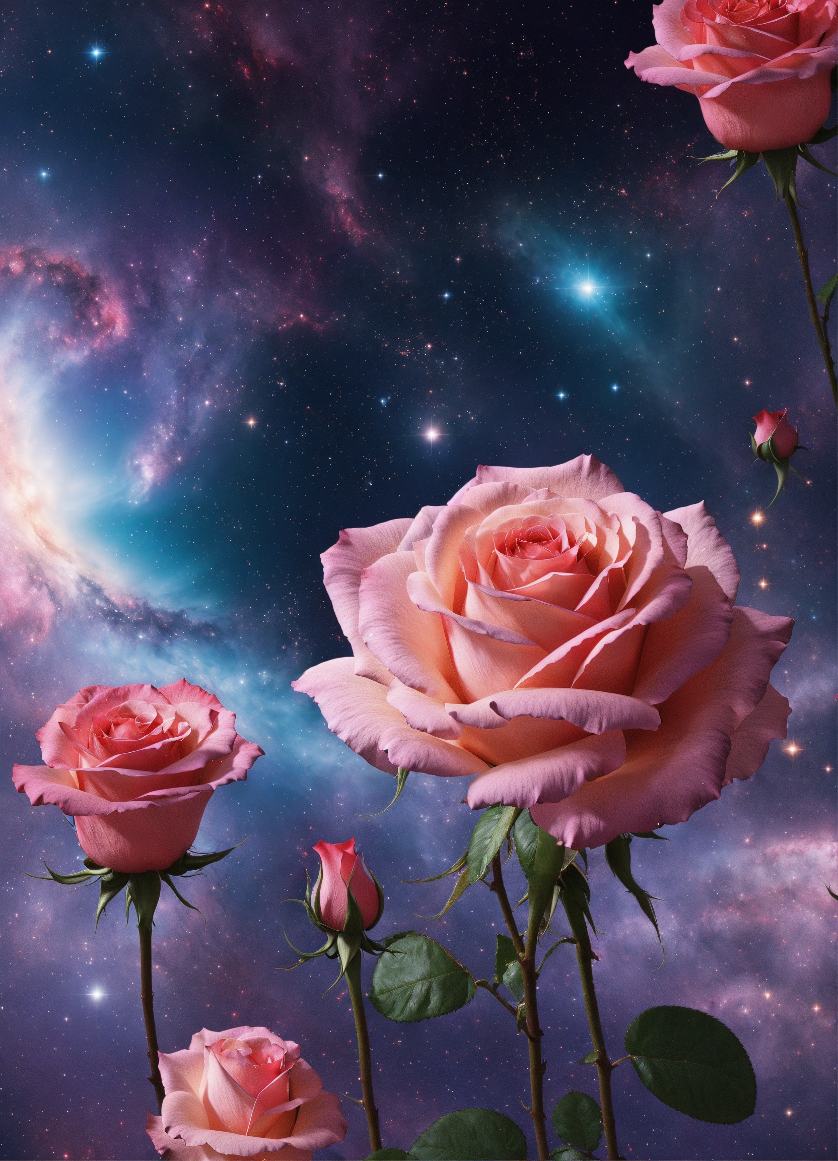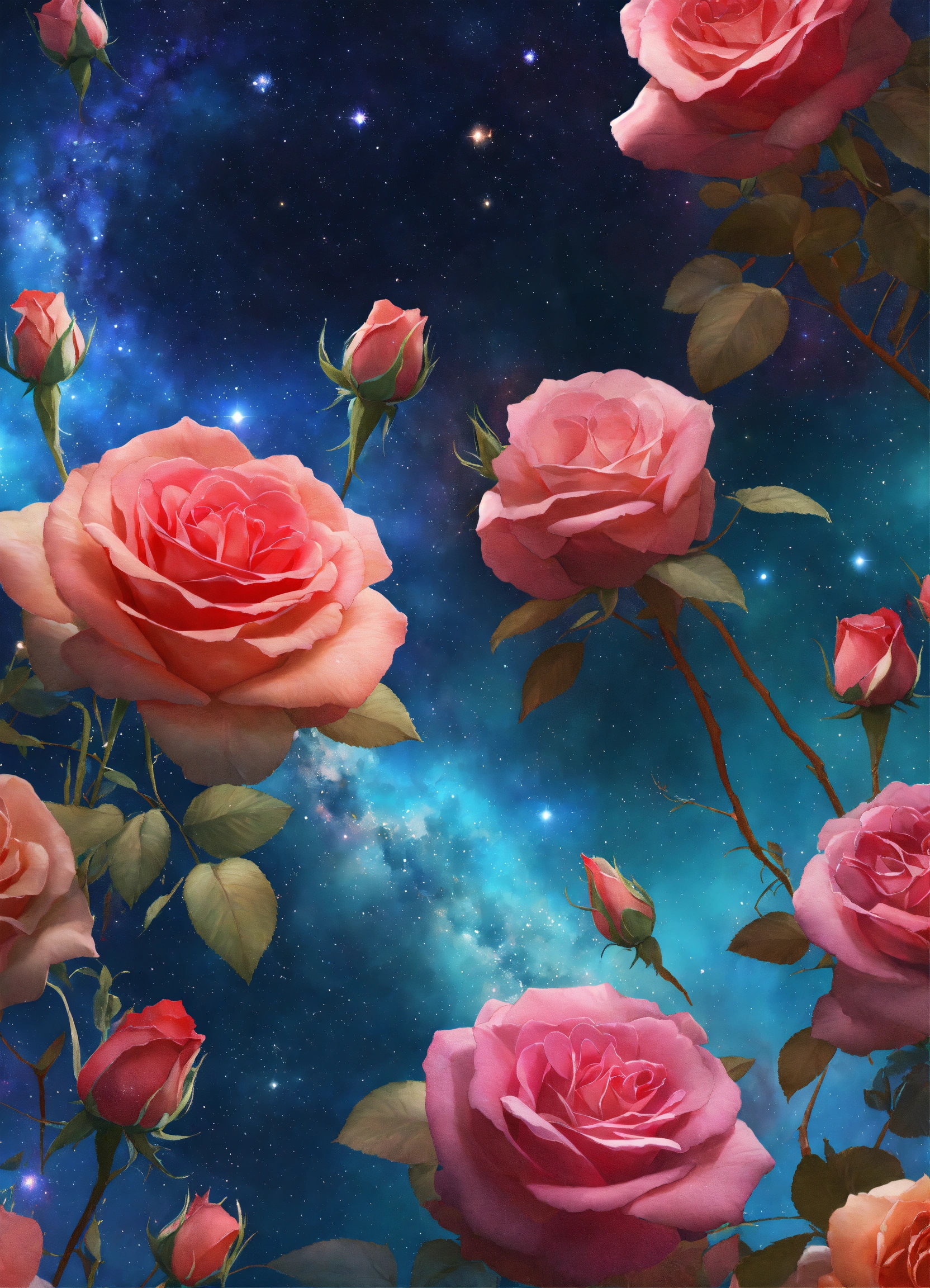 Embark on a cosmic journey with this wallpaper. roses appear to bloom among celestial nebulae, creating a sense of wonder and awe.