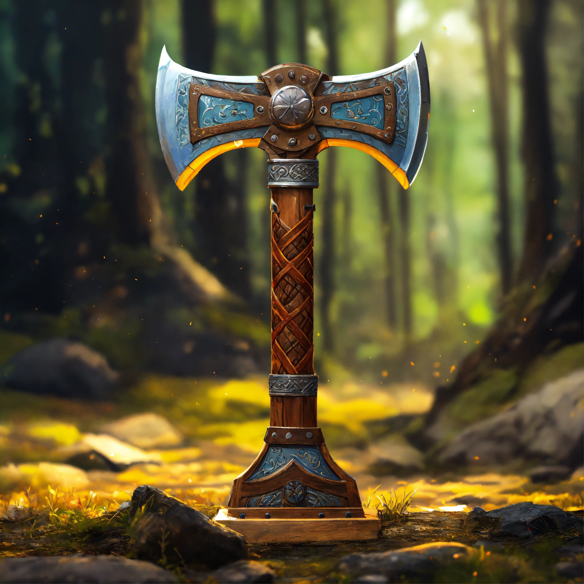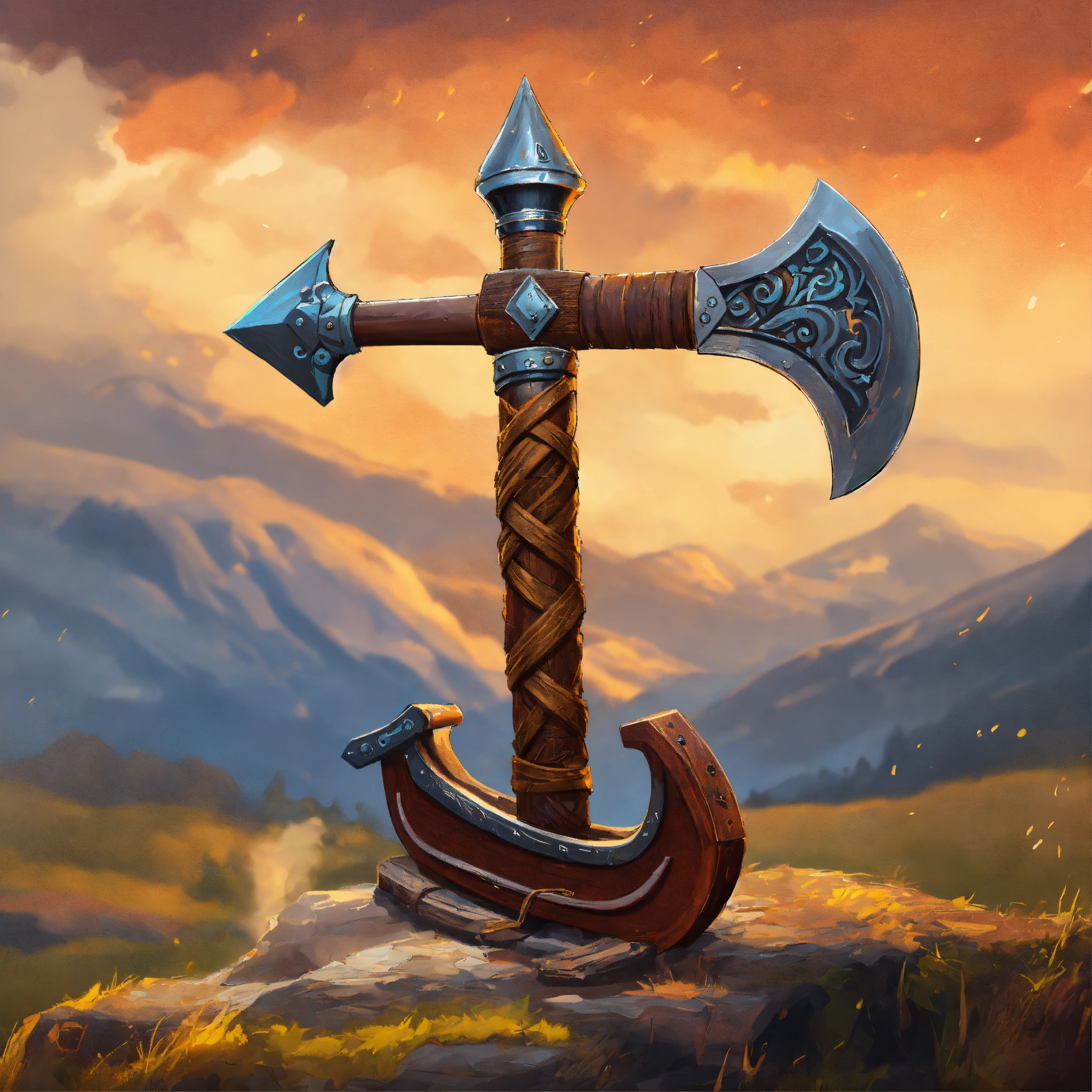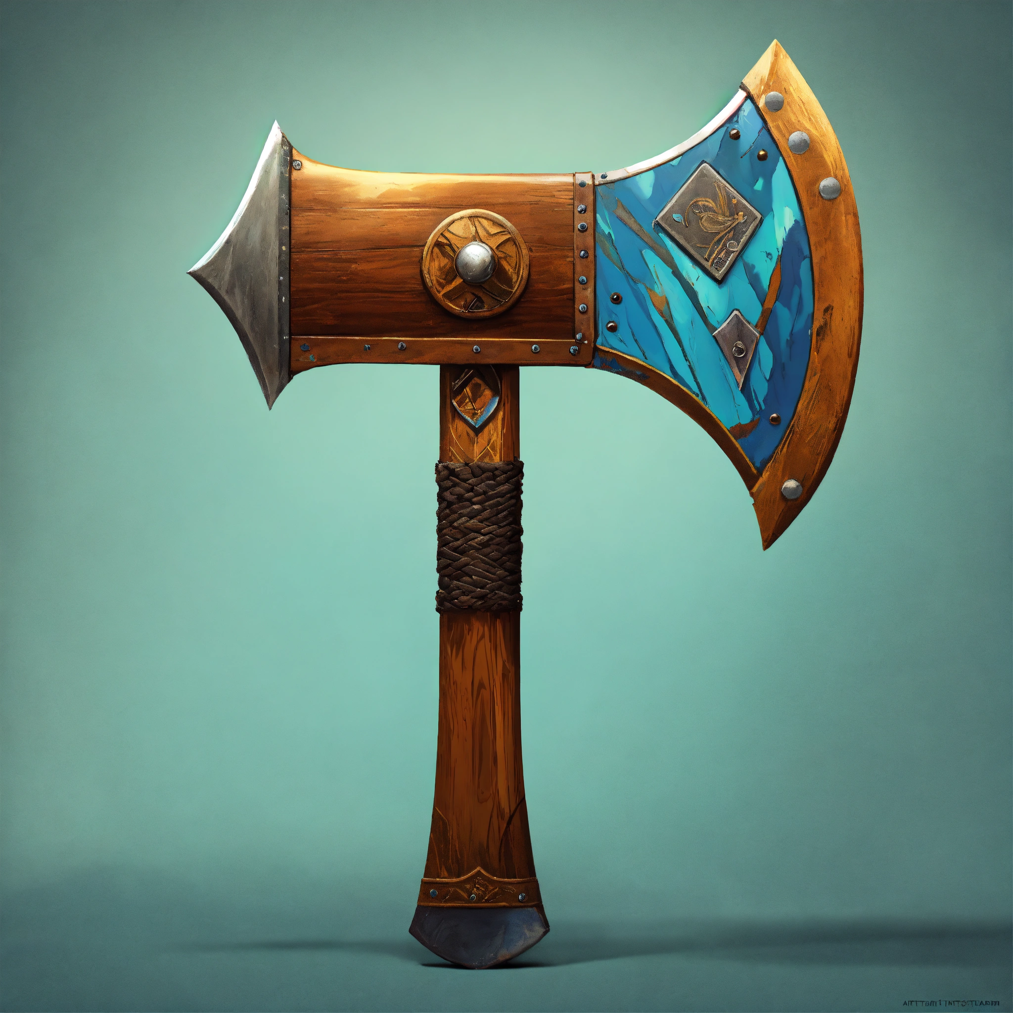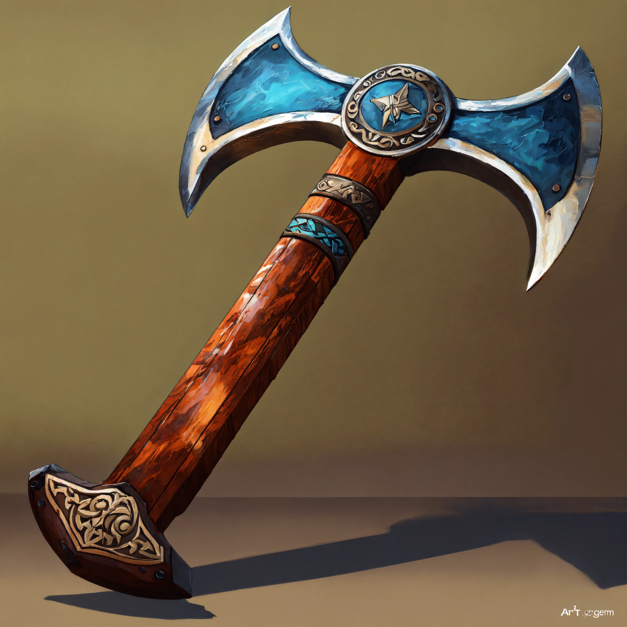 Viking ax, oil paint, single prop, isolate object, 2d illustration style, sharp focus, bright color, digital paint design, trending on artstation, high details, simple lines, art by artgem