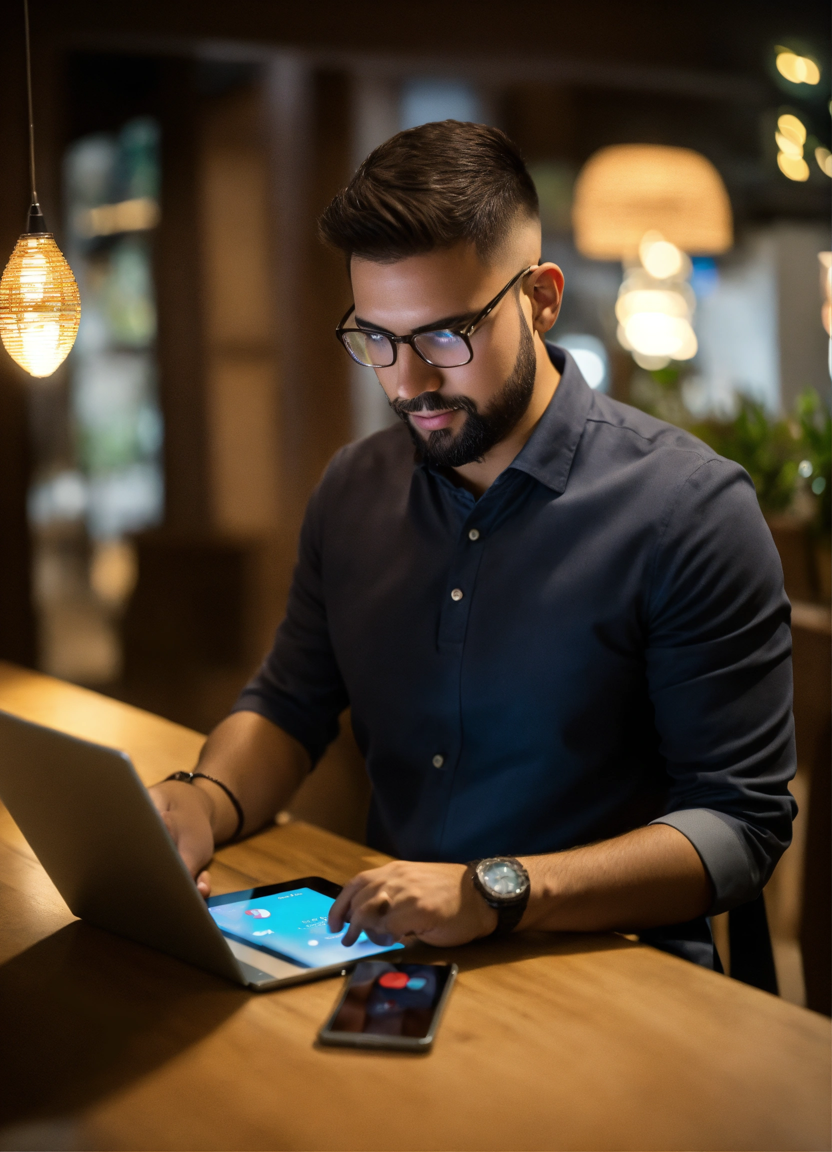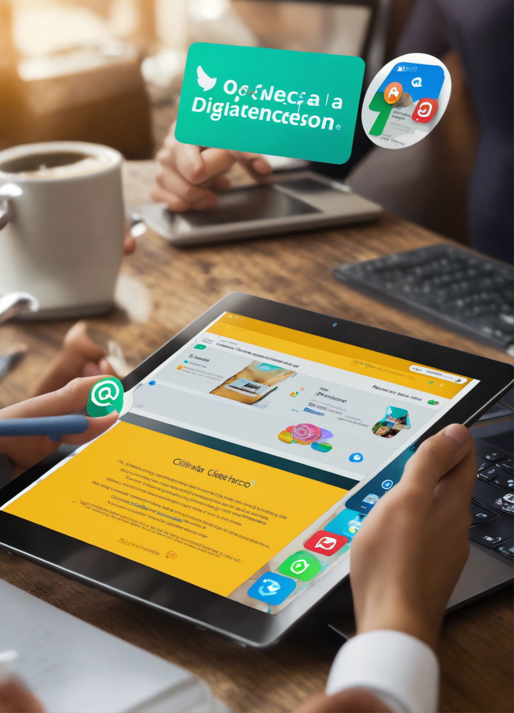 Oficina de atención al cliente digital, tablet, celular, teléfono, computadora, usuarios, canales de atención digital, whatsapp, facebook, correo, atención al cliente en persona.