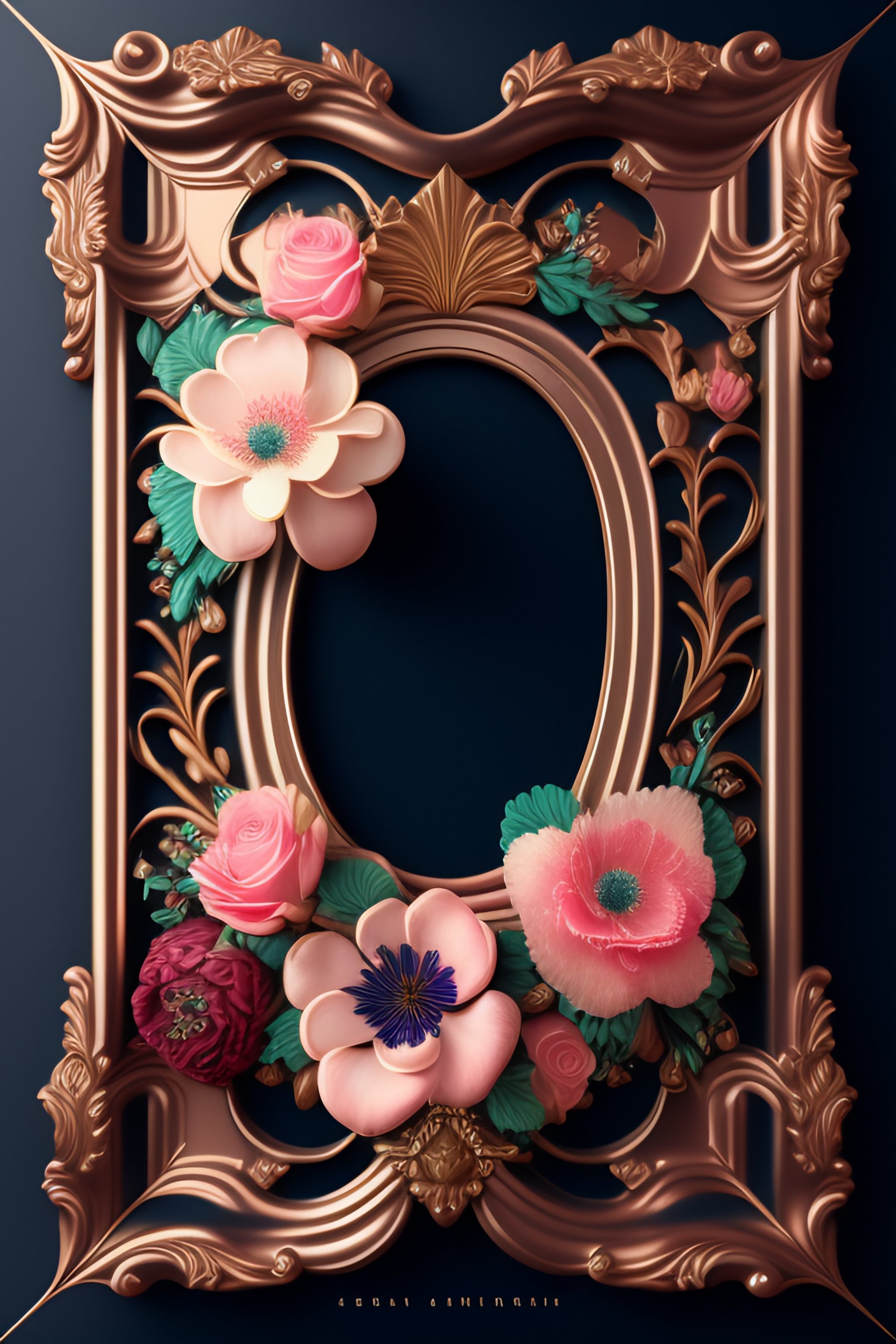 "create a royale 3d feminine, dark floral design frame using a soft color palette and a vintage aesthetic., high details, 4k