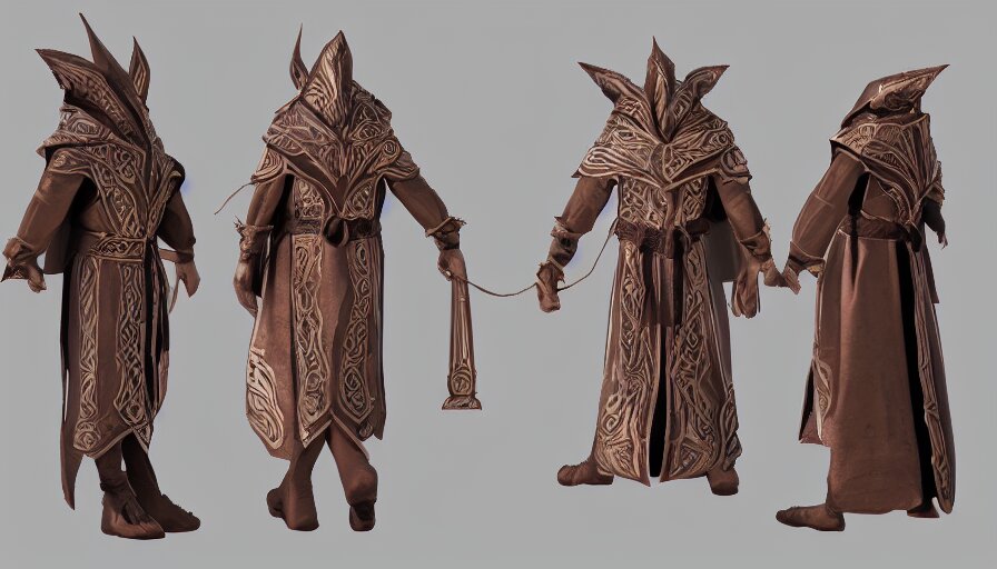 T-pose of wizard, magic belt, elaborate robes, hood, character design sheet, character reference sheet, tpose, t-pose, straight arms, 3d marketplace, different angles, octane render, ray tracing, unreal engine 5, daz, zbrush, 8k ultra hd