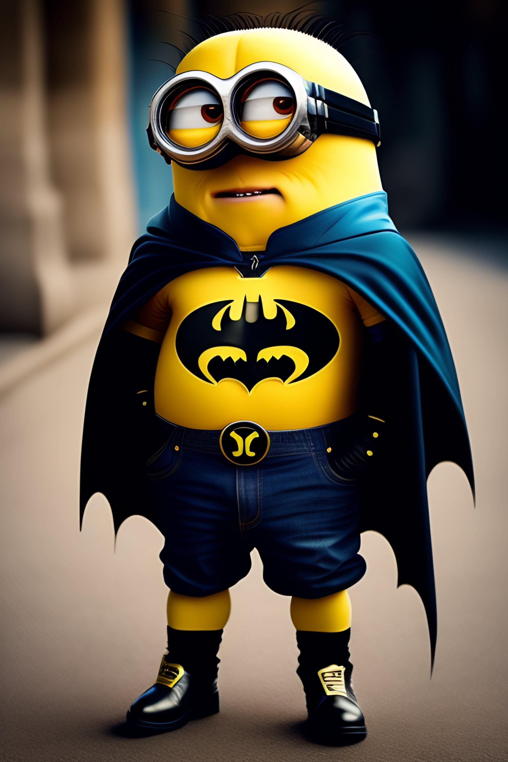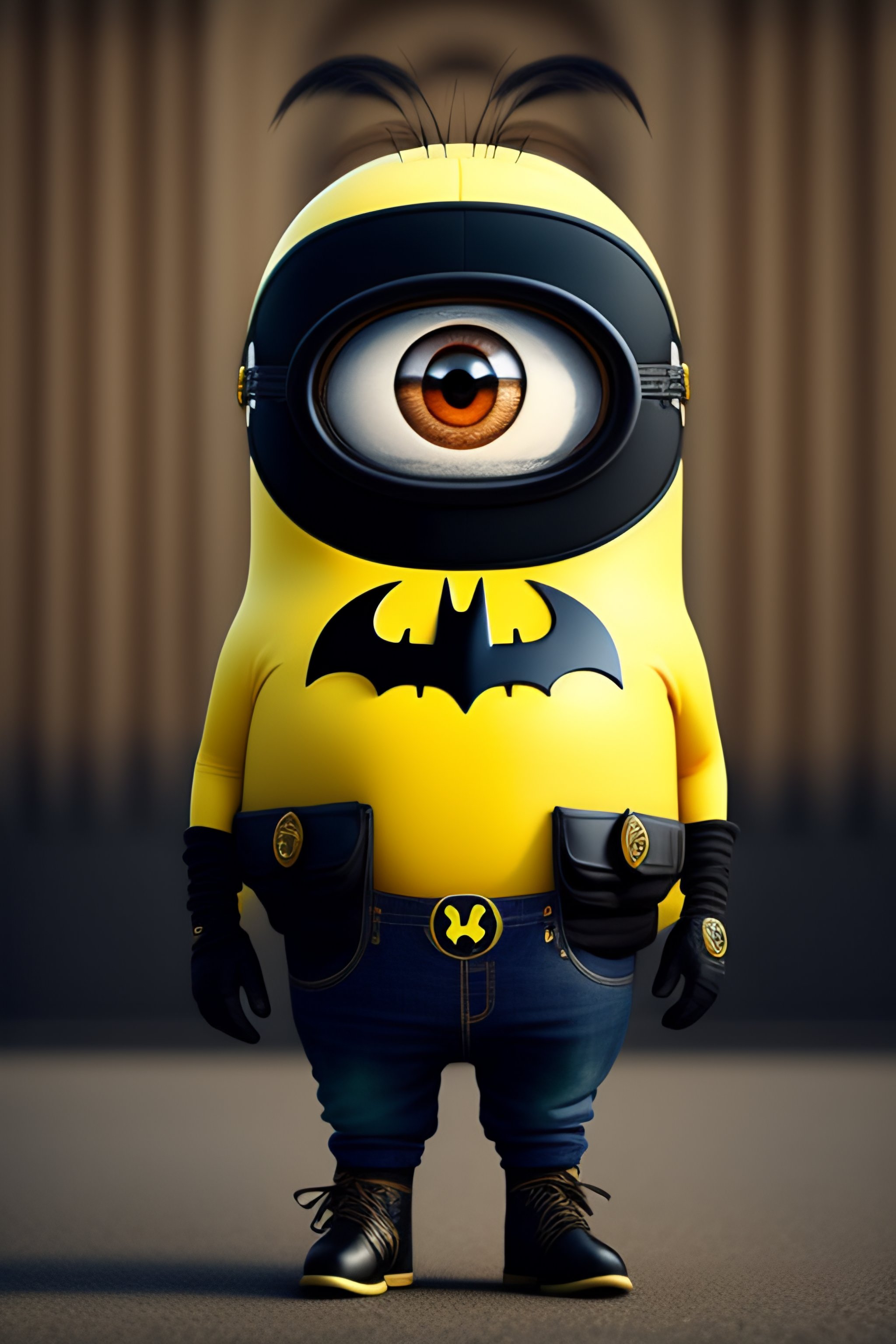 A minion wearing the cloths of batman