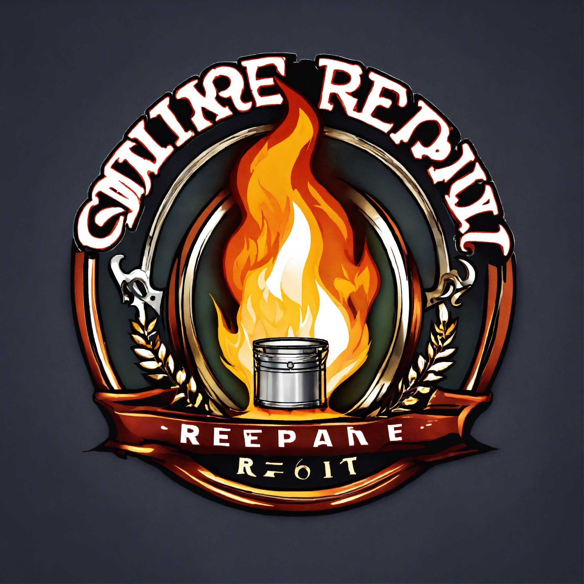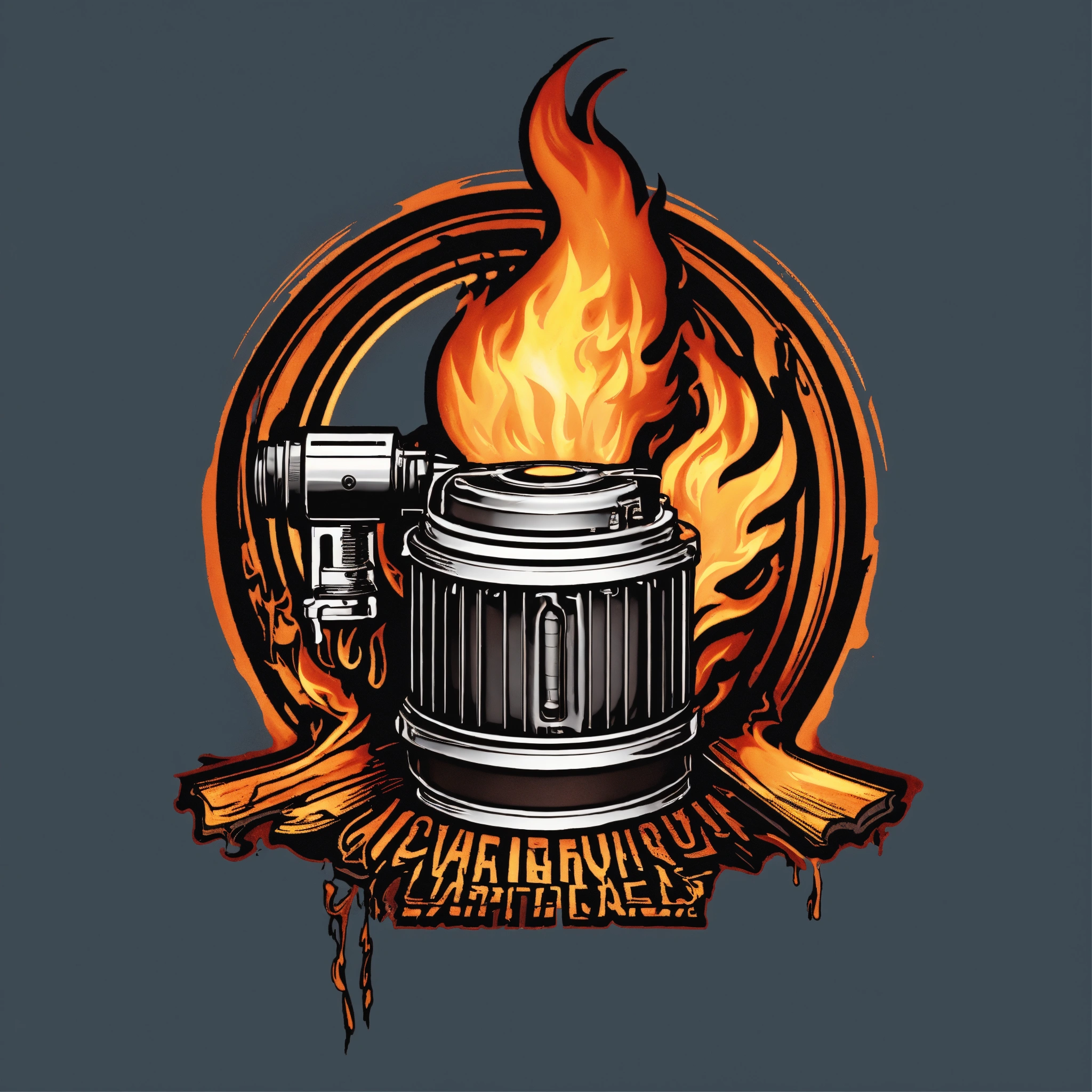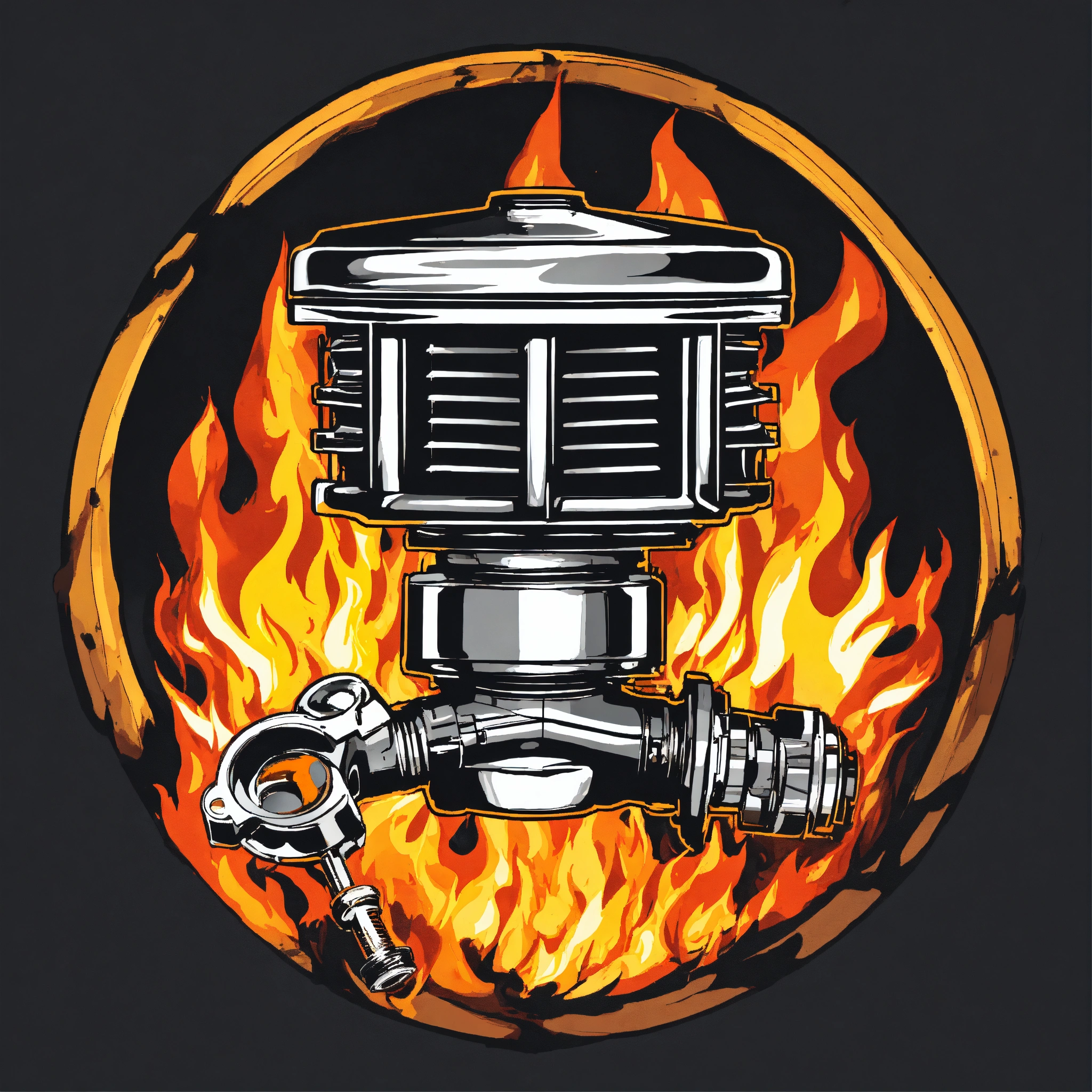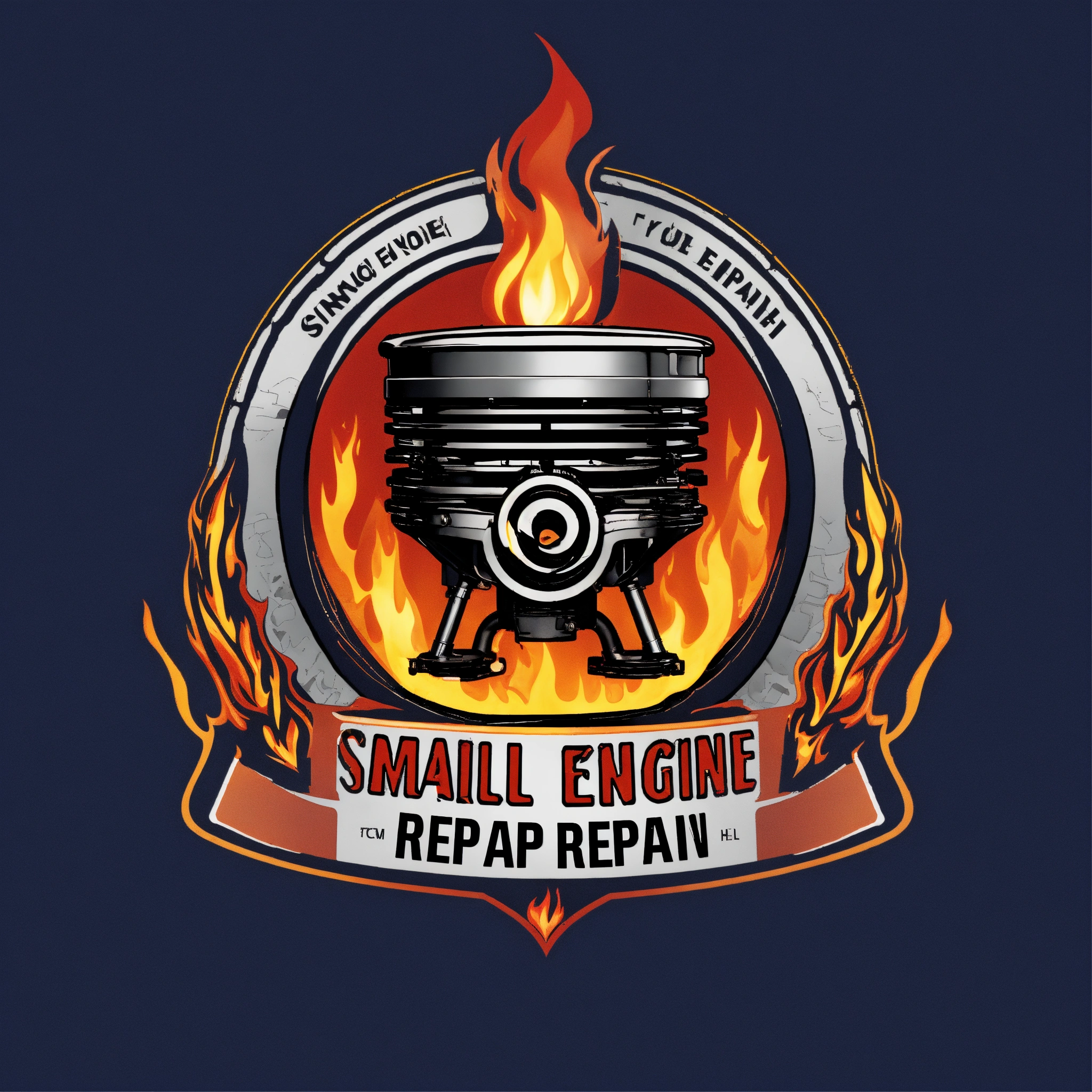 Small engine repair logo with single engine piston on fire