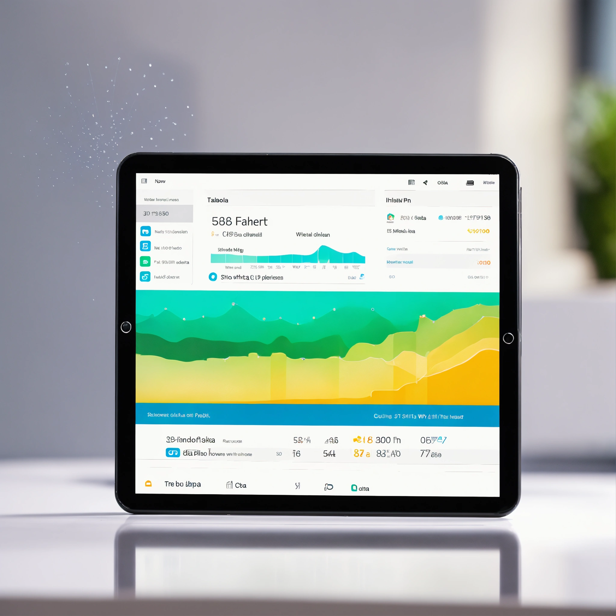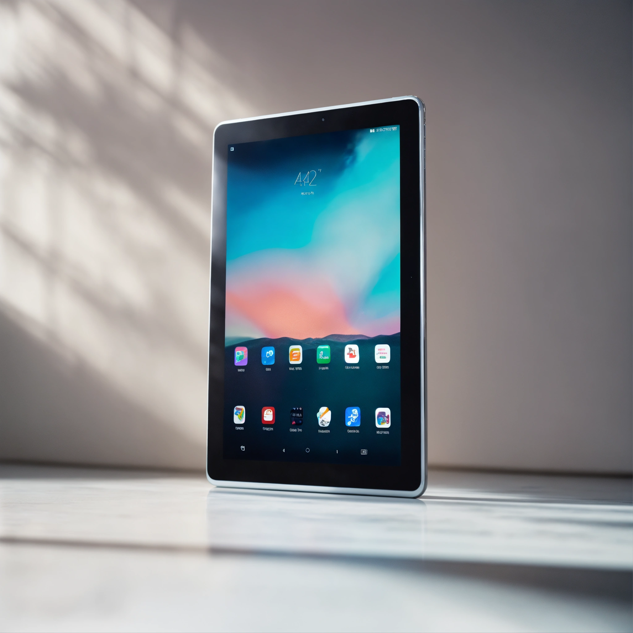 A photo of a tablet with a free data plan, the tablet is new and looks shiny, the background is a plain white wall