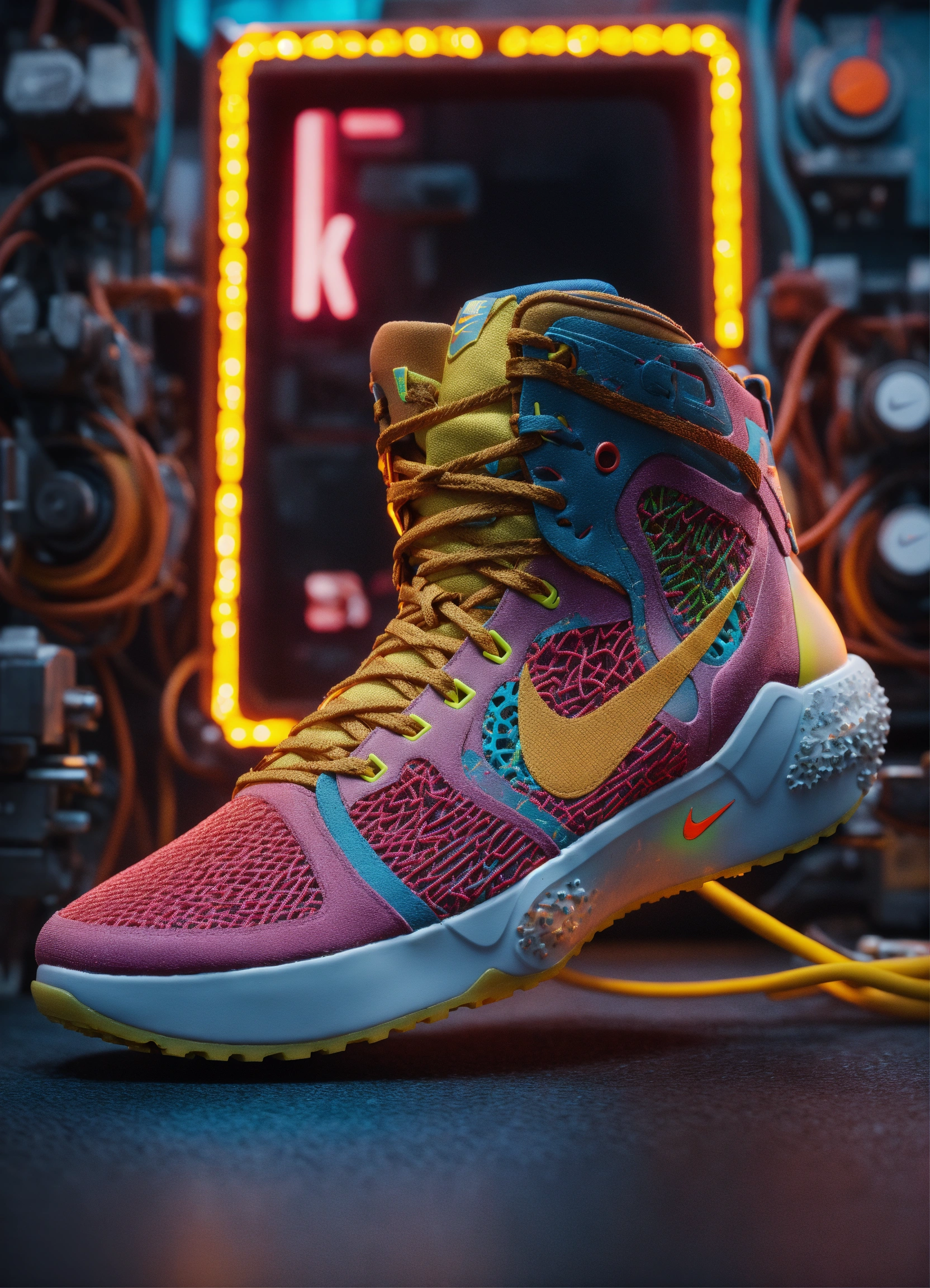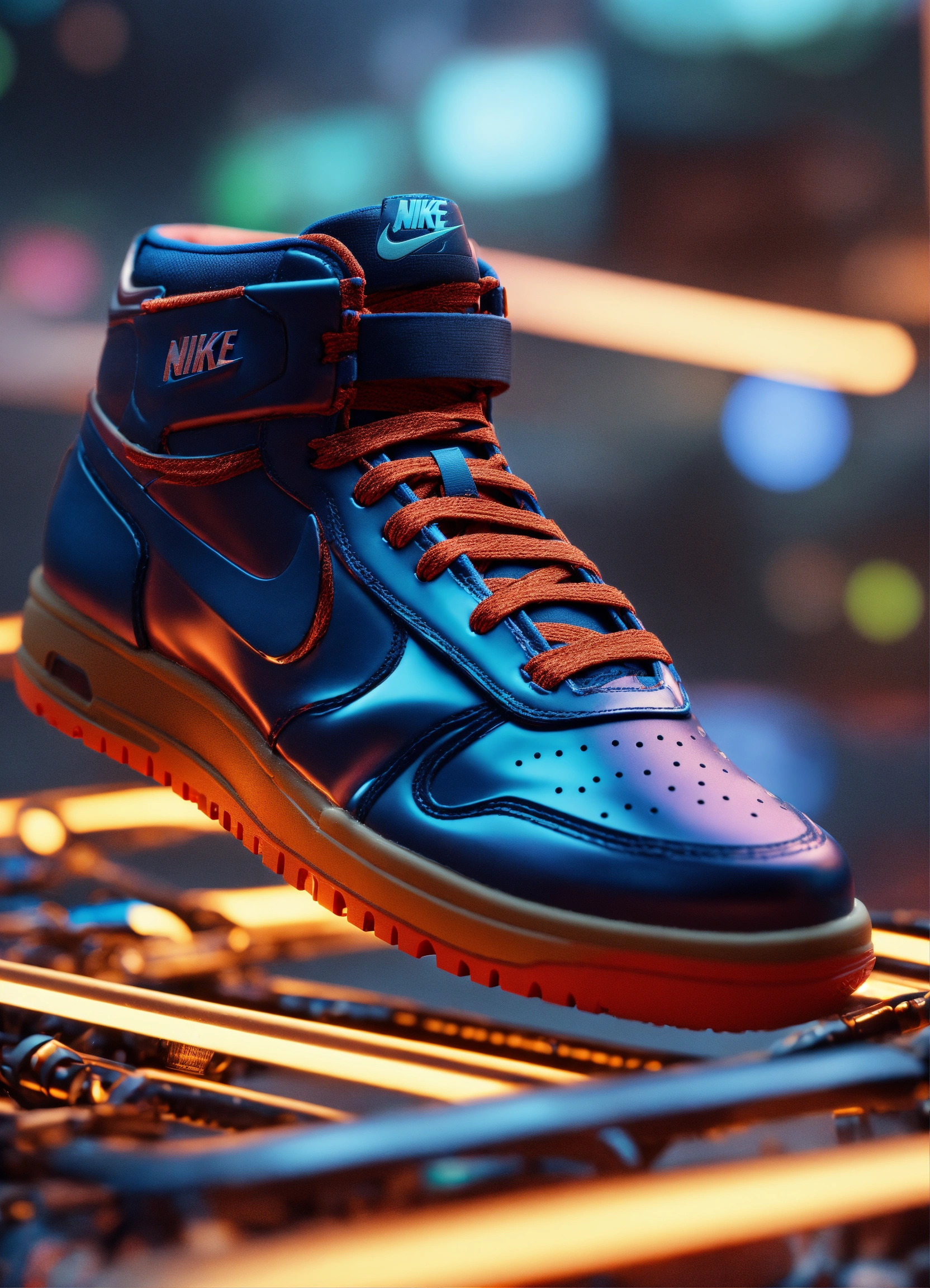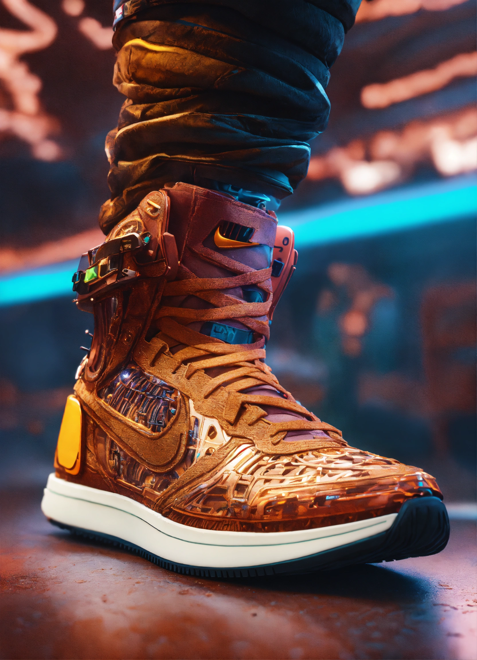 Nike sneakers made out gears, wires, mechanical, electronics, pcb, hyper-realis, futurist, stunning unreal engine render, product photography 8k, hyper-realistic. surrealism