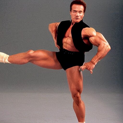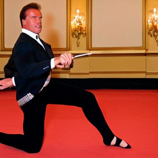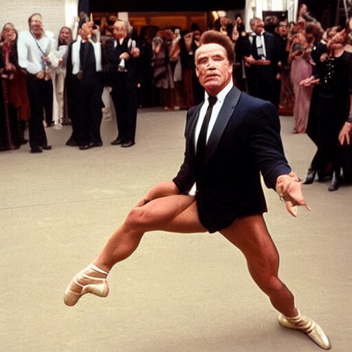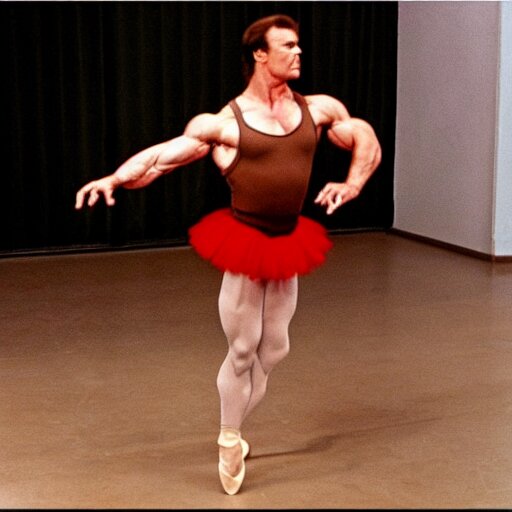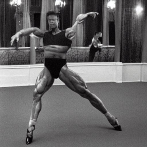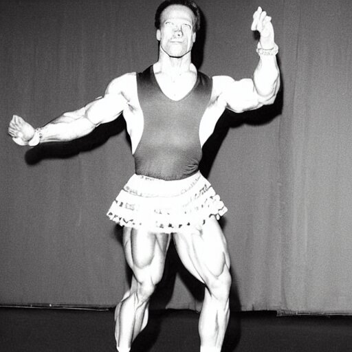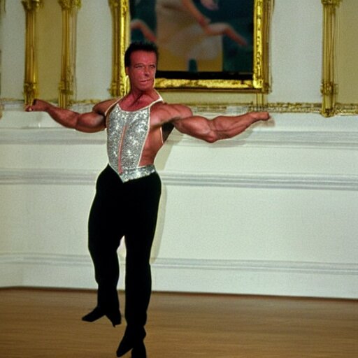 Arnold schwarzenegger dressed like a classic ballerina dancing on the floor