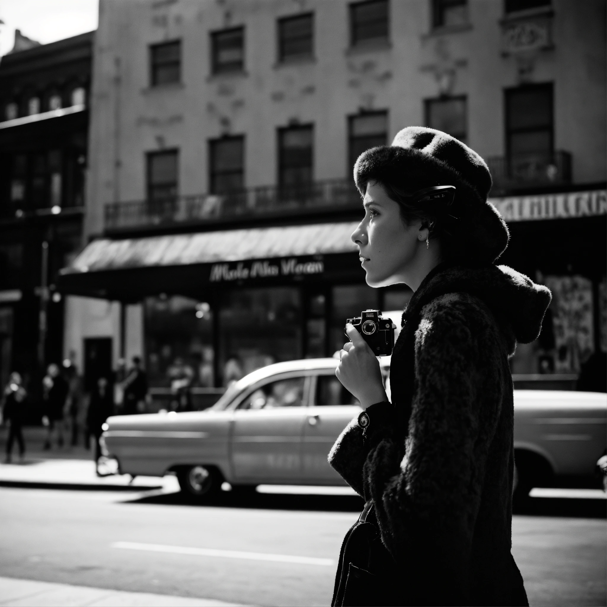 Street photography in the style of vivian maier and rolleiflex black and white film
