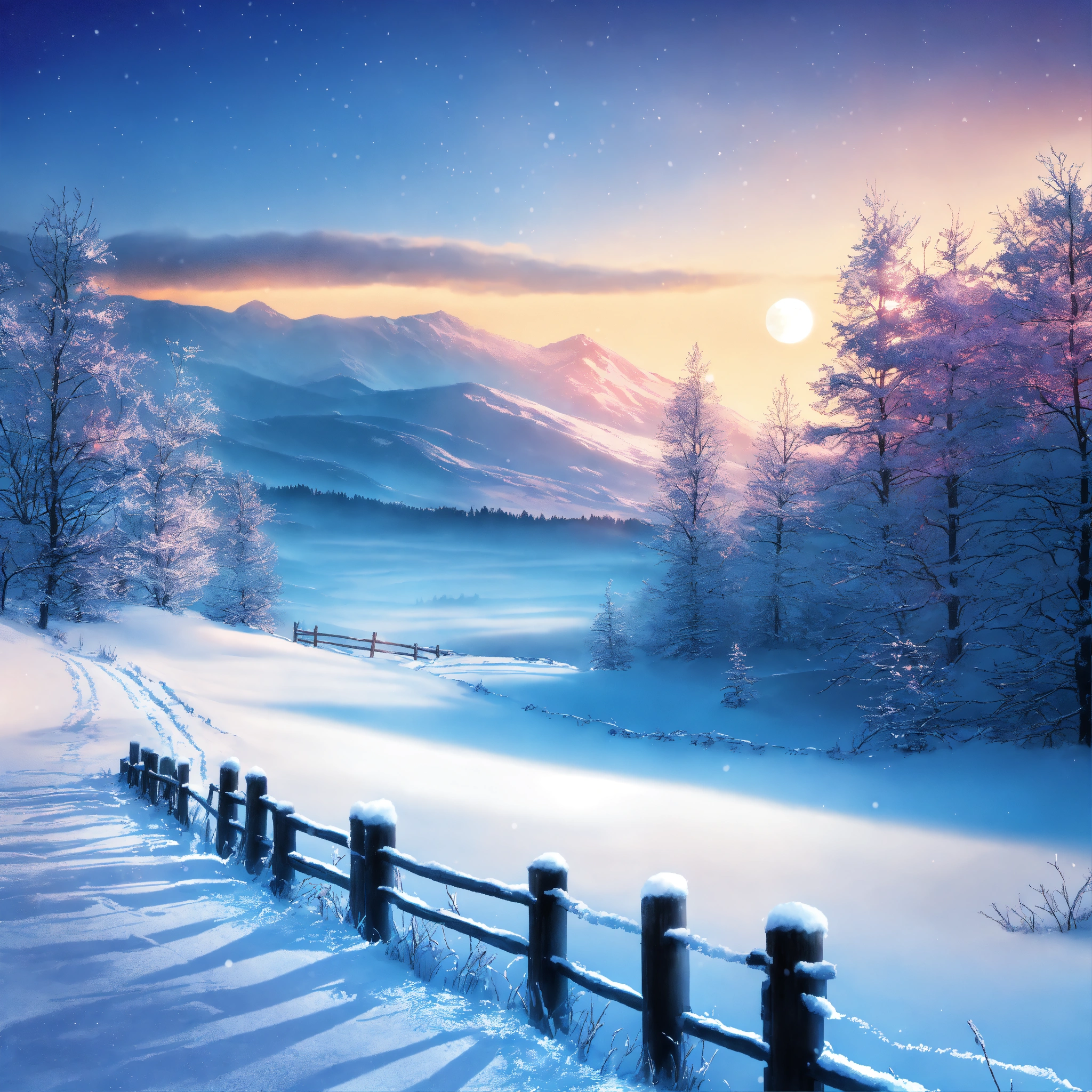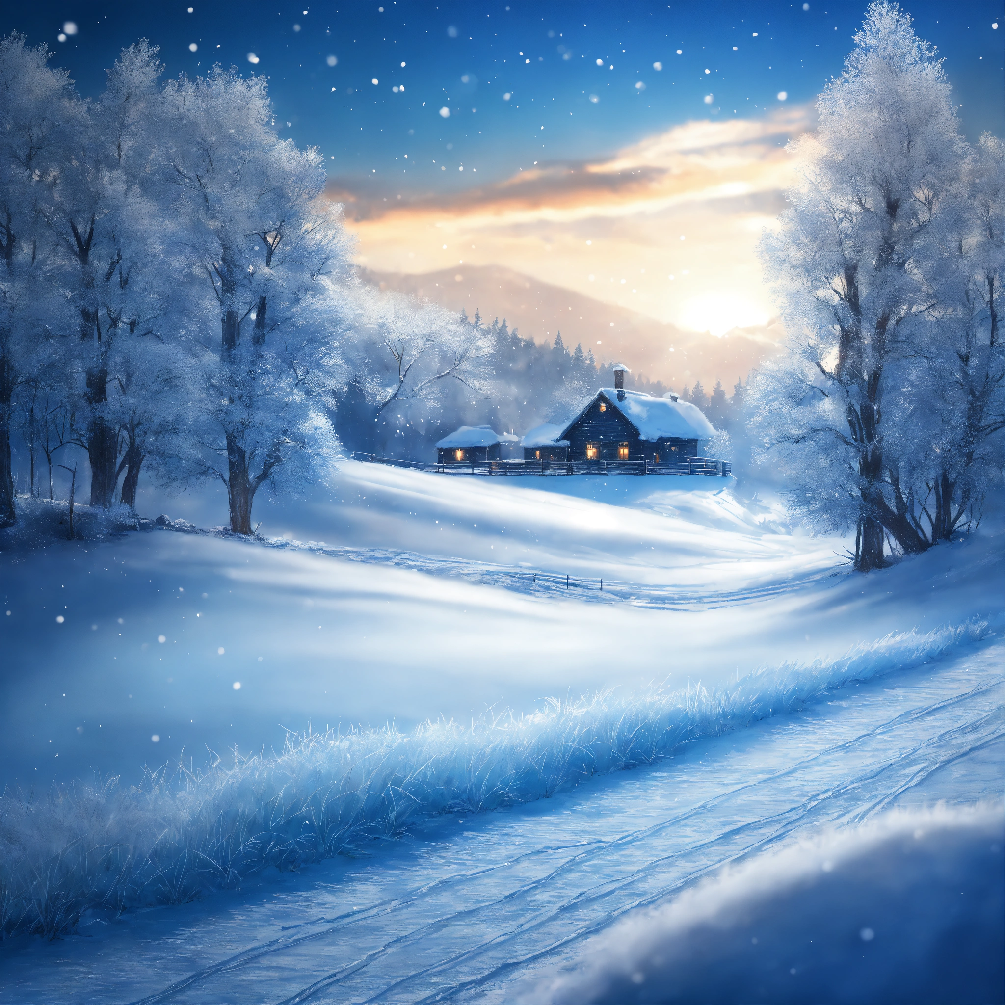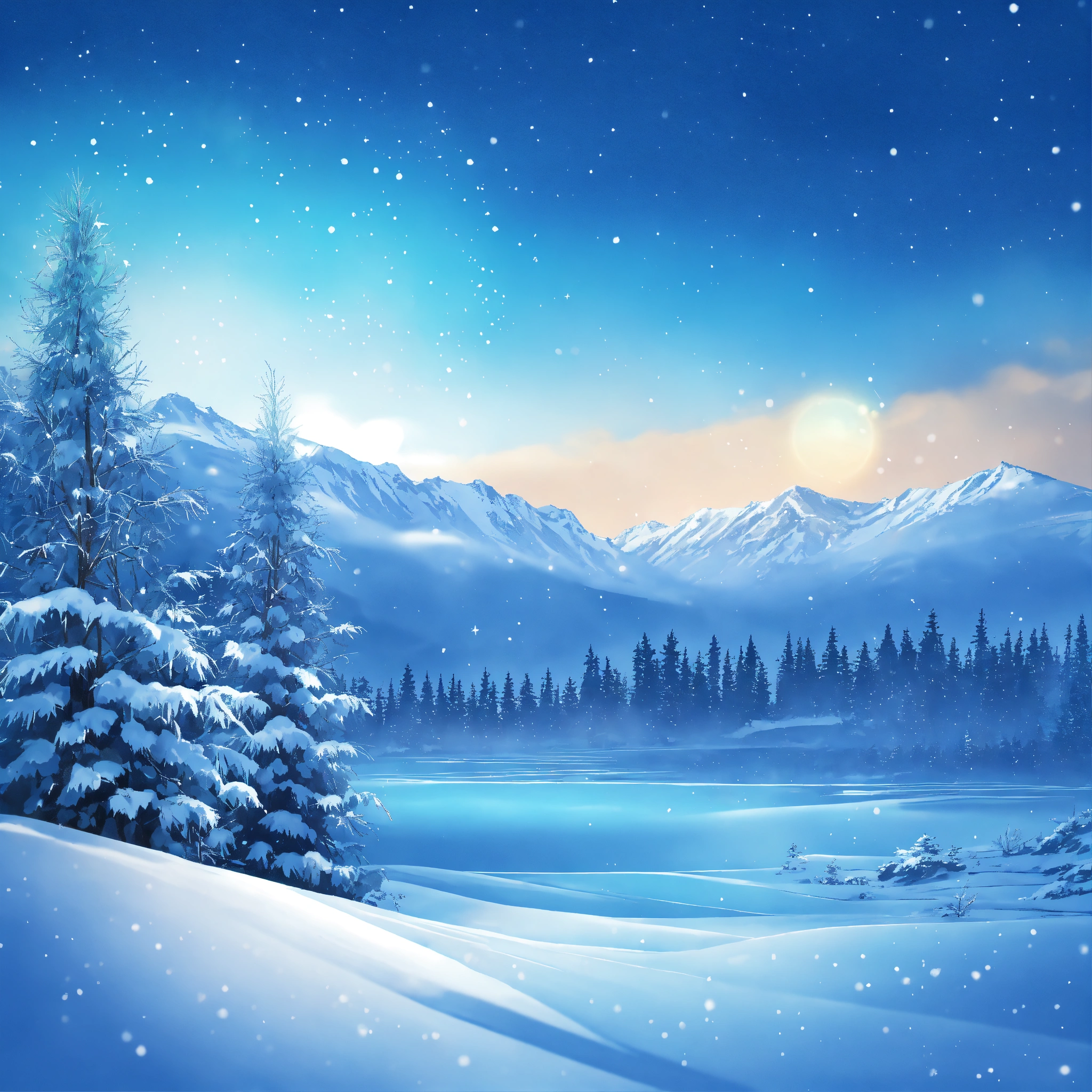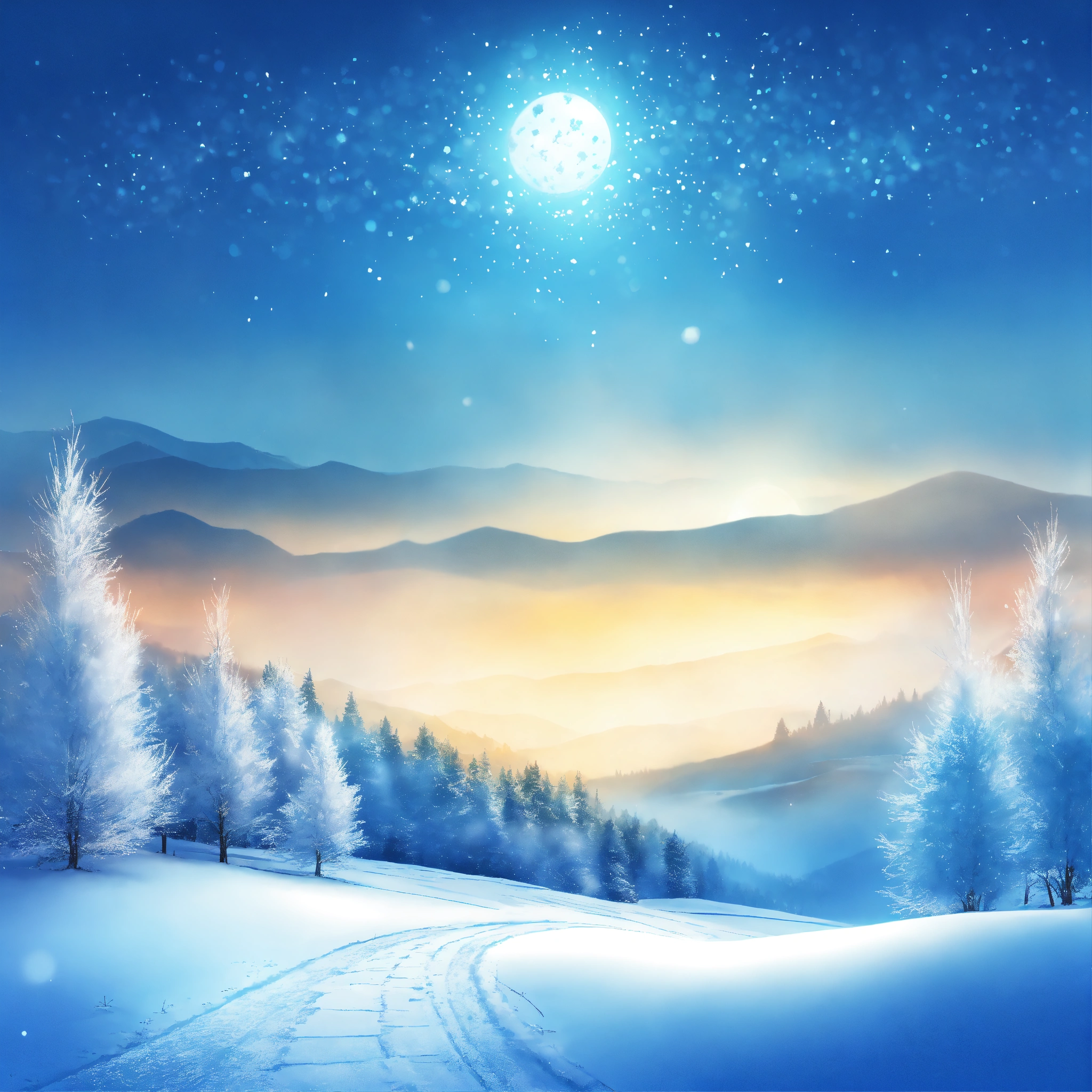 Create a shining blue winter background with a frosty landscape