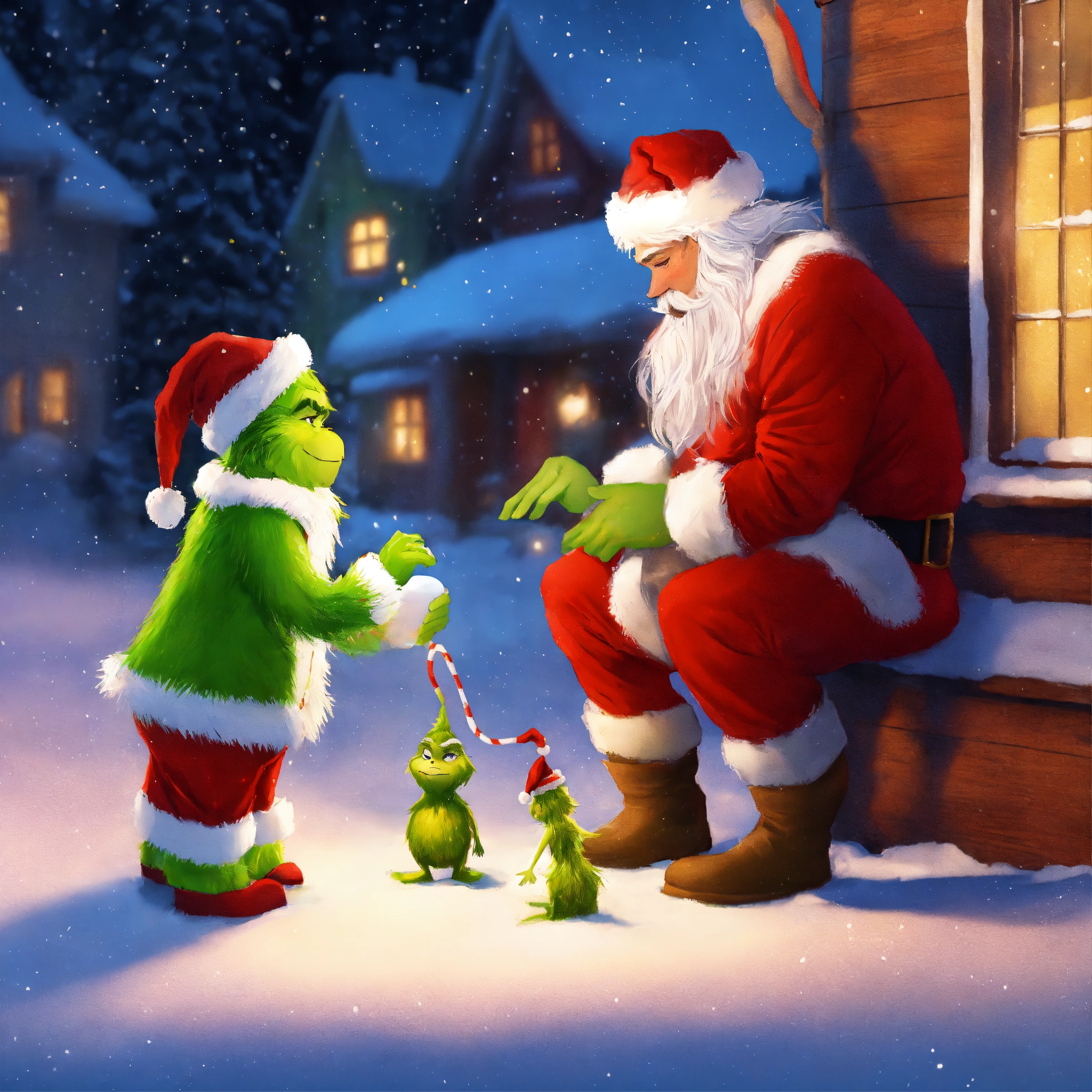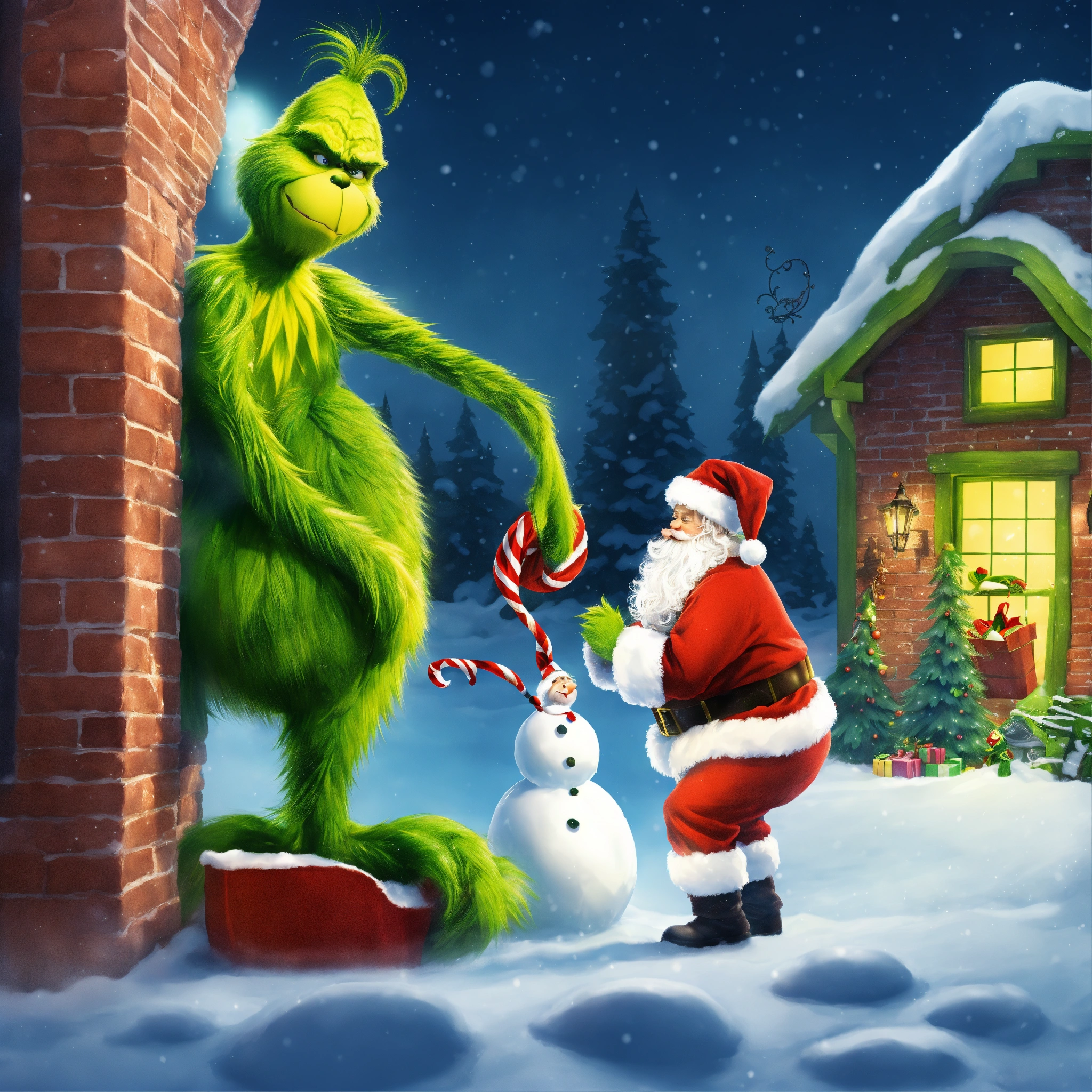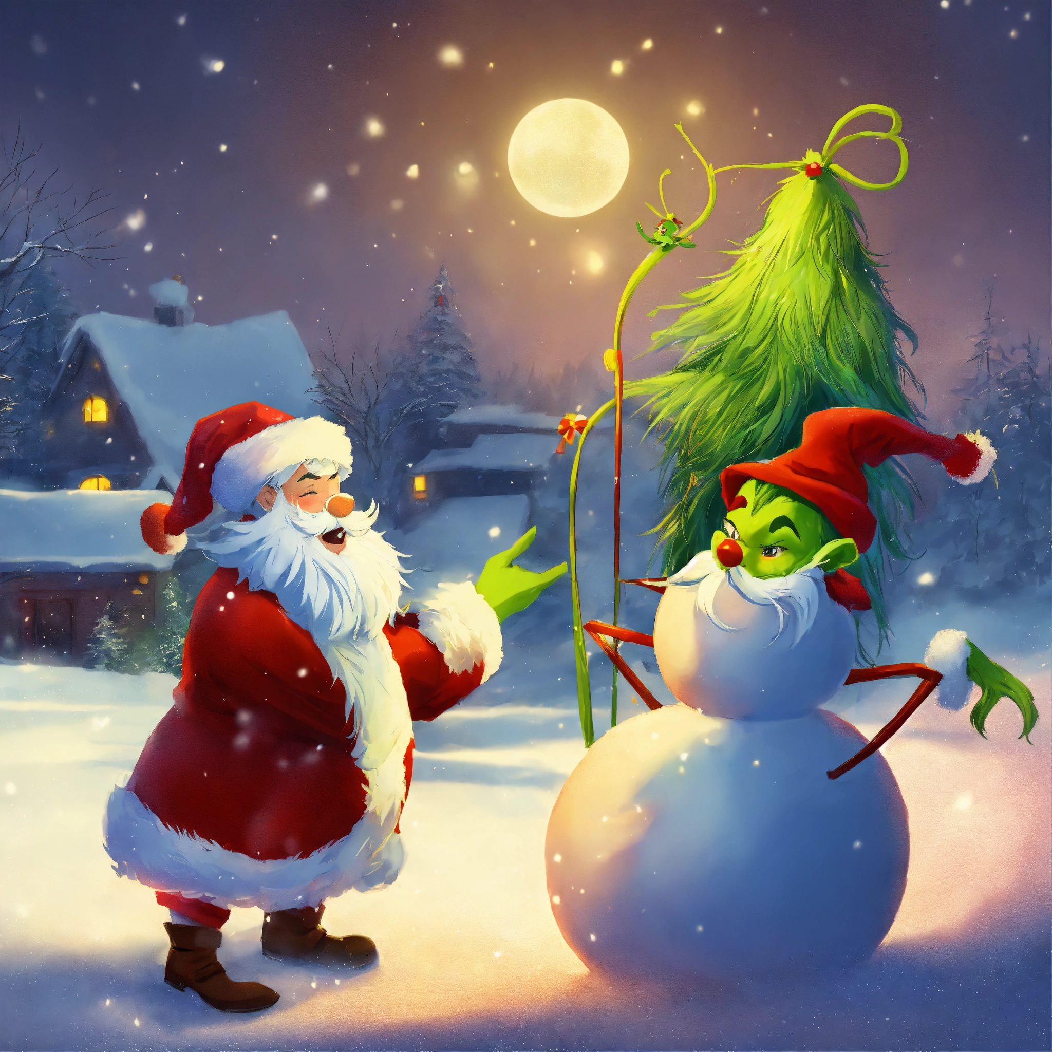 Santa claus and the grinch while making a snowman togheter digital illustration
