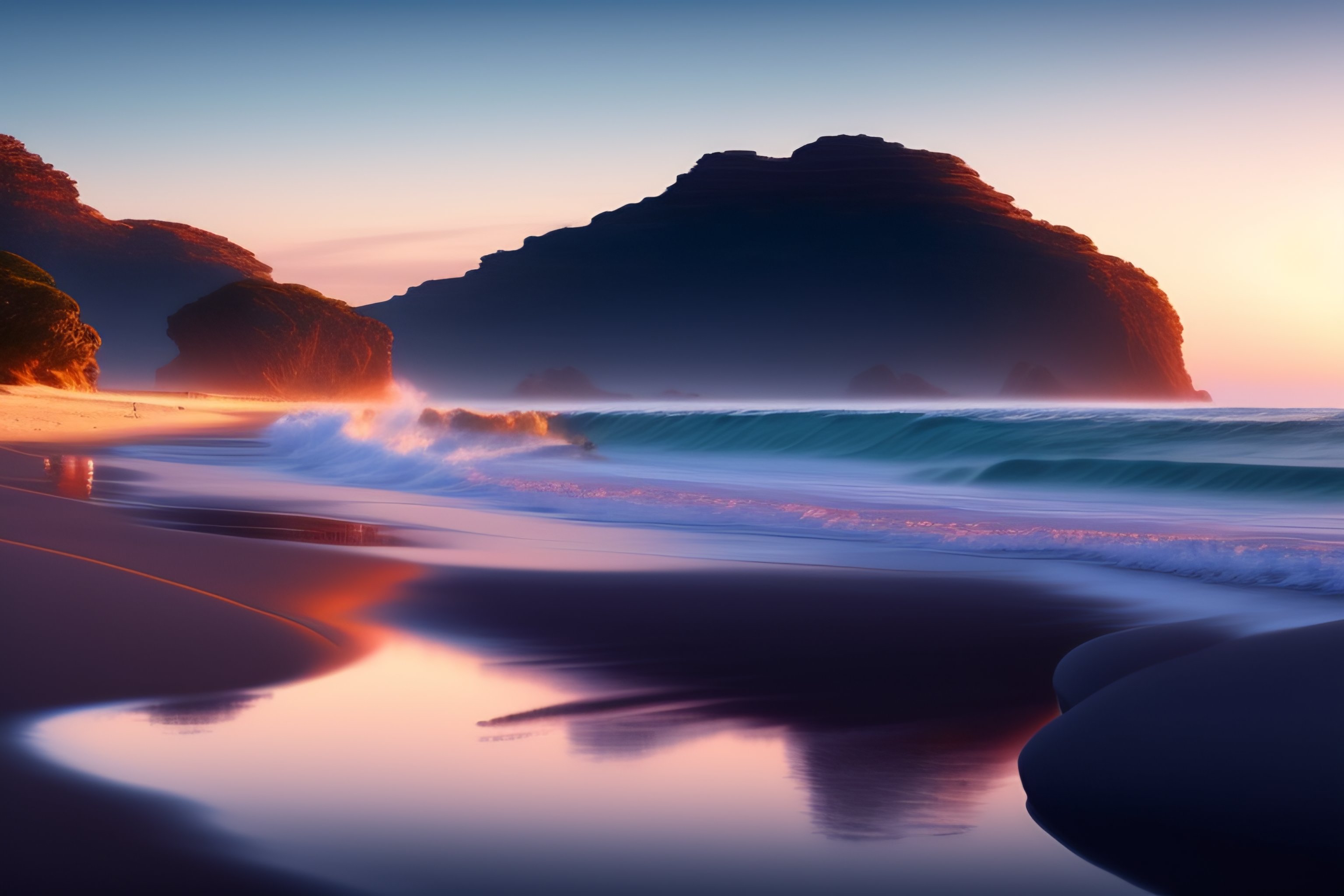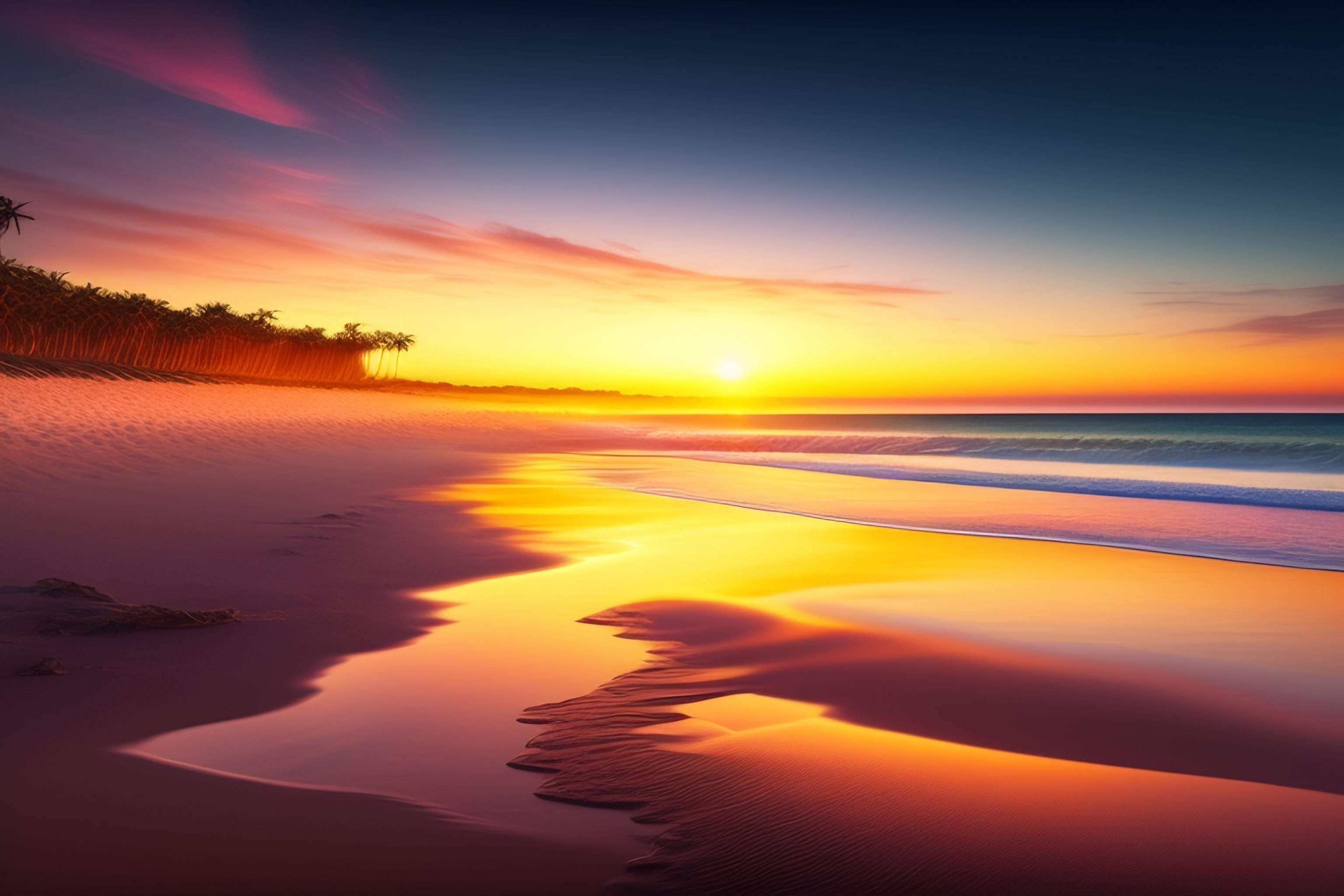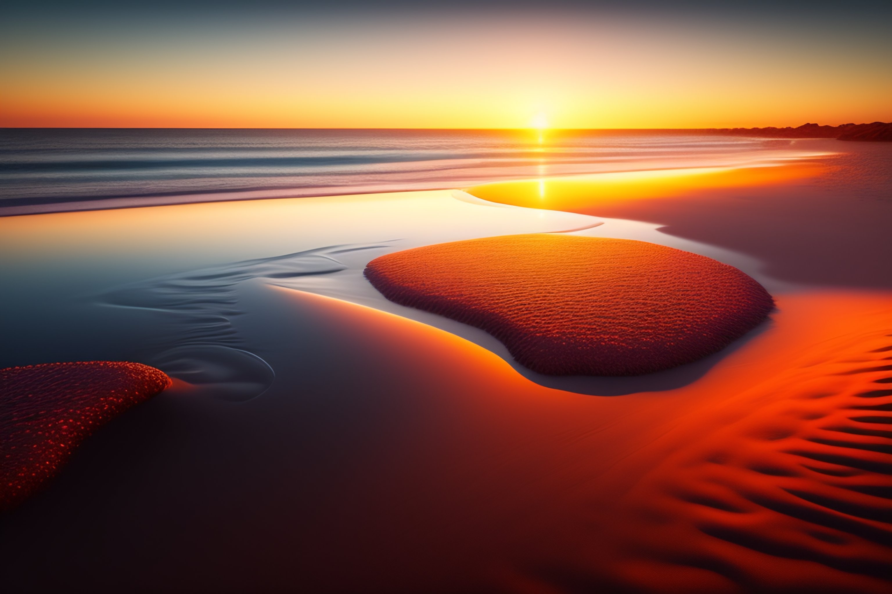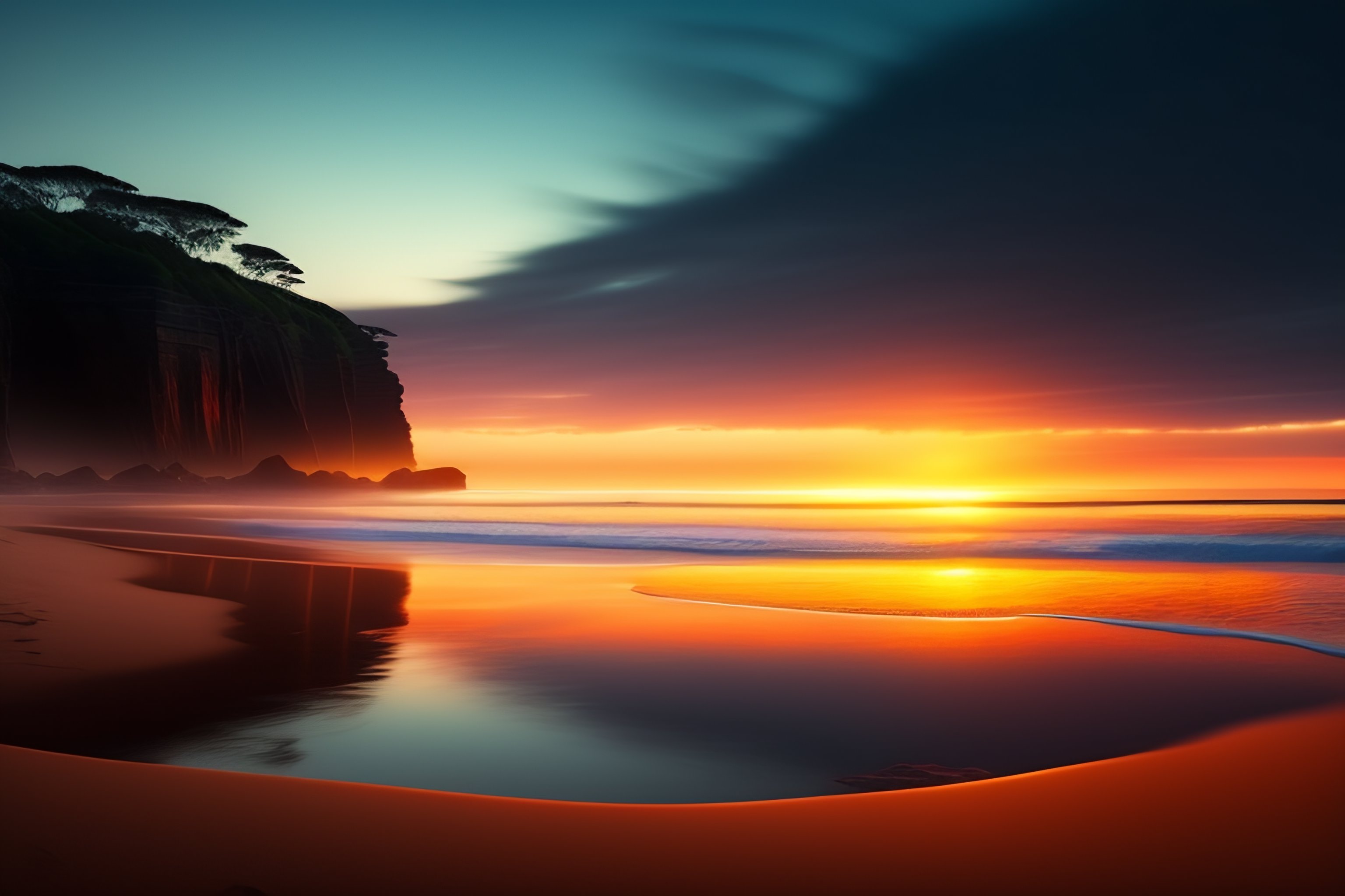 "beautiful beach landscape at sunset, beautiful reflections, 8k resolution concept art detailed matte painting australian tonalism poster art art of illusion 3ds max complex beautiful elaborate elemental fire fantastical"