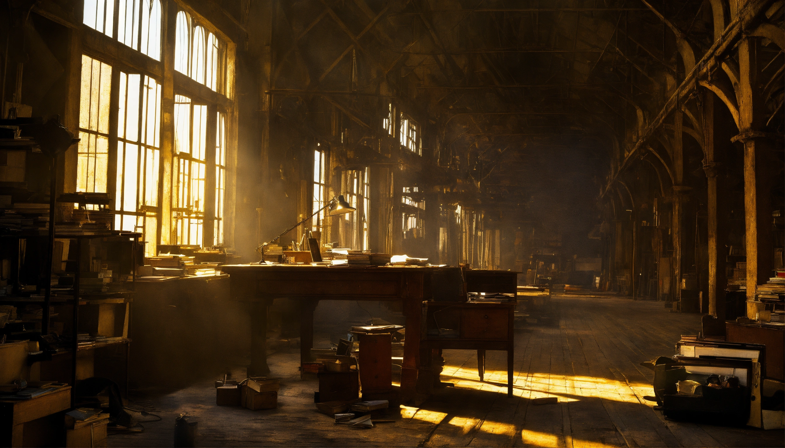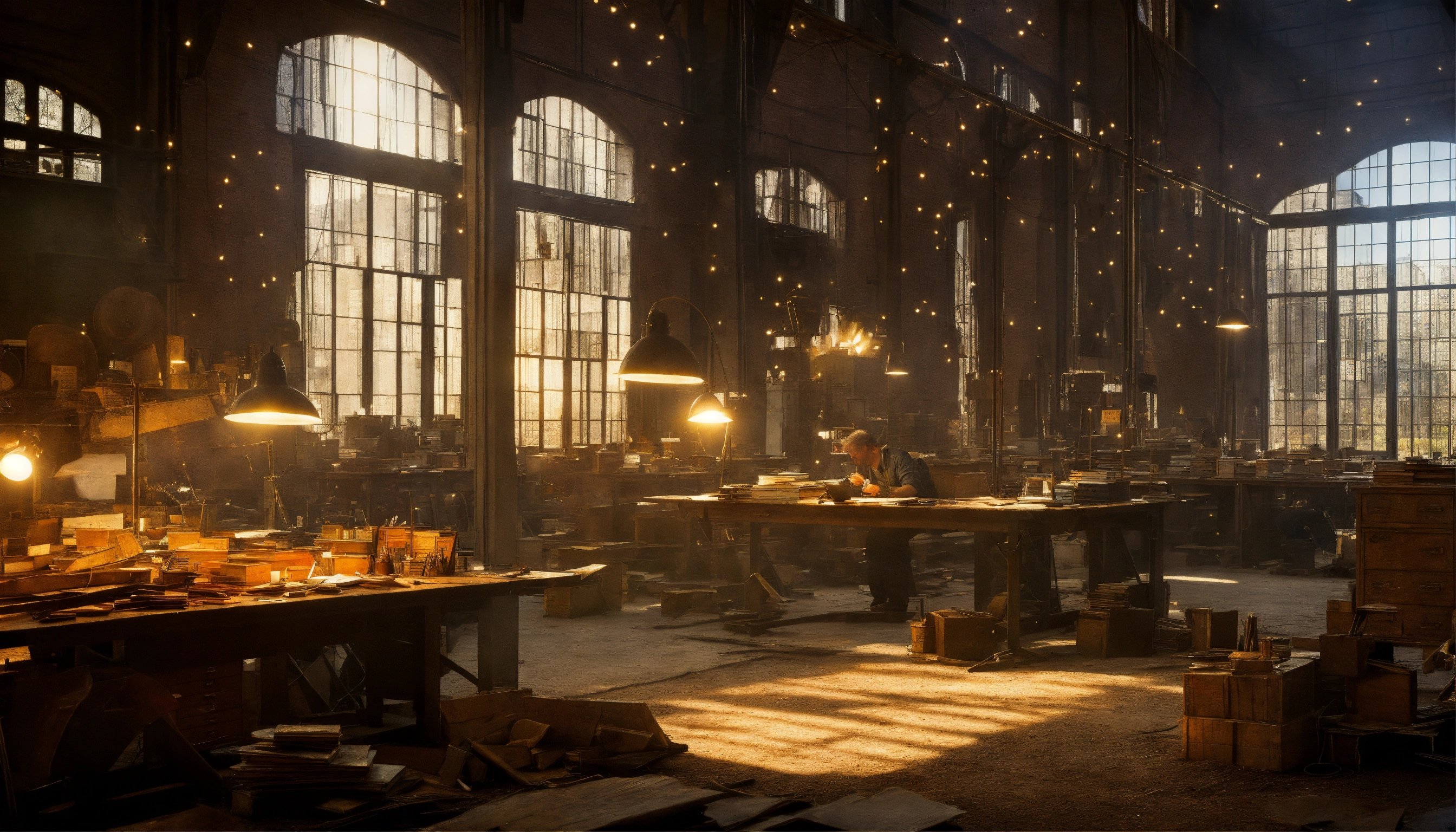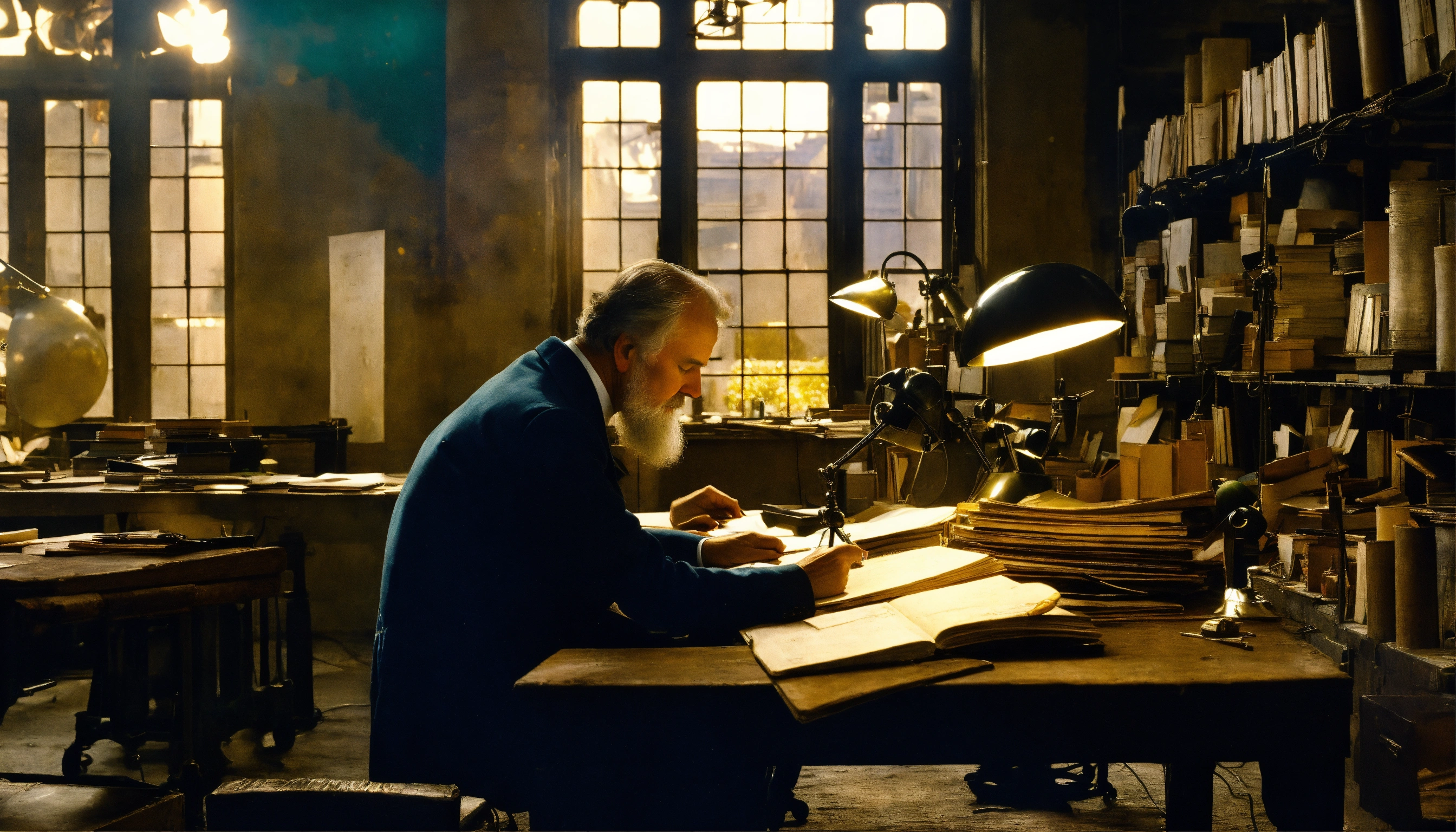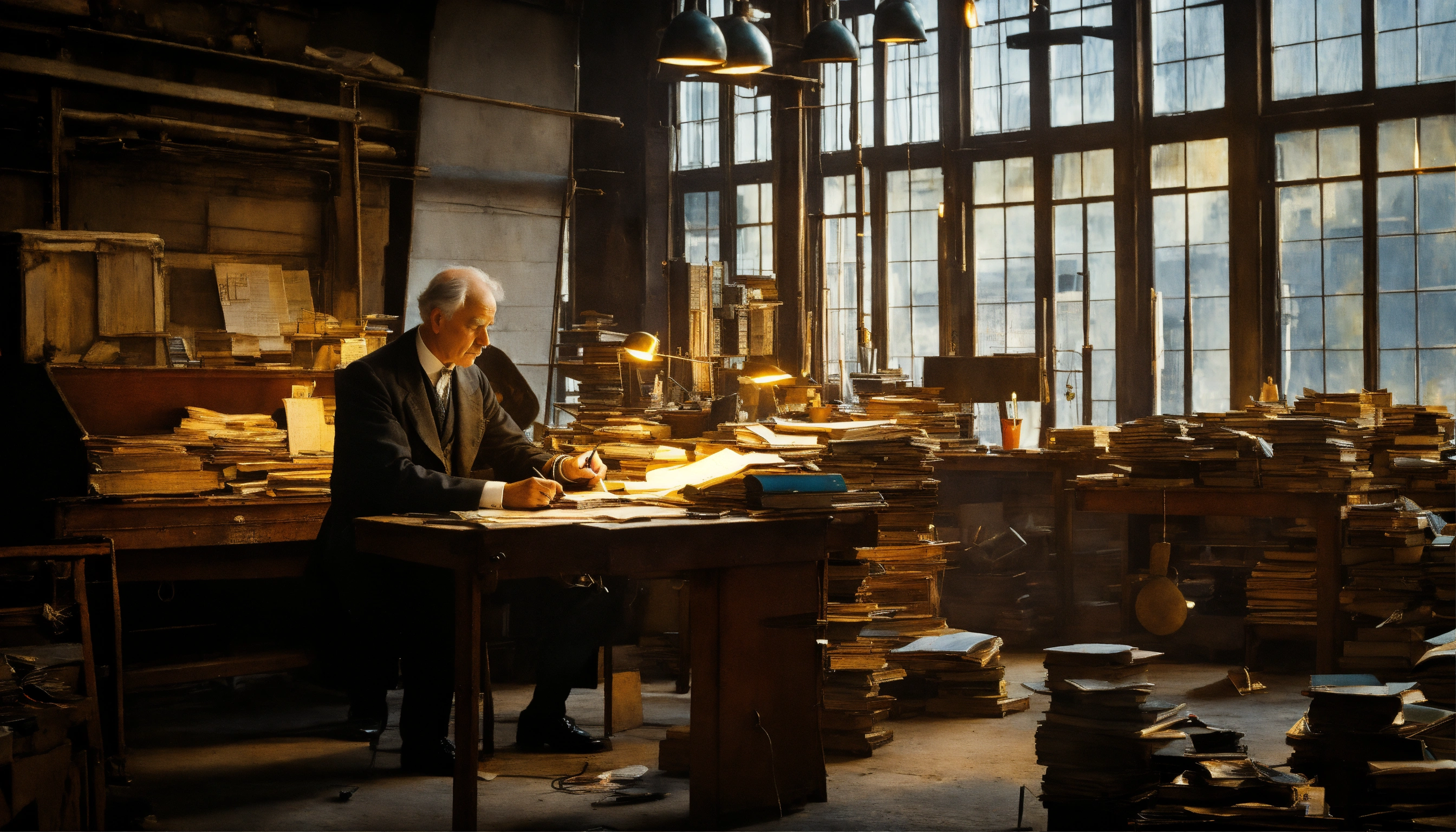 poet in an old factory at his desk