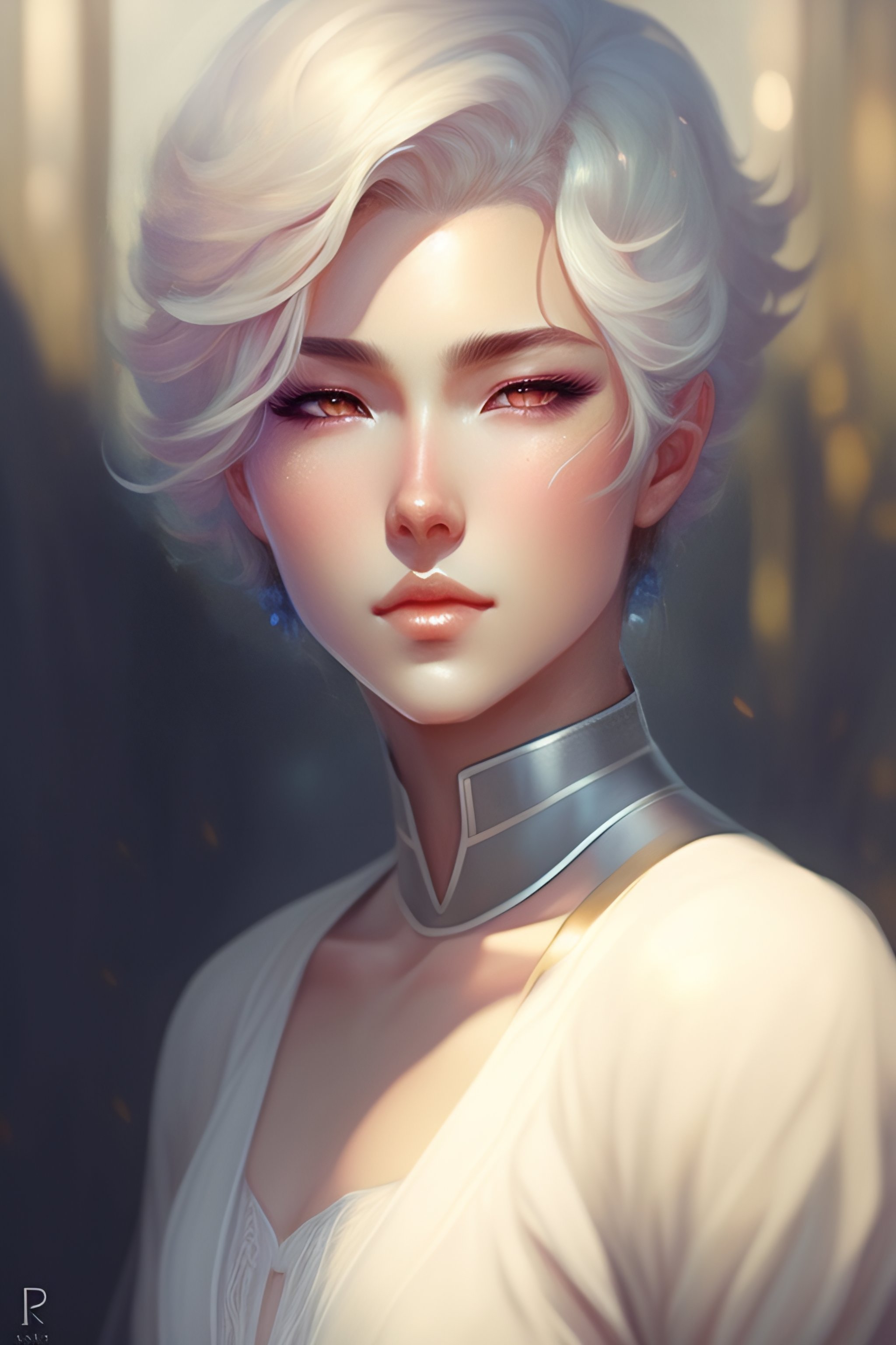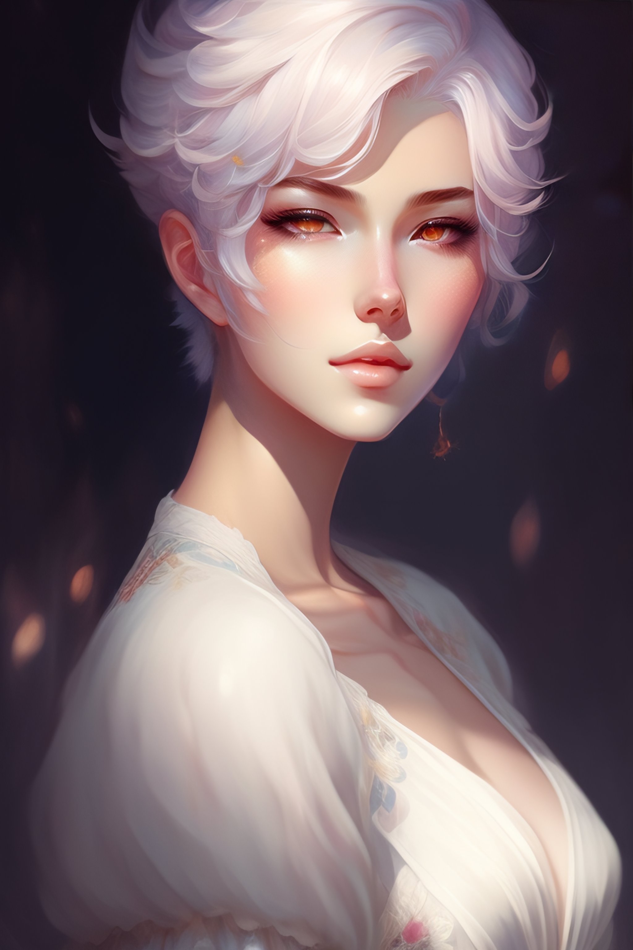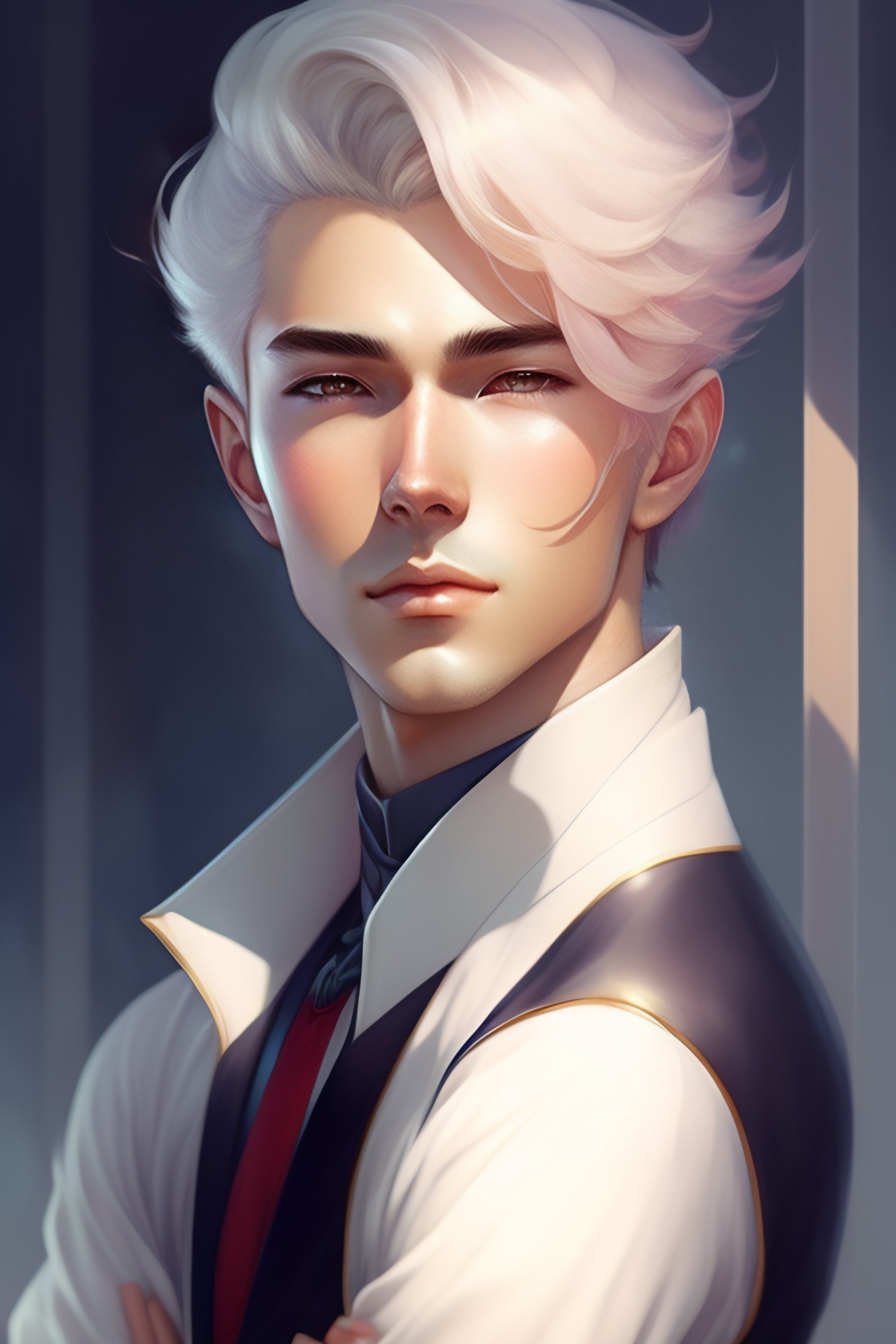 Beautiful anime boy with short white hair, character portrait, 1 9 6 0 s, long hair, intricate, elegant, highly detailed, digital painting, art station, concept art, sharp soft focus, illustration, wlop art, charlie bowater and alexandra fomina