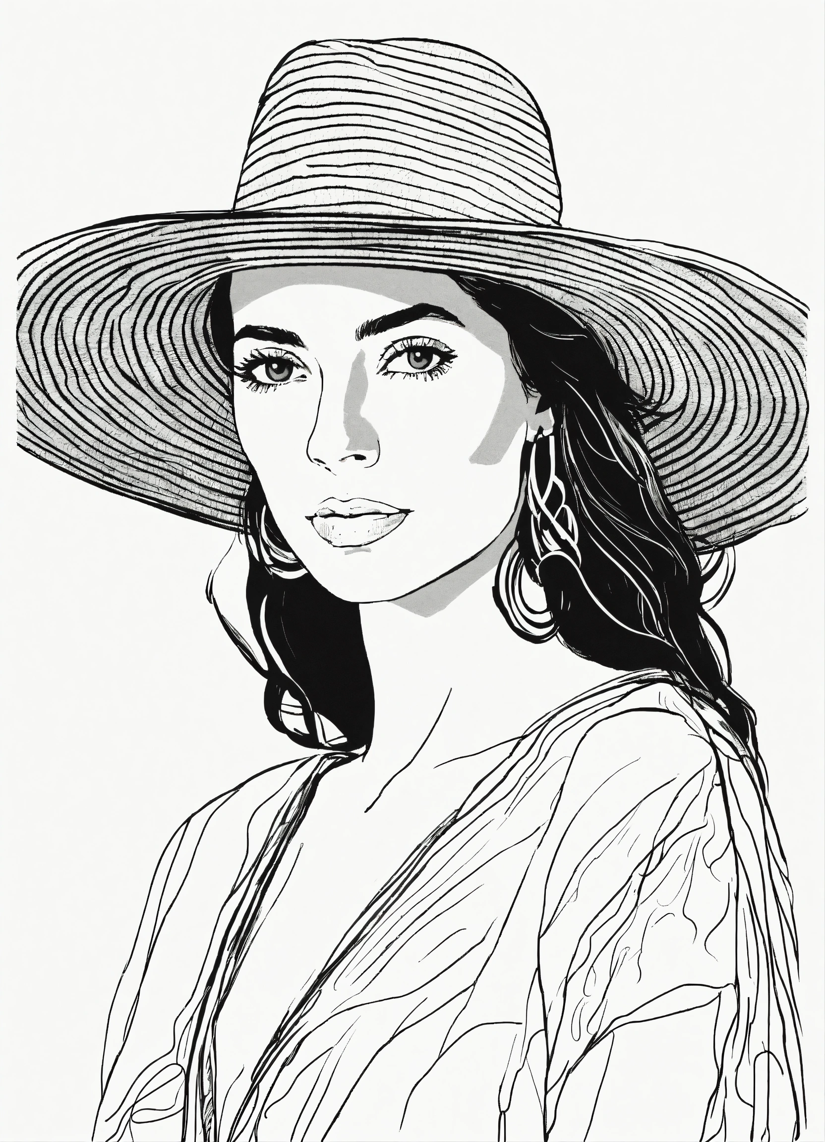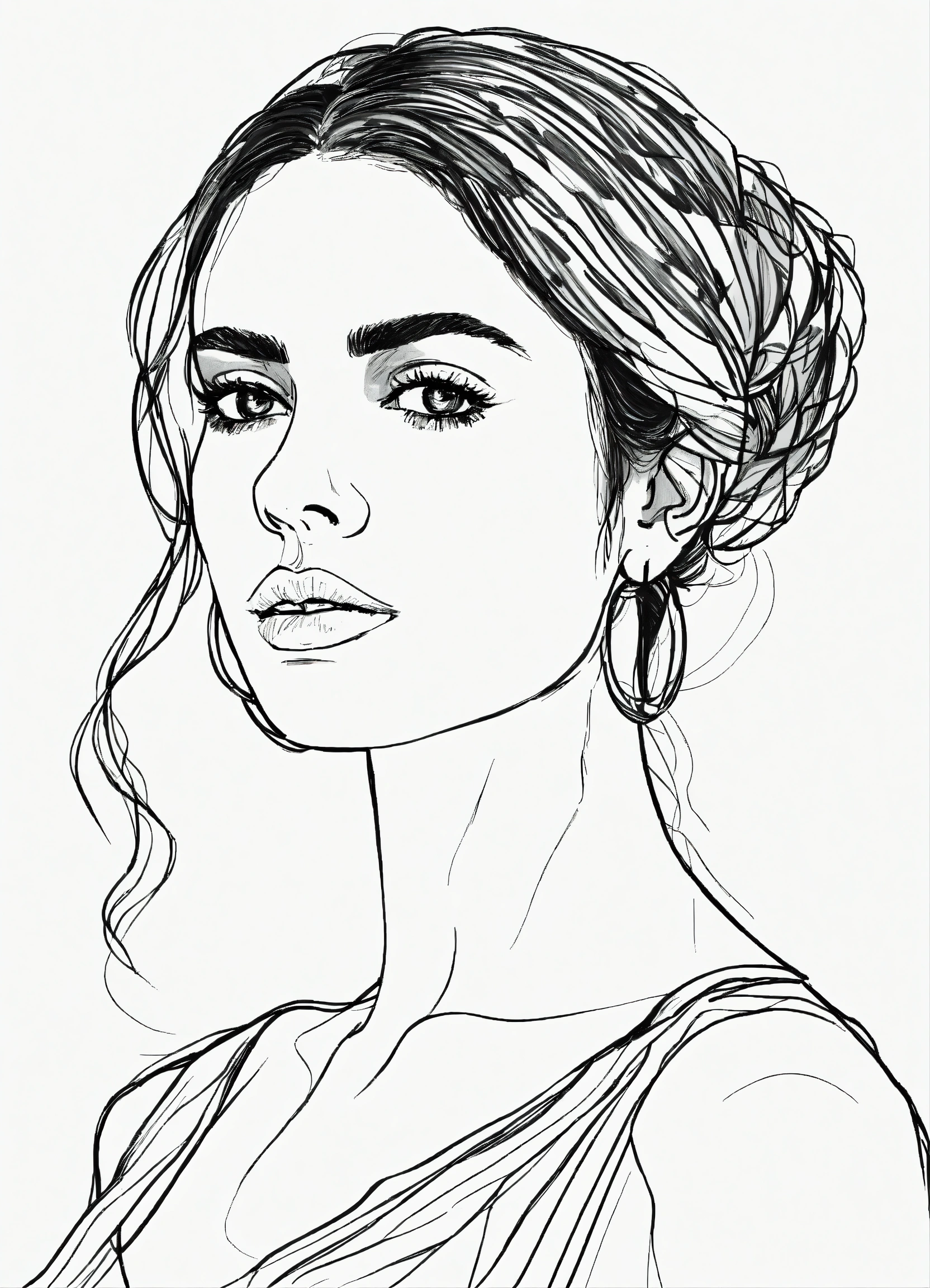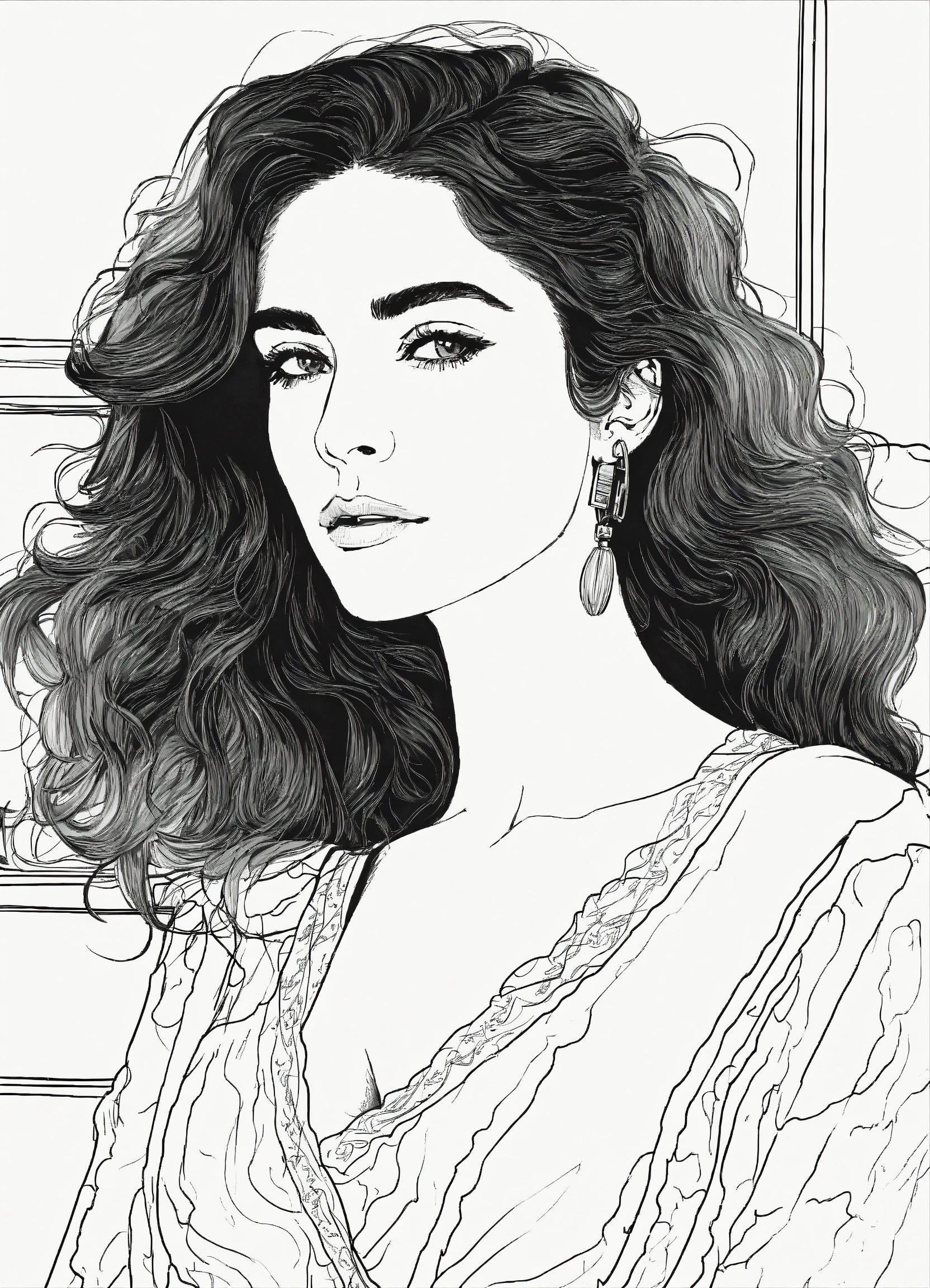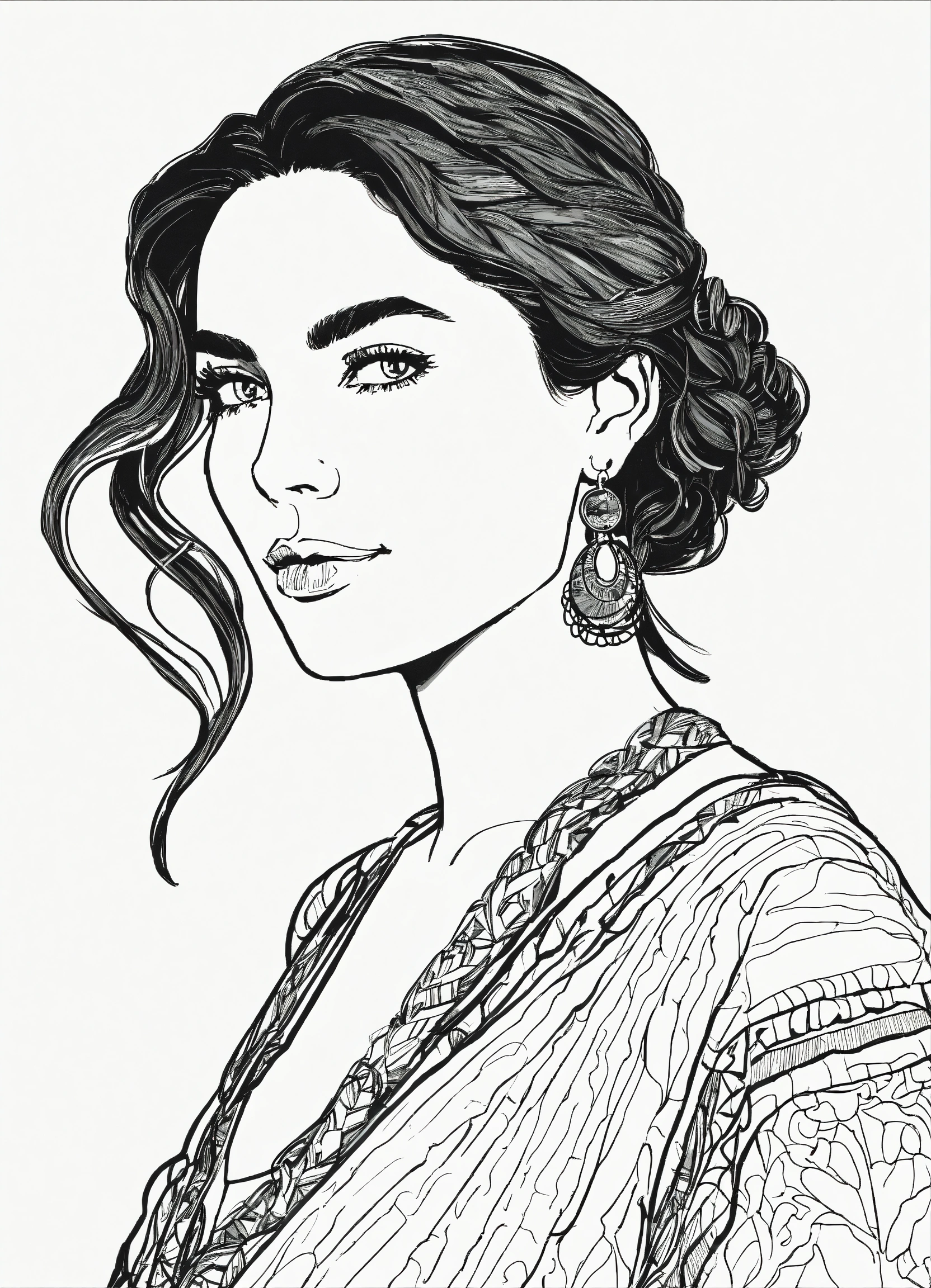 Black and white line drawing of modern spanish woman