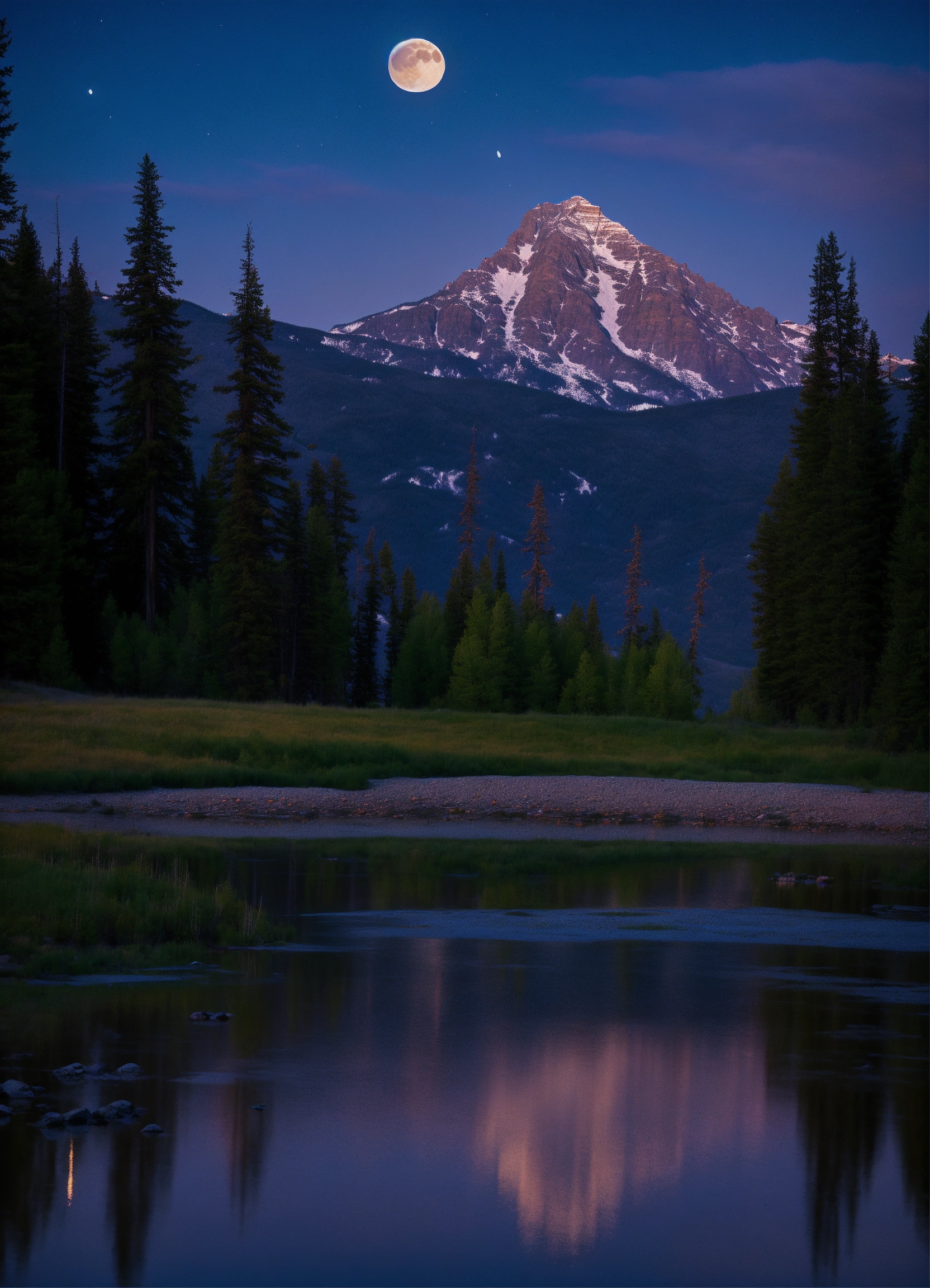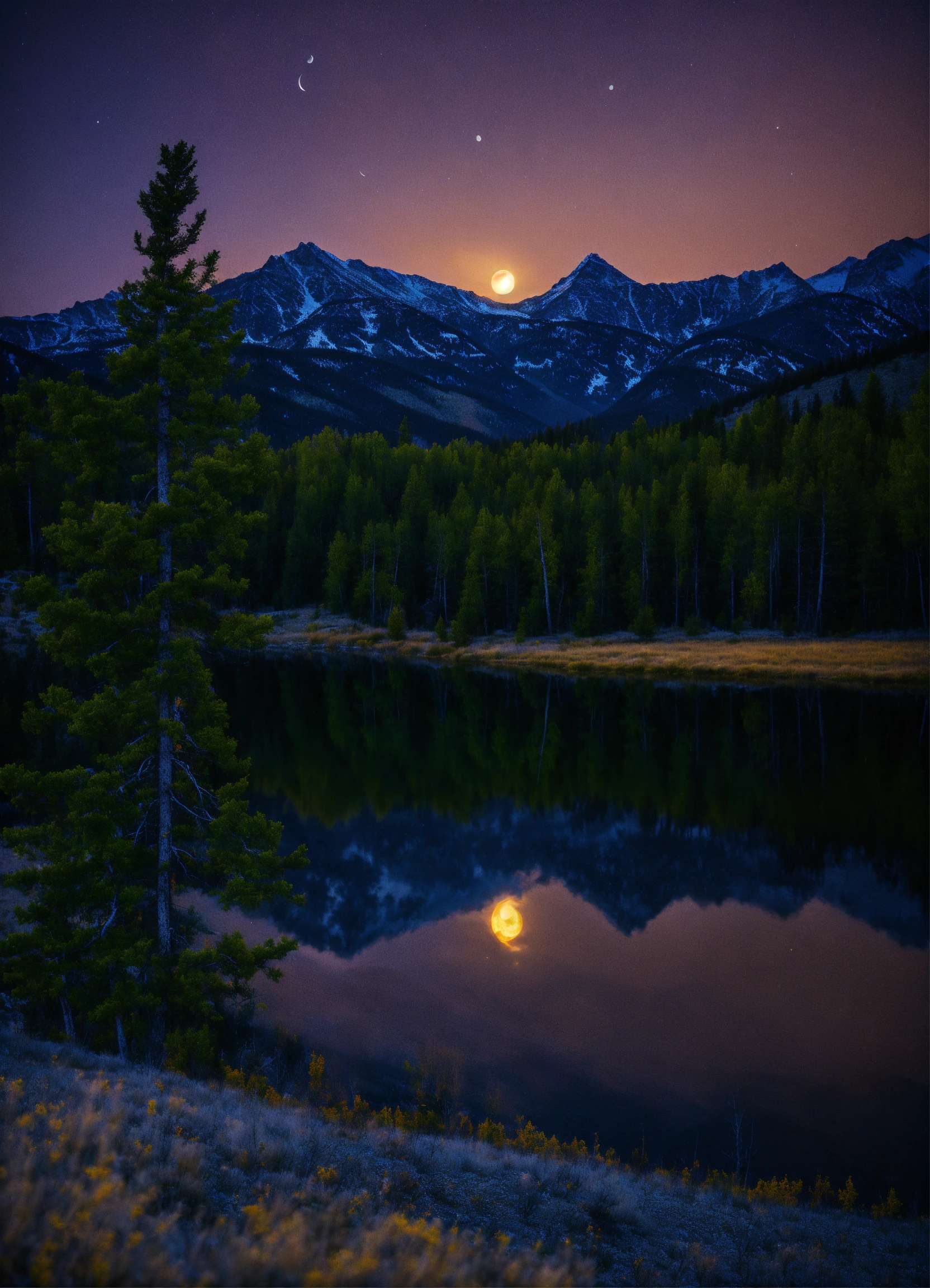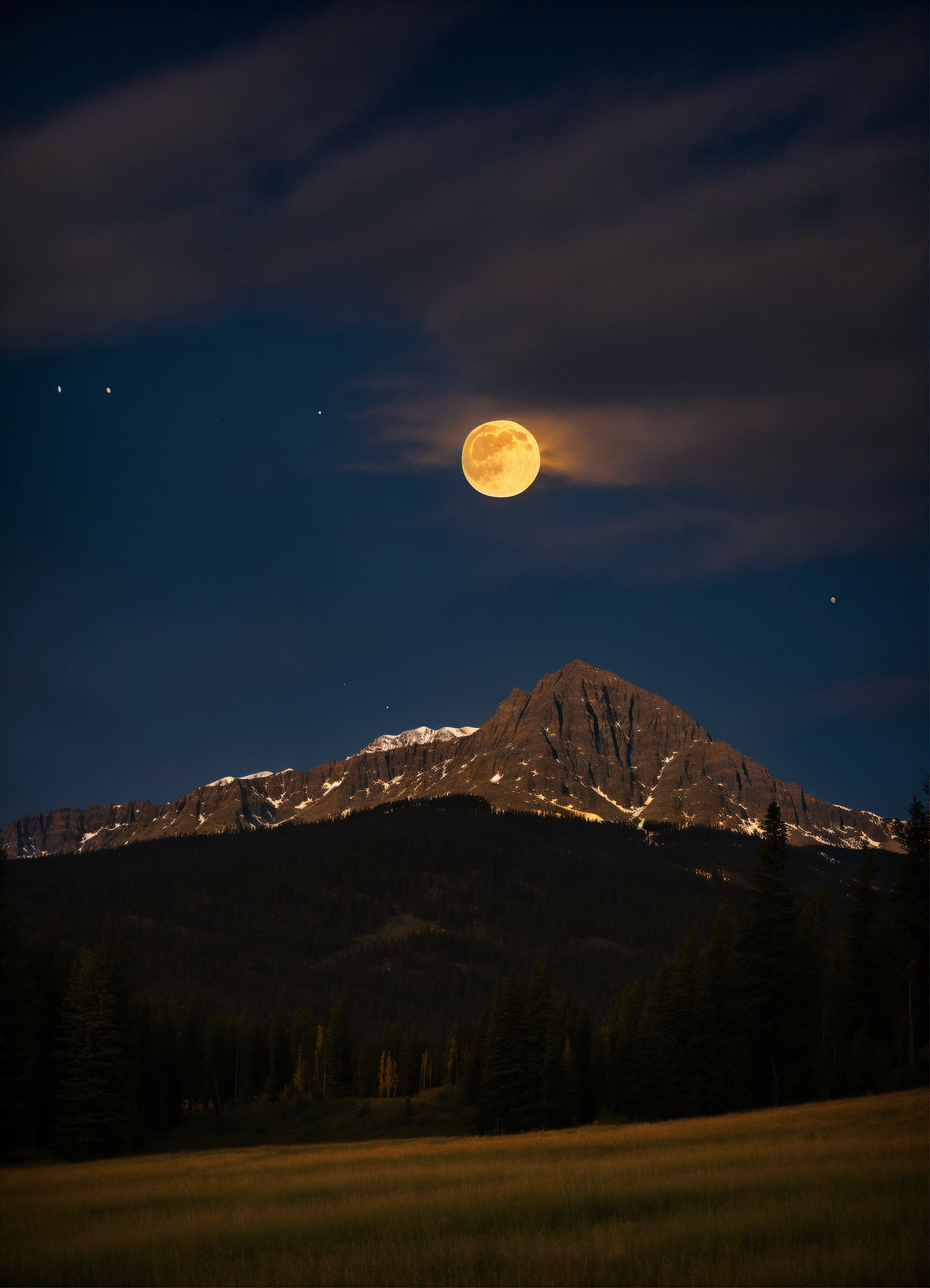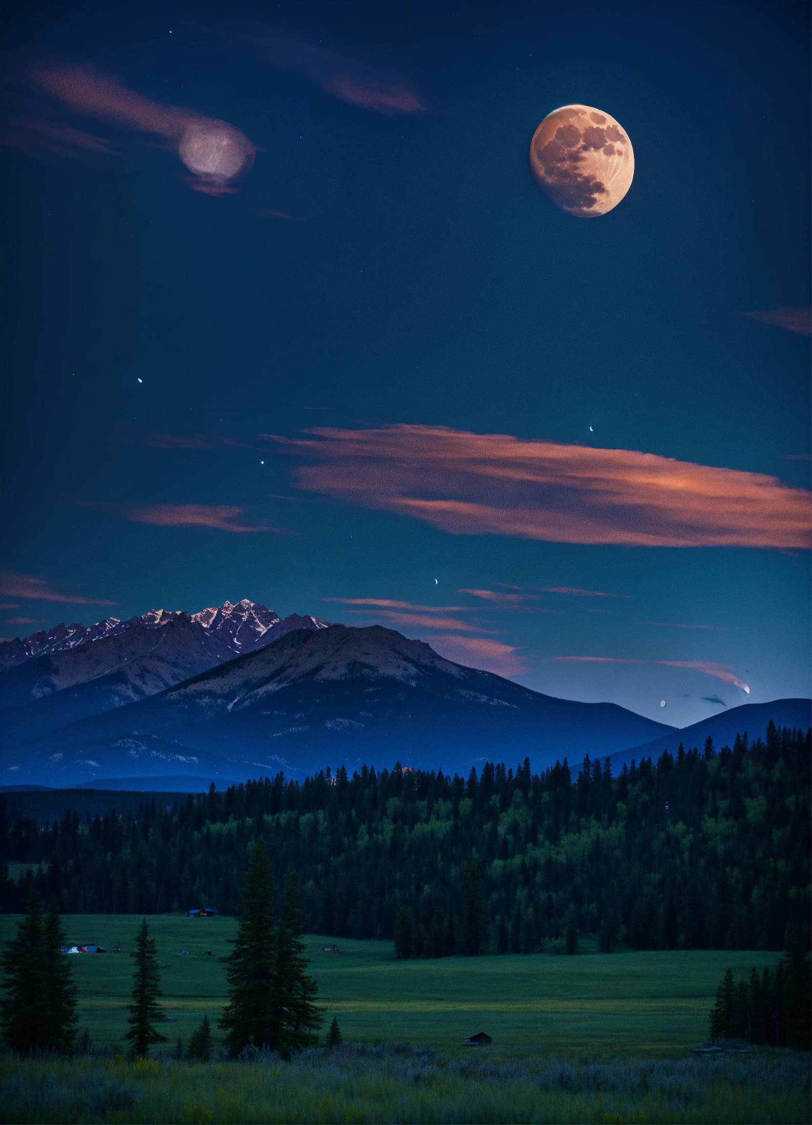 Montana mountain night dreamlike moon