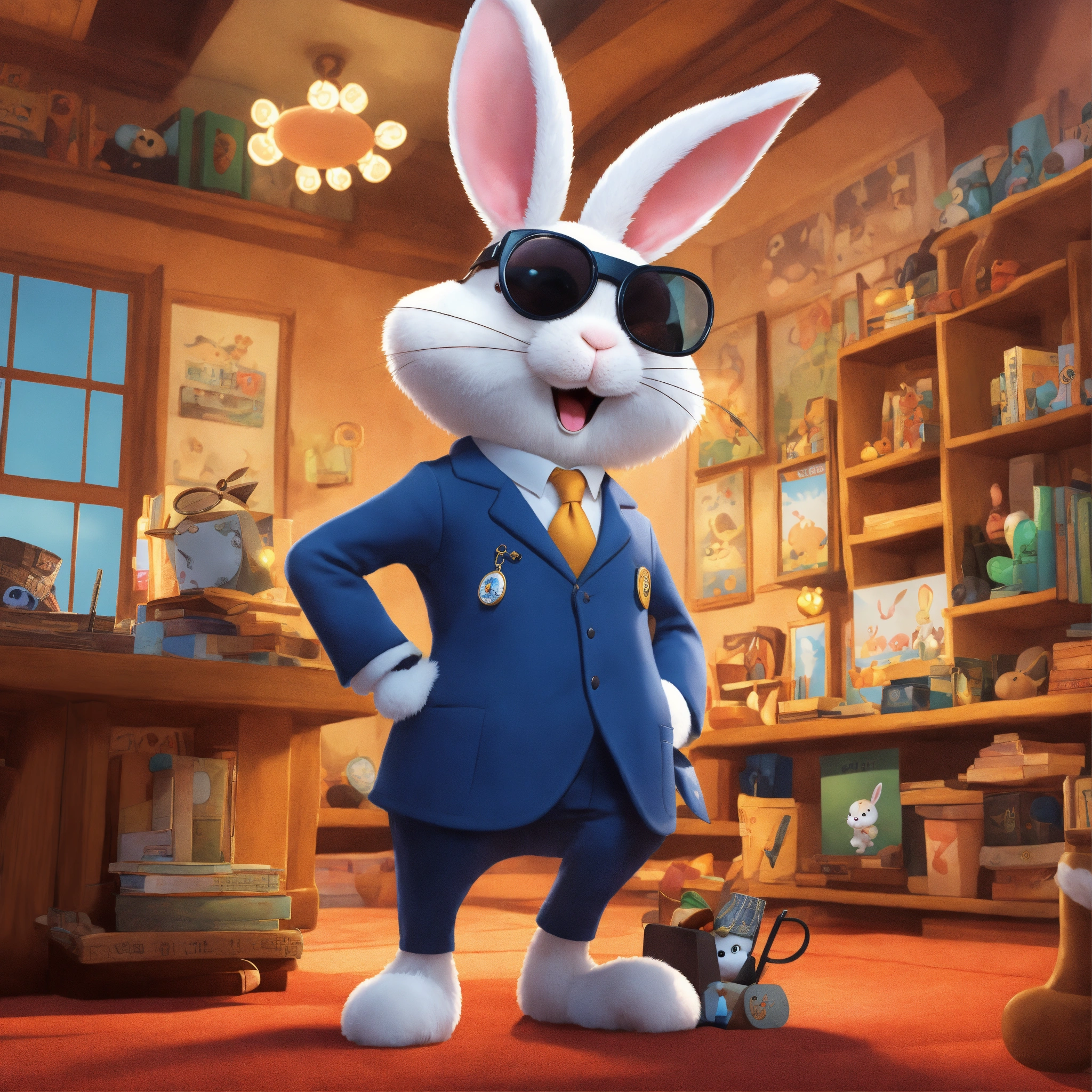 Imagine a charming secret agent rabbit, a character that seamlessly combines the allure of a cartoon rabbit with the intrigue of espionage. this character, named 'bunzo the secret agent rabbit, ' possesses an oversized head and an endearing personality, effortlessly blending the cuteness of a classic cartoon character with the world of espionage. clad in a sleek and stylish secret agent attire, complete with hidden gadgets and a confident expression, bunzo navigates a world where missions are mixed with adorable escapades. 'bunzo the secret agent rabbit' invites you to embark on an adventure where the magic of cartoon artistry meets the thrilling world of secret agents, creating a character that captures the essence of charm, mystery, and heartwarming heroics.