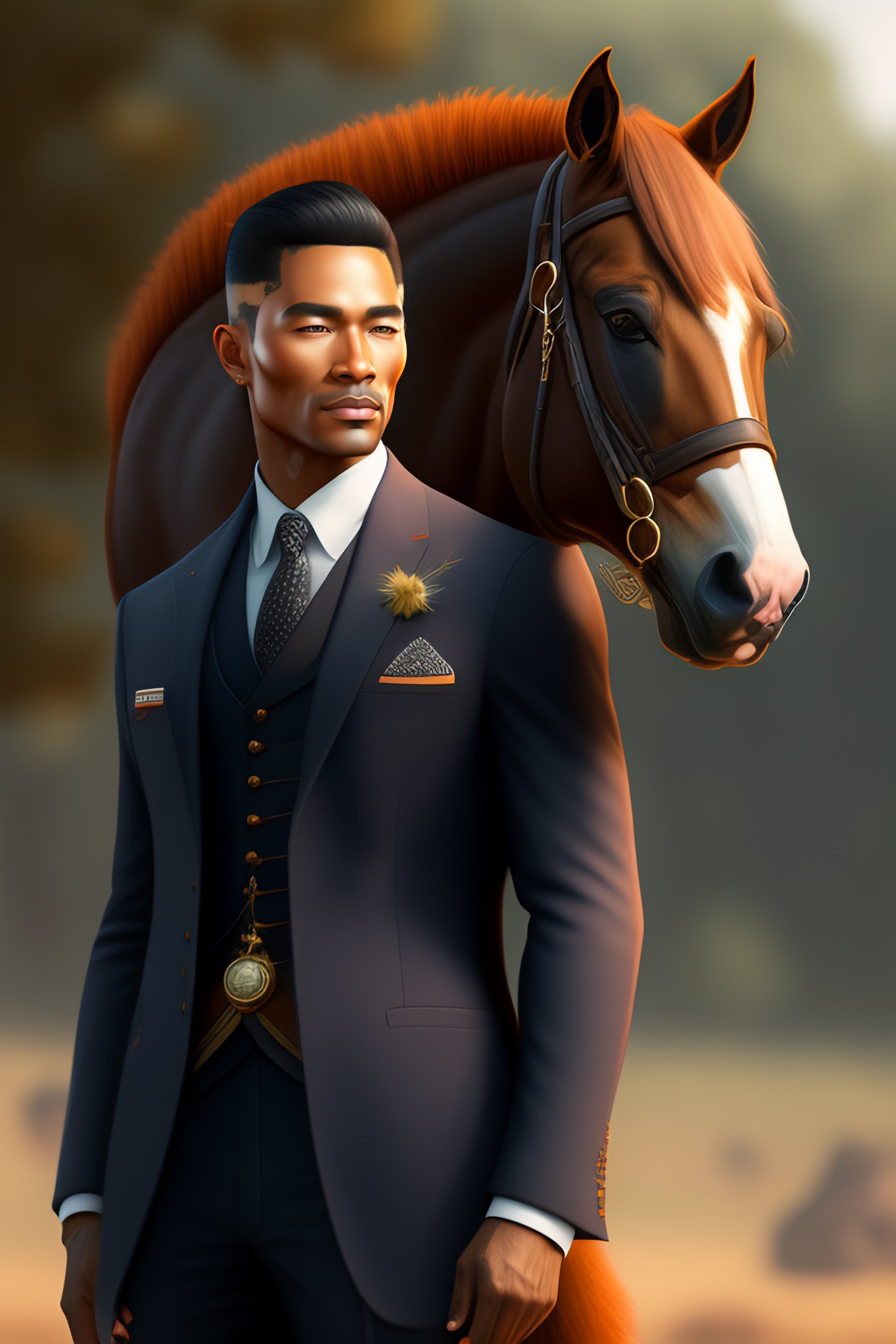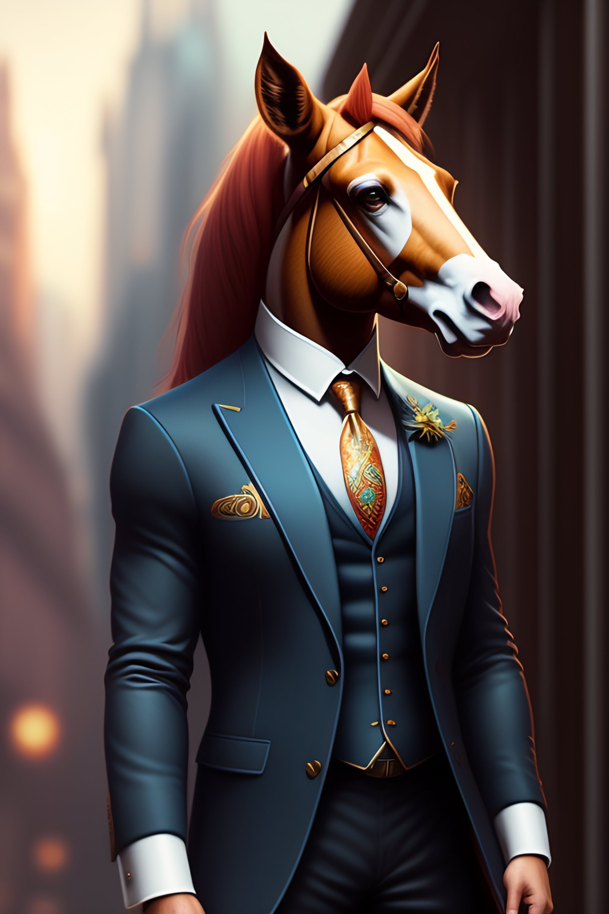 Anthro furry humanoid horse, three piece suit, checking watch, character concept design, painting, detailed, vivid, trending on artstation
