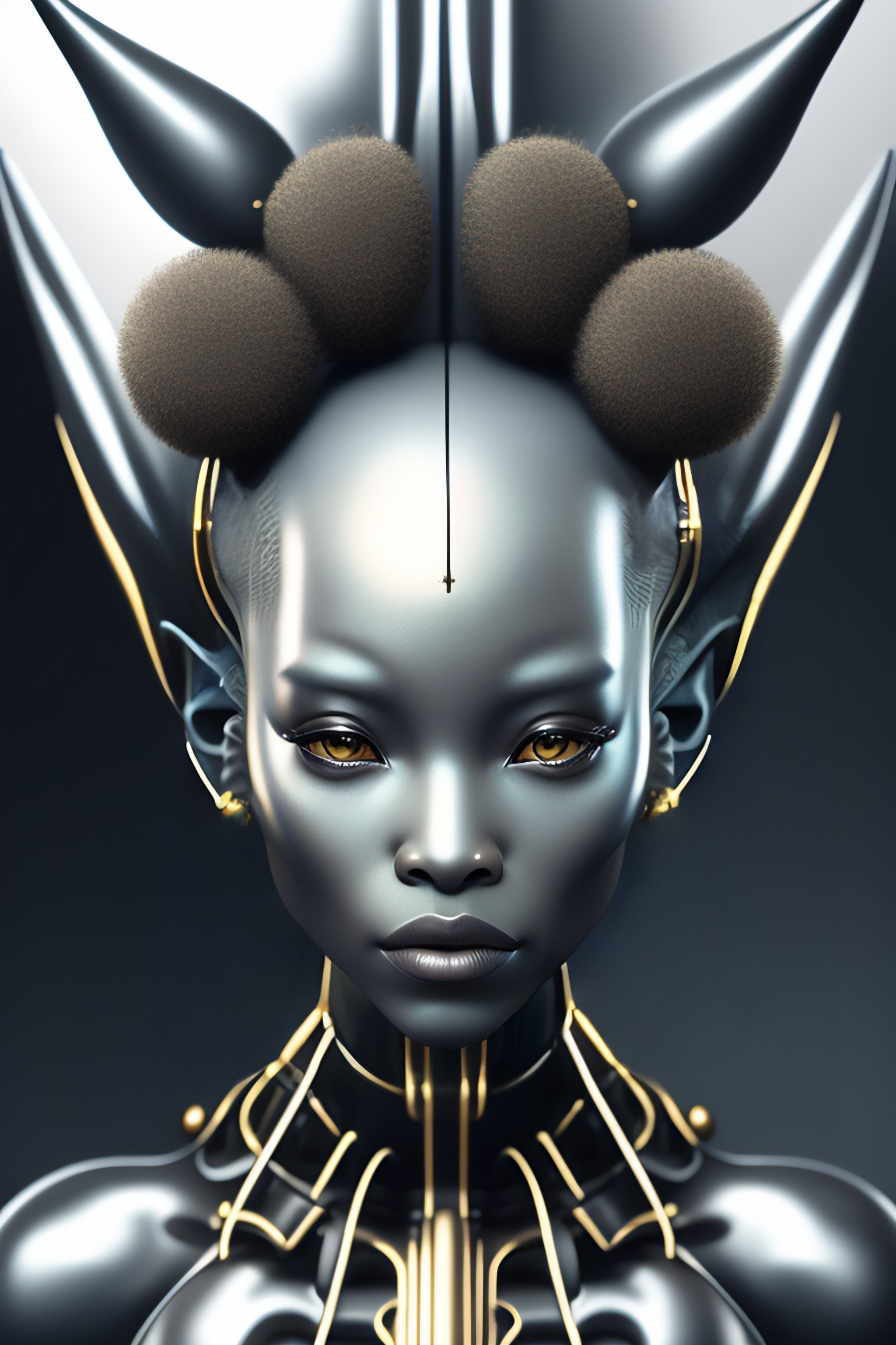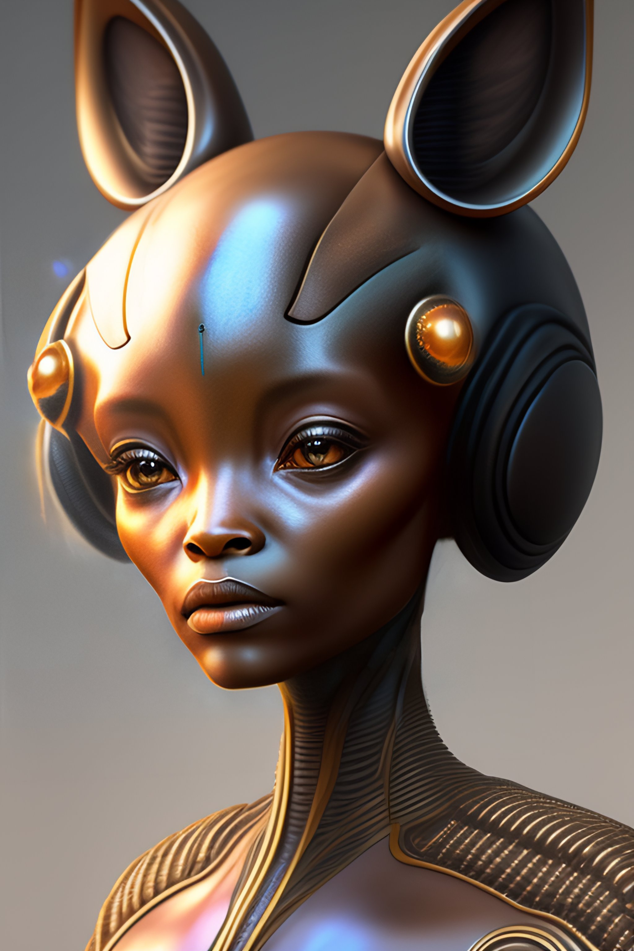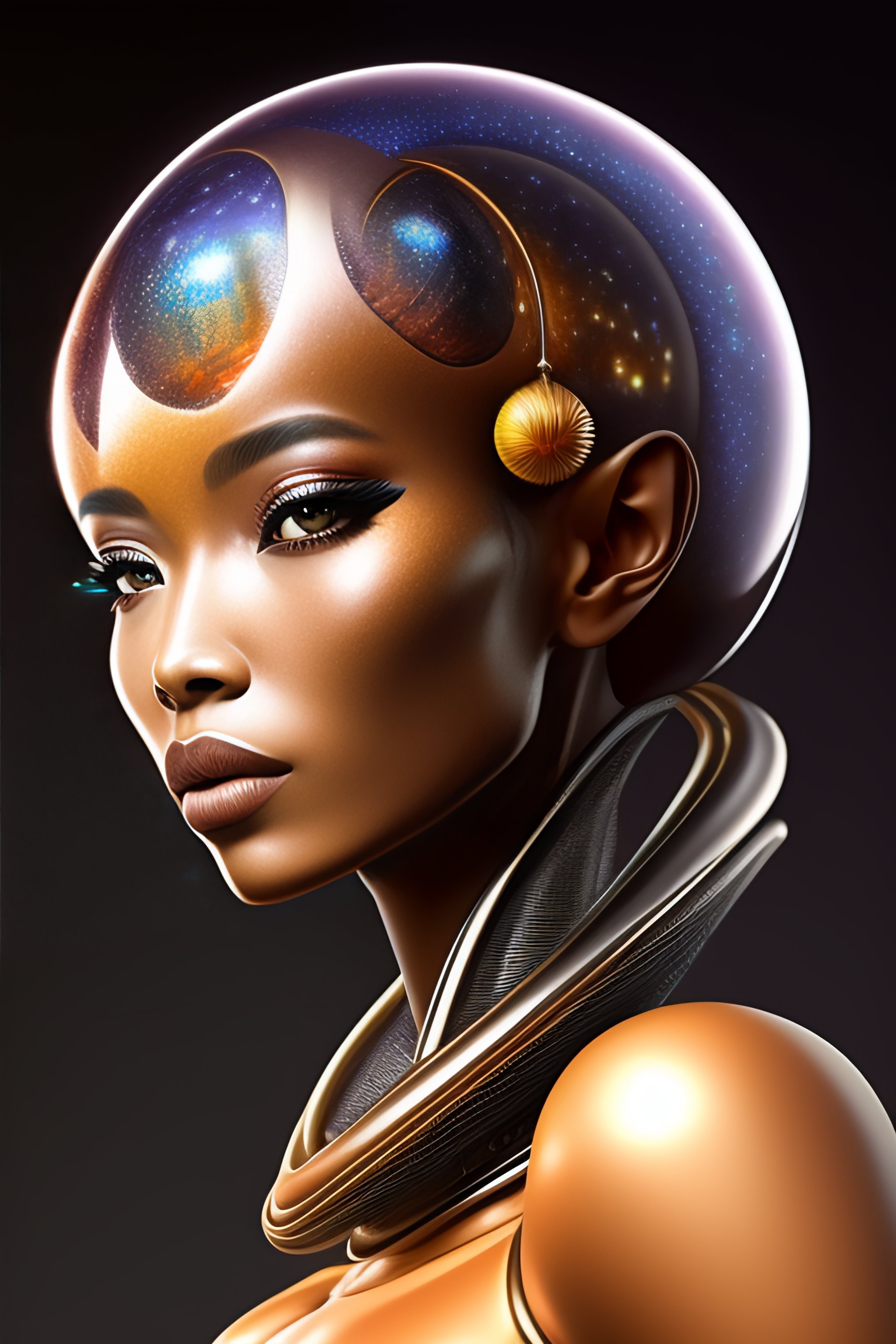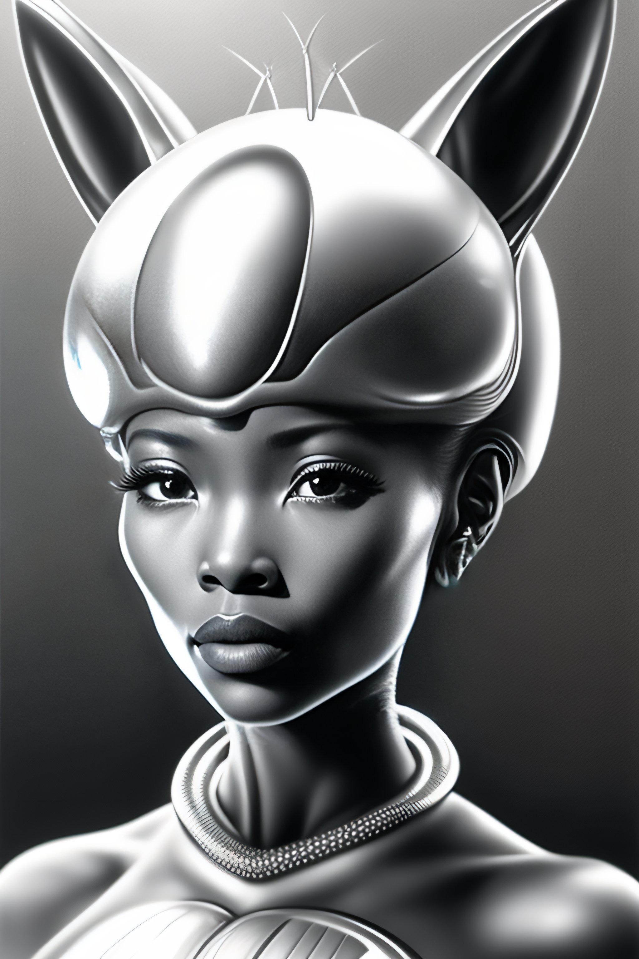 Detailed realistic drawing of, an alien humanoid species with antennas in the head and a third sphere on the head
