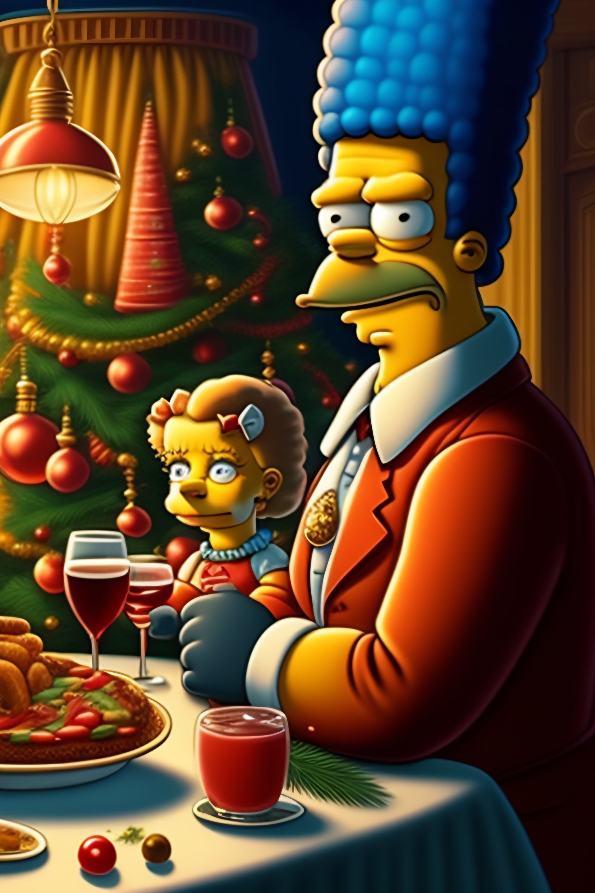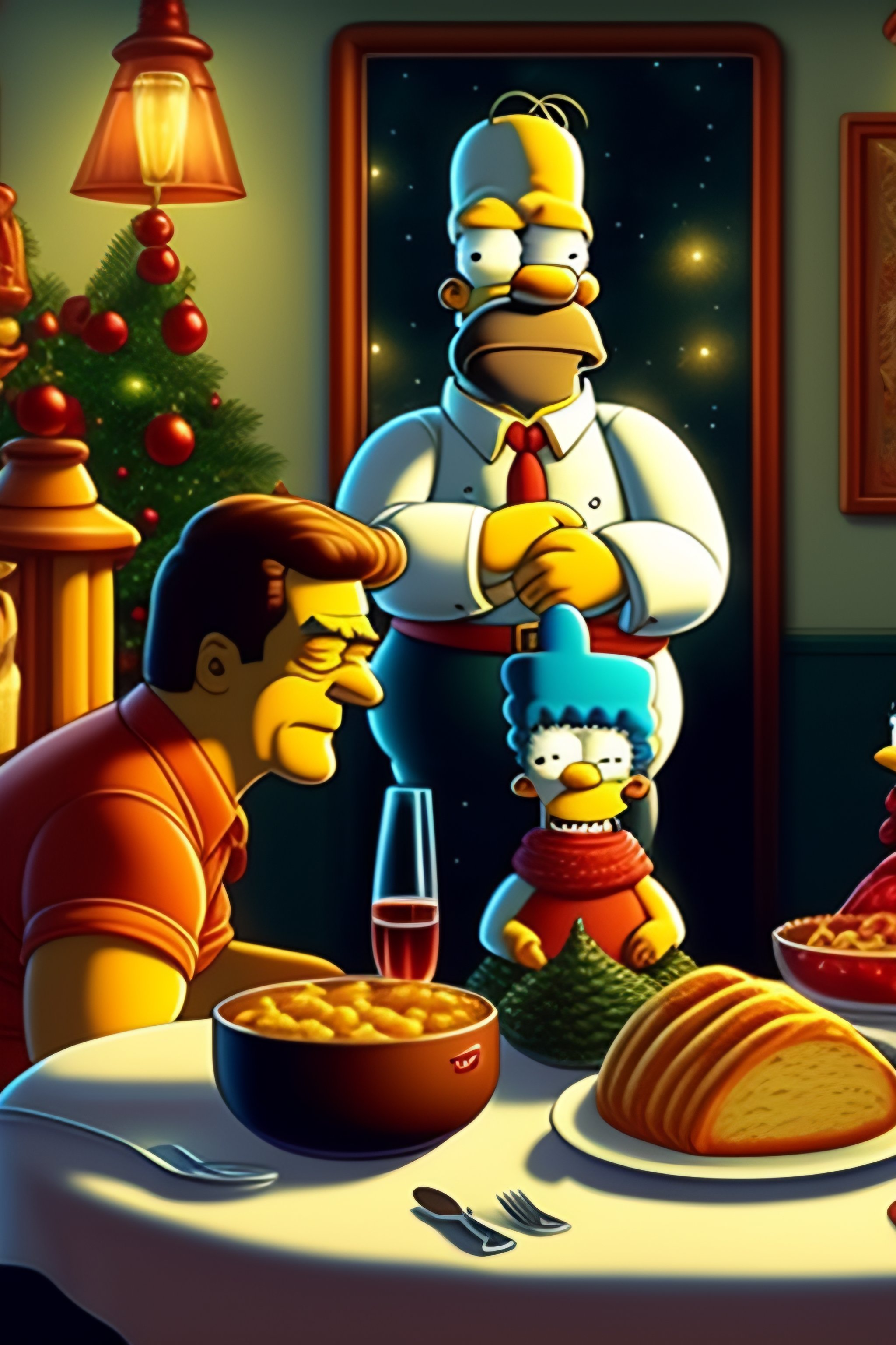 A simpsons on a christmast dinner