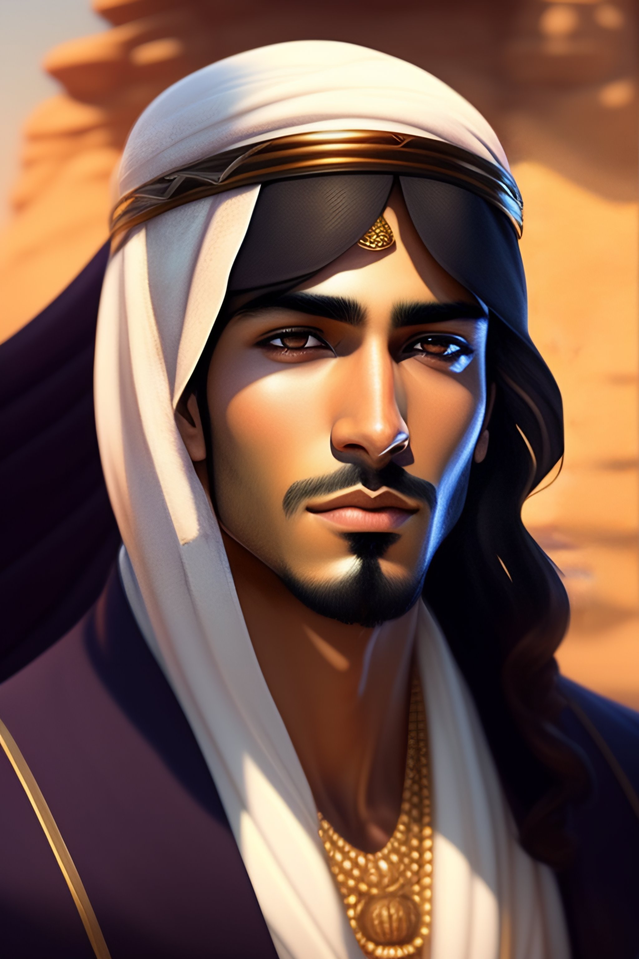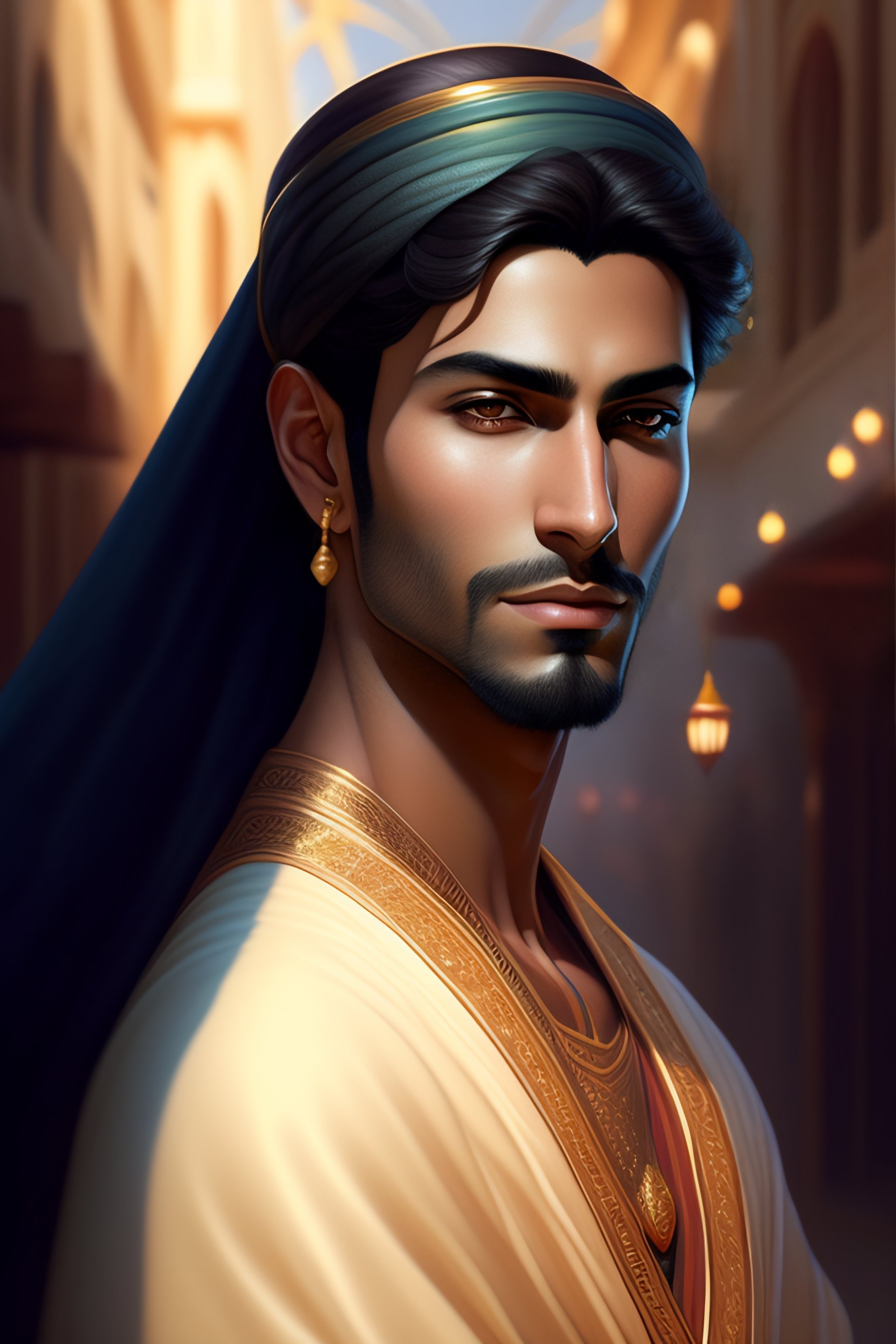 A potrait of an arabian prince with big and cute eyes, fine-face, realistic shaded perfect face, fine details. night setting. very anime style. realistic shaded lighting poster by ilya kuvshinov katsuhiro, magali villeneuve, artgerm, jeremy lipkin and michael garmash, rob rey and kentarõ miura style