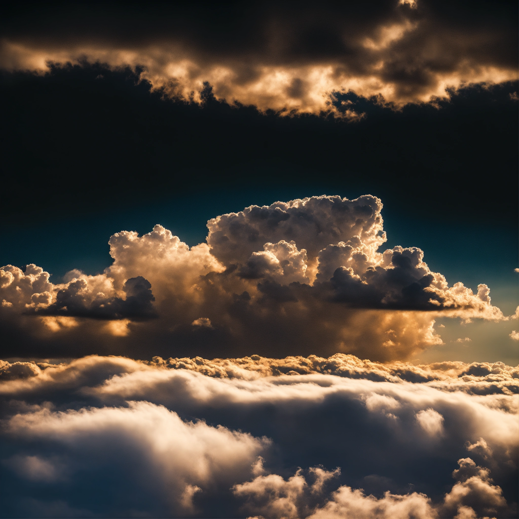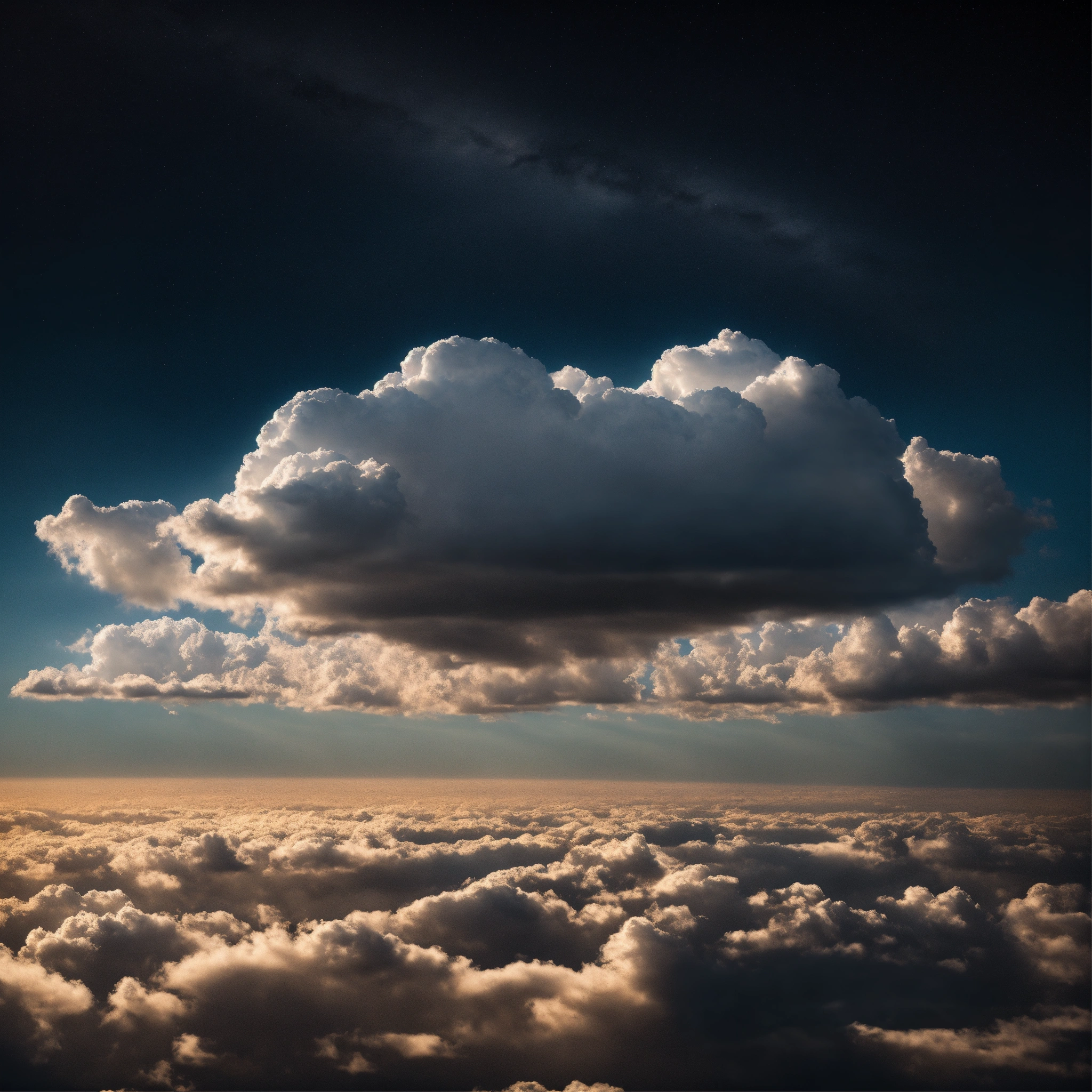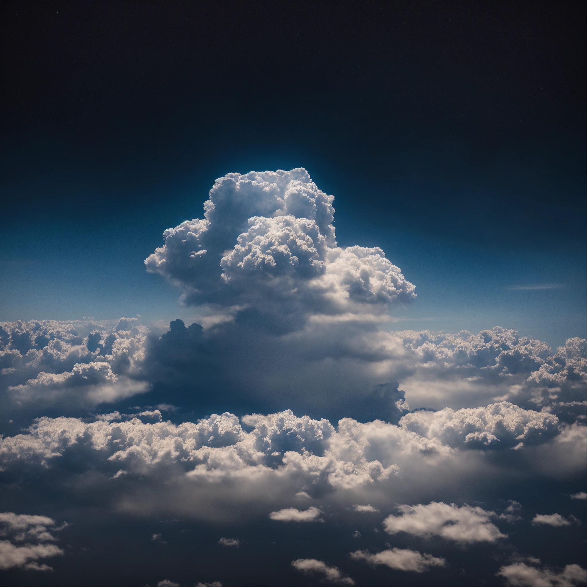 5 clouds around one large cloud in the center closer to each other, black background, a lot of empty space around