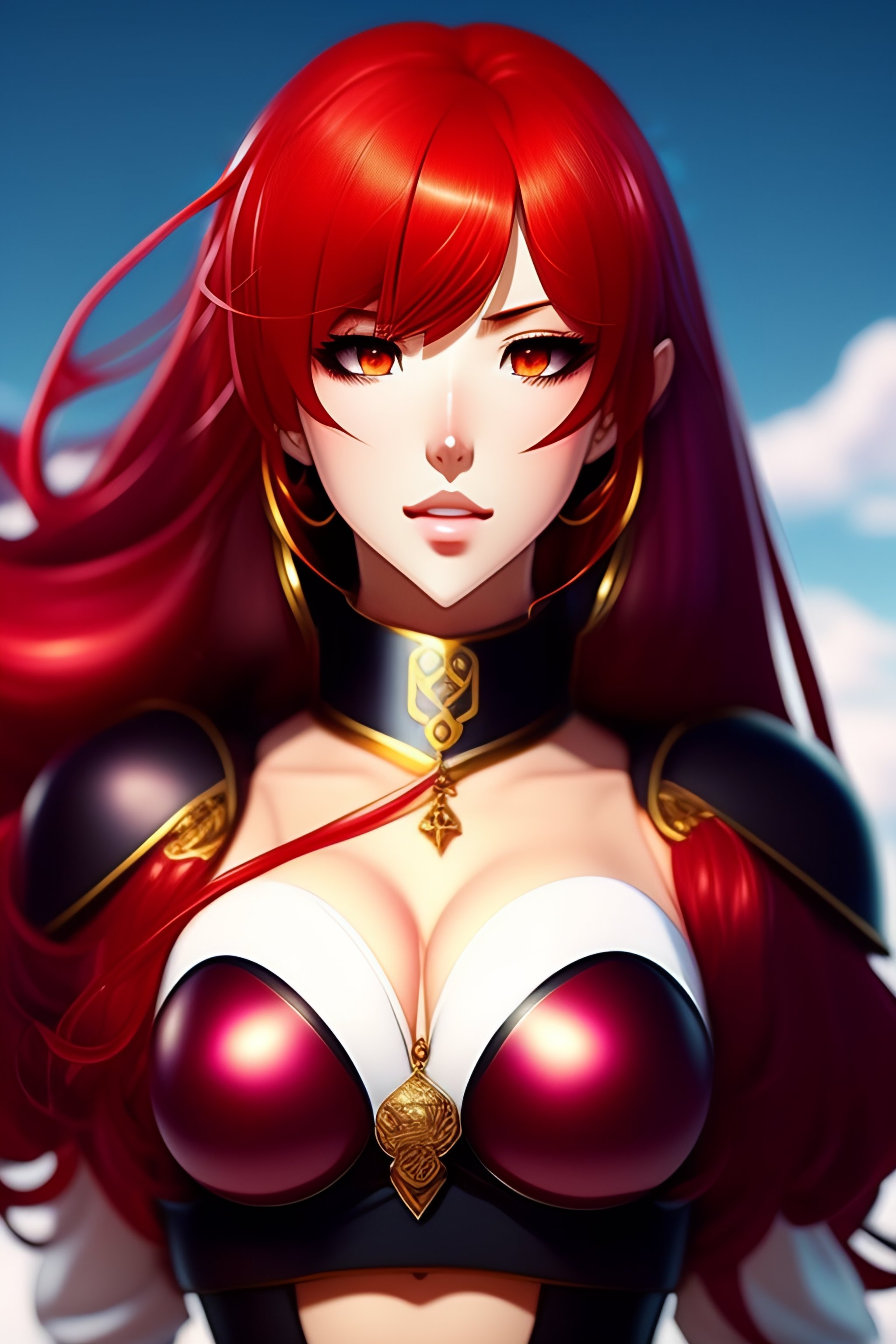 red hair and a huge chest