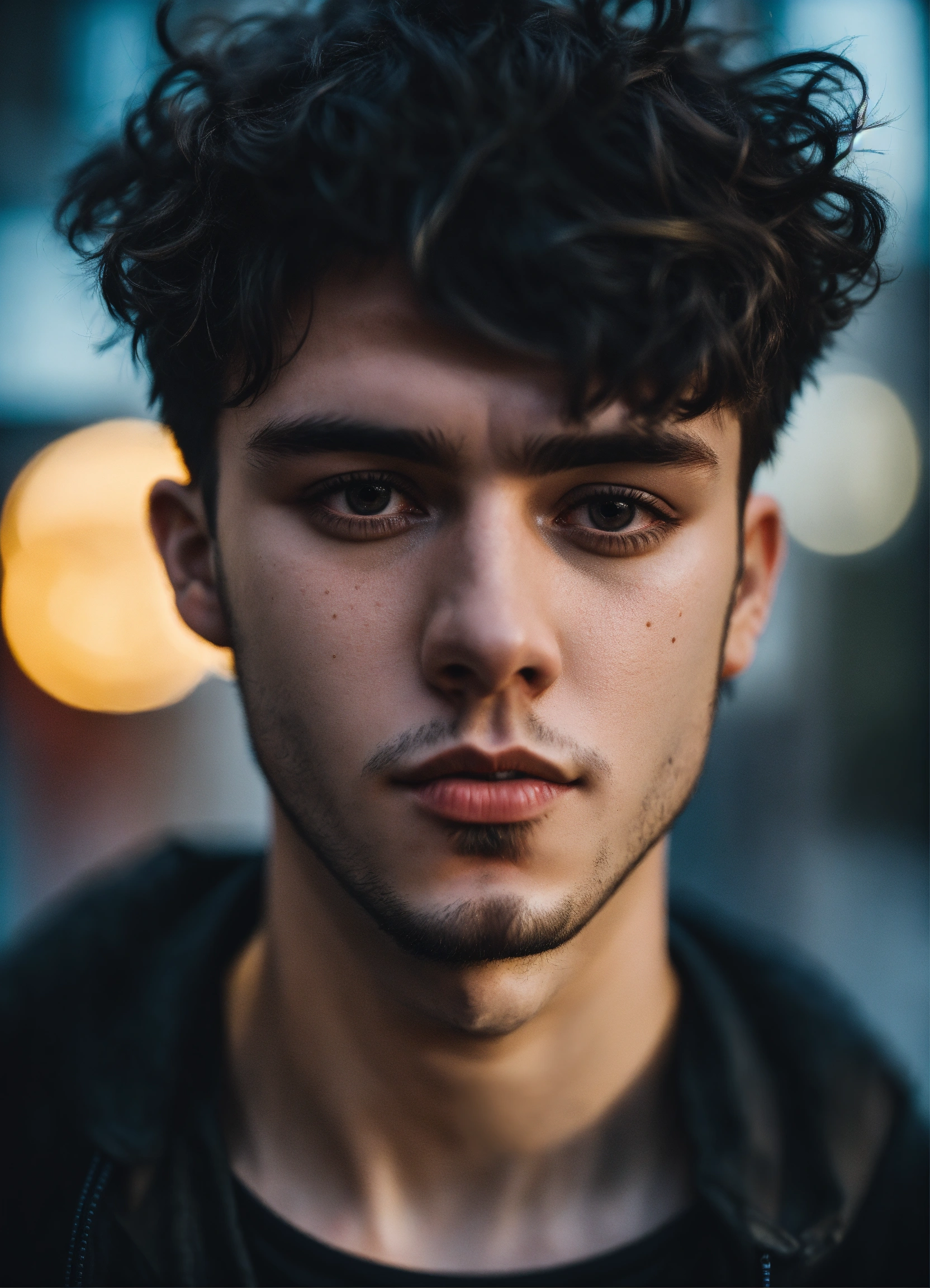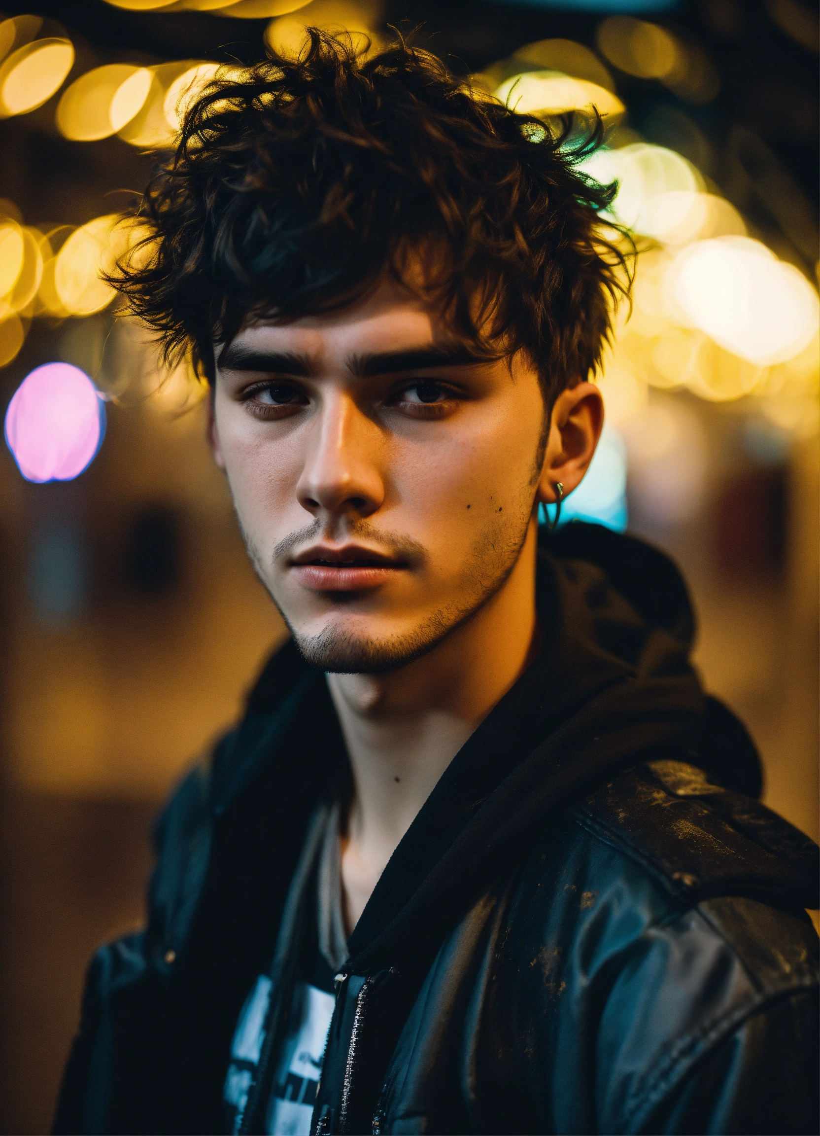 Highly detailed portrait of germany young man 24 years old, short black messy hair, black streetwear, cyberpunk, realism, black, grunge aesthetic!!! bokeh