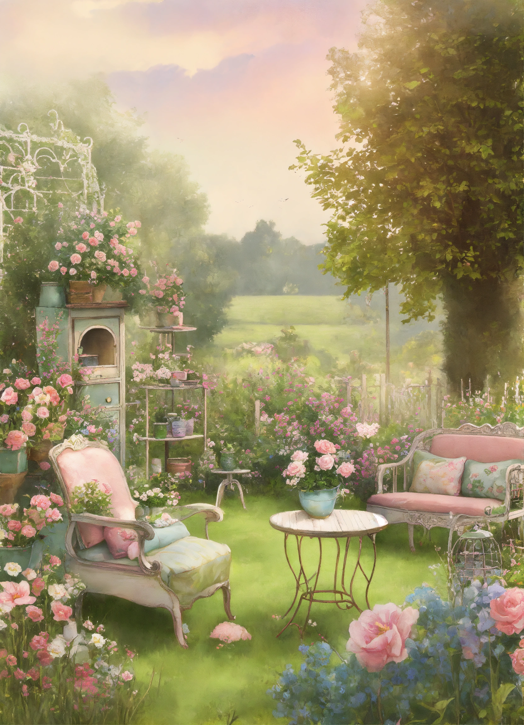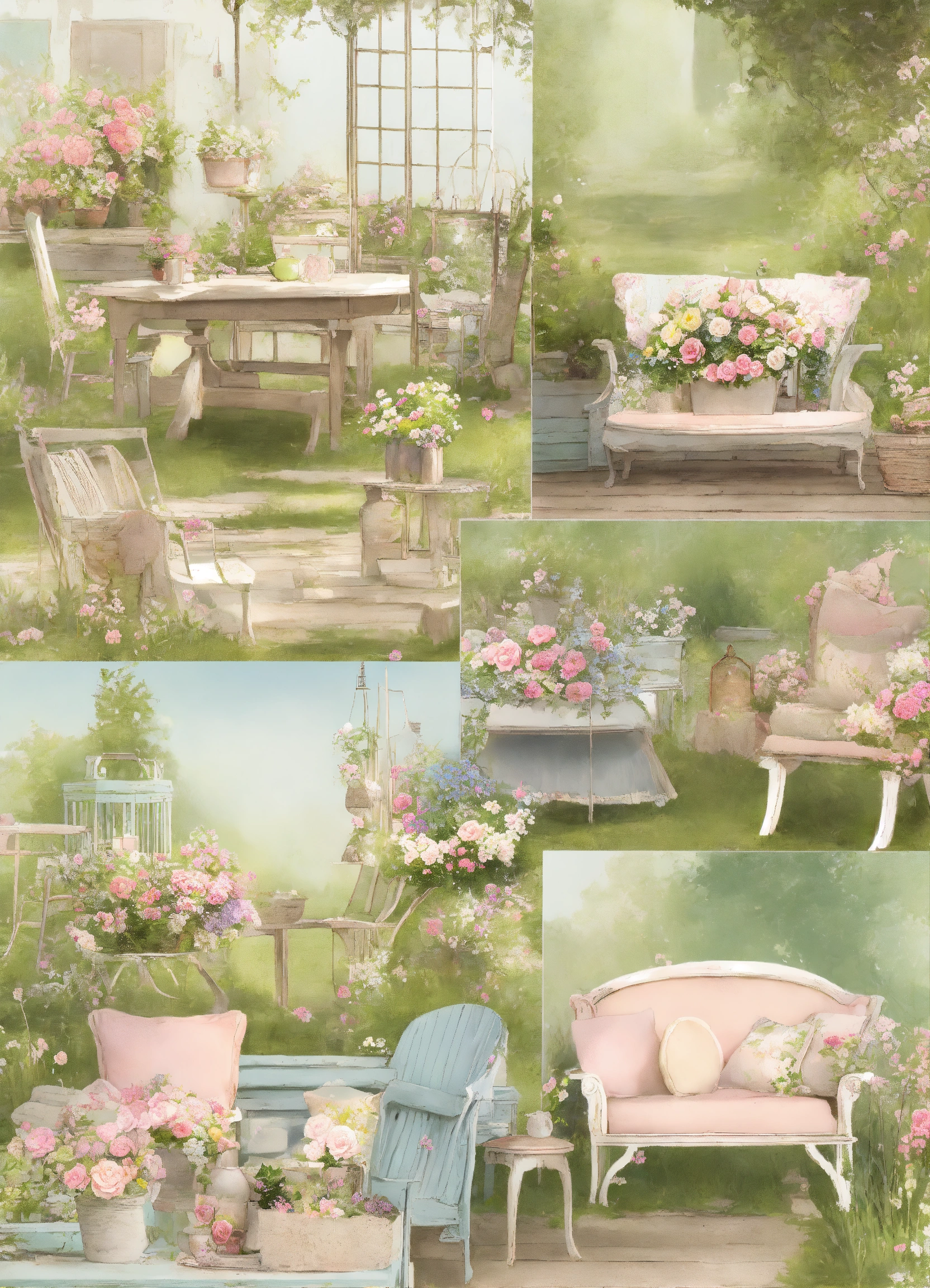 Shabby chic dreamy mist pastel junk journals can you make shabby chic a backyard with grass, flowers, terrace and english garden furniture stand alone as fussy cuts clipart to print and cut out