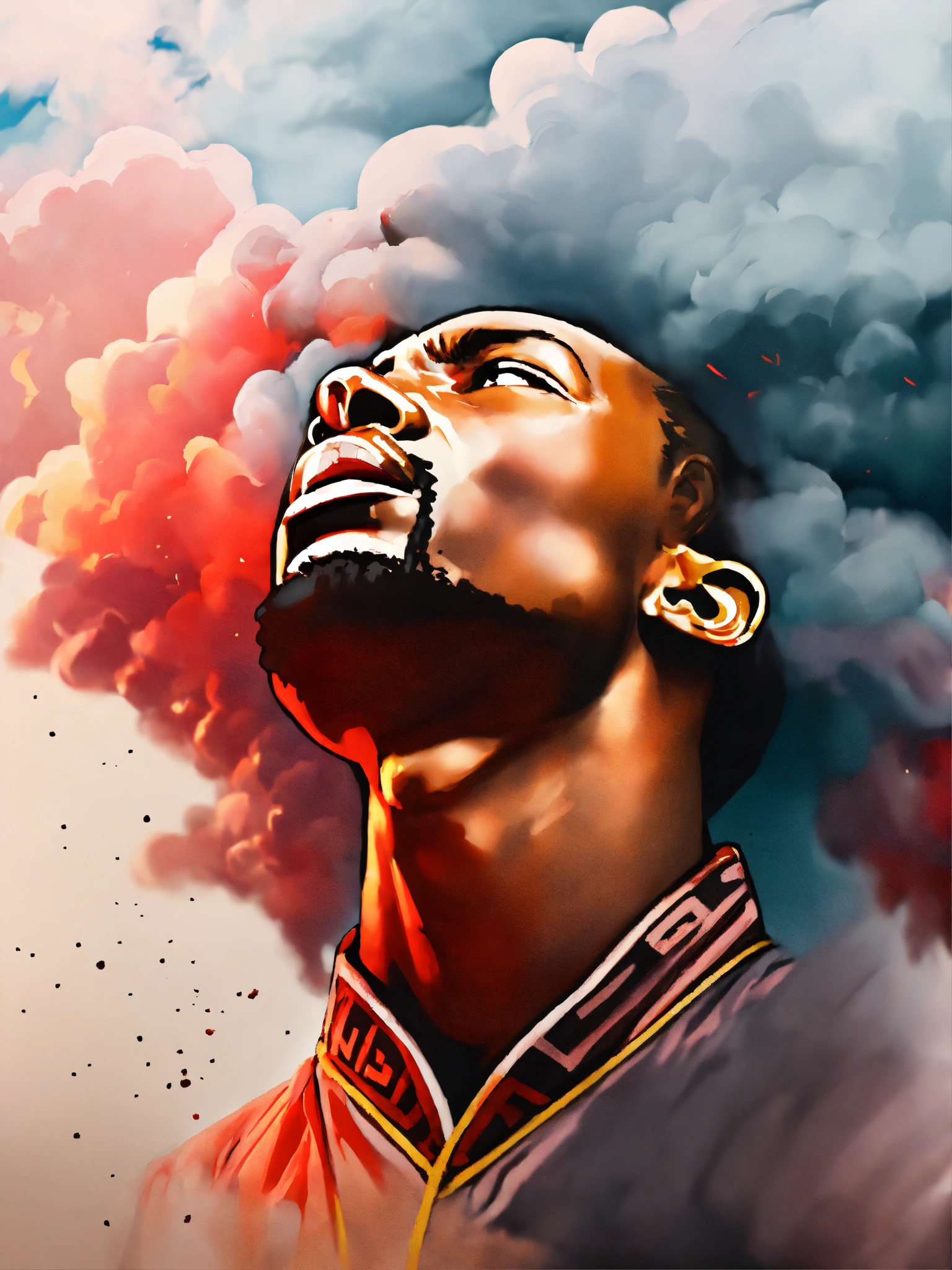 surrounded by red clouds