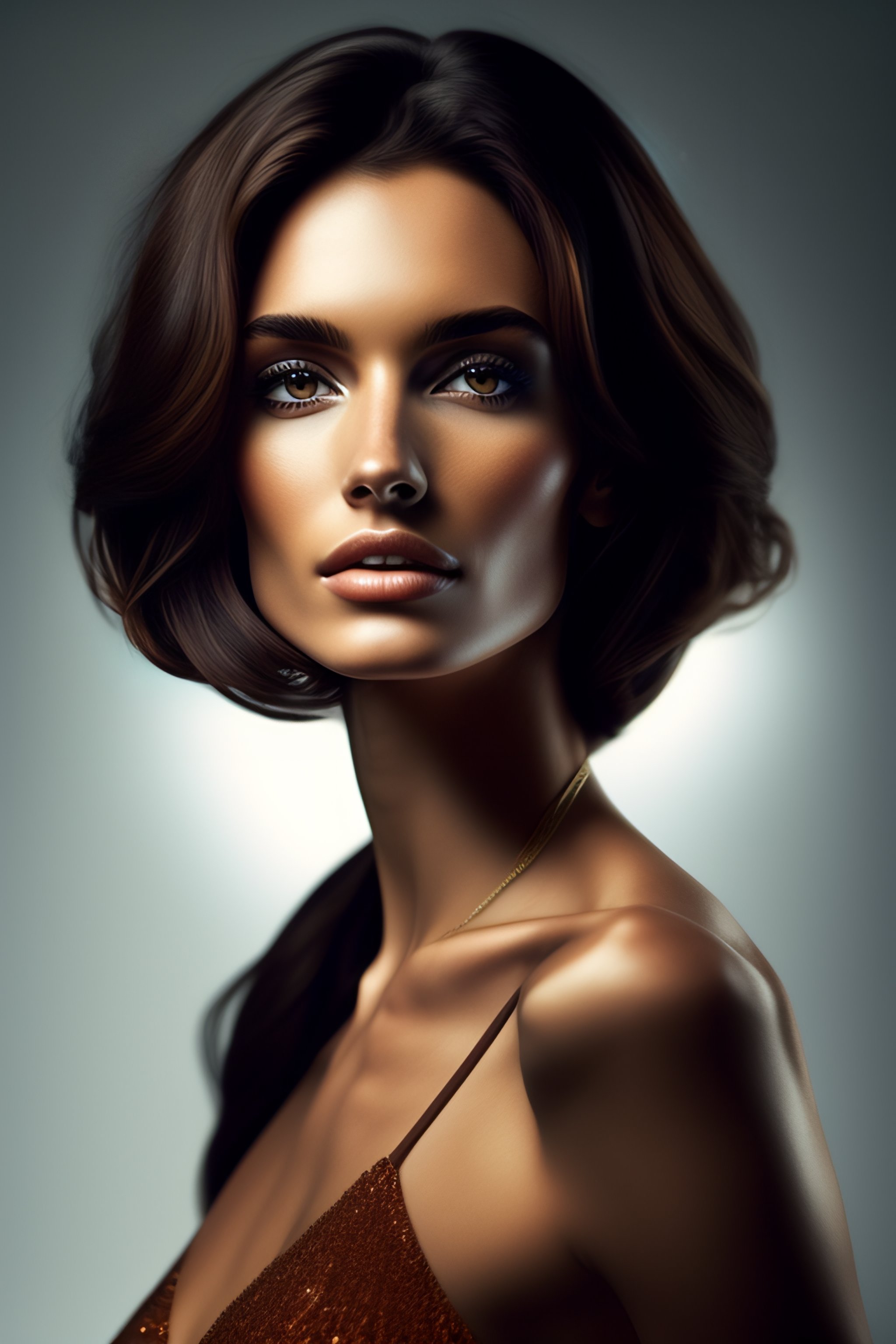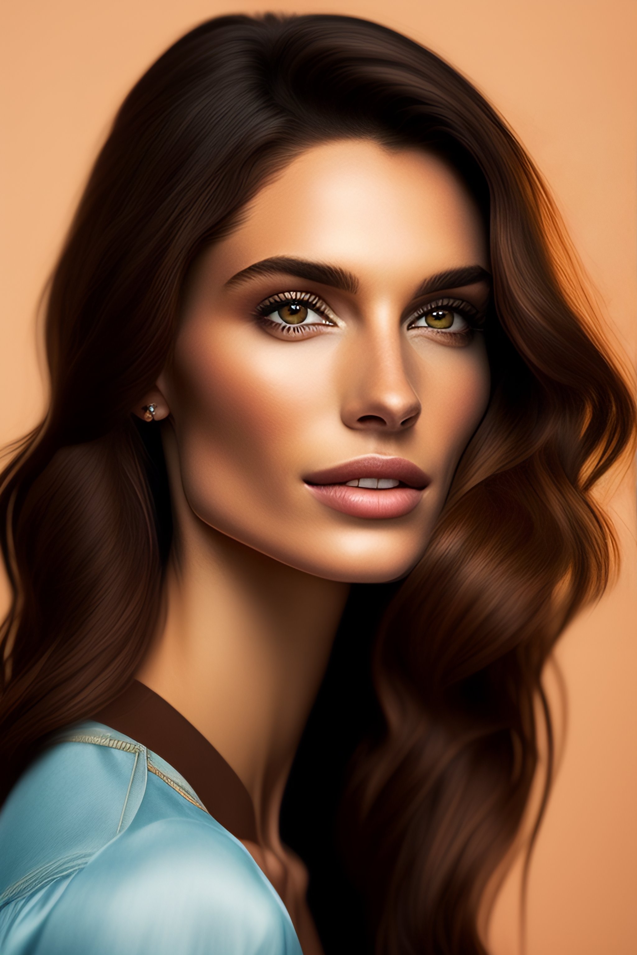 Tall slim brunette with brown eyes and a beautiful face