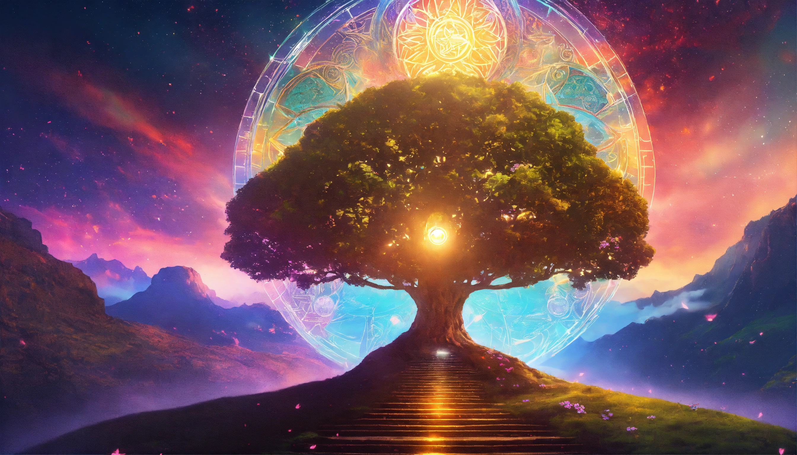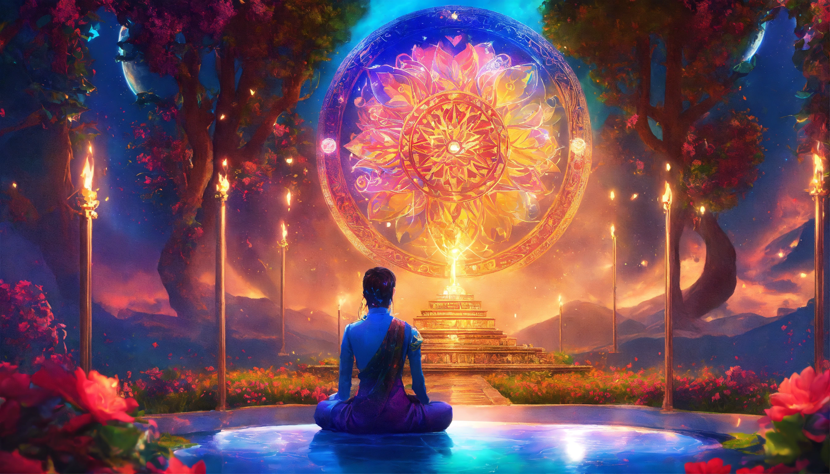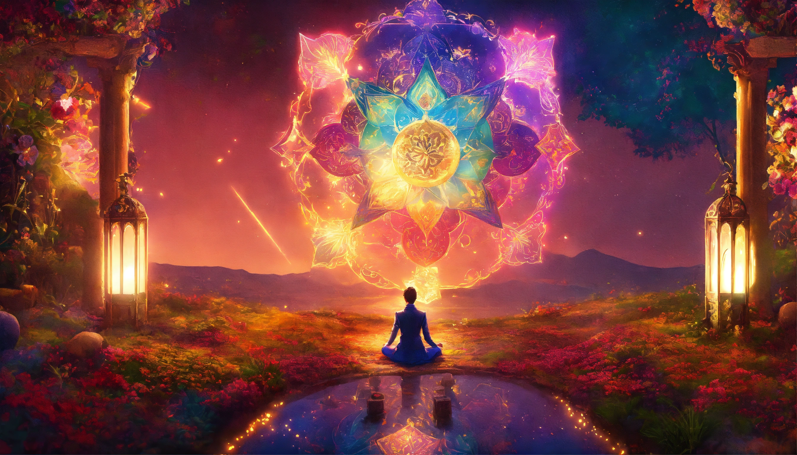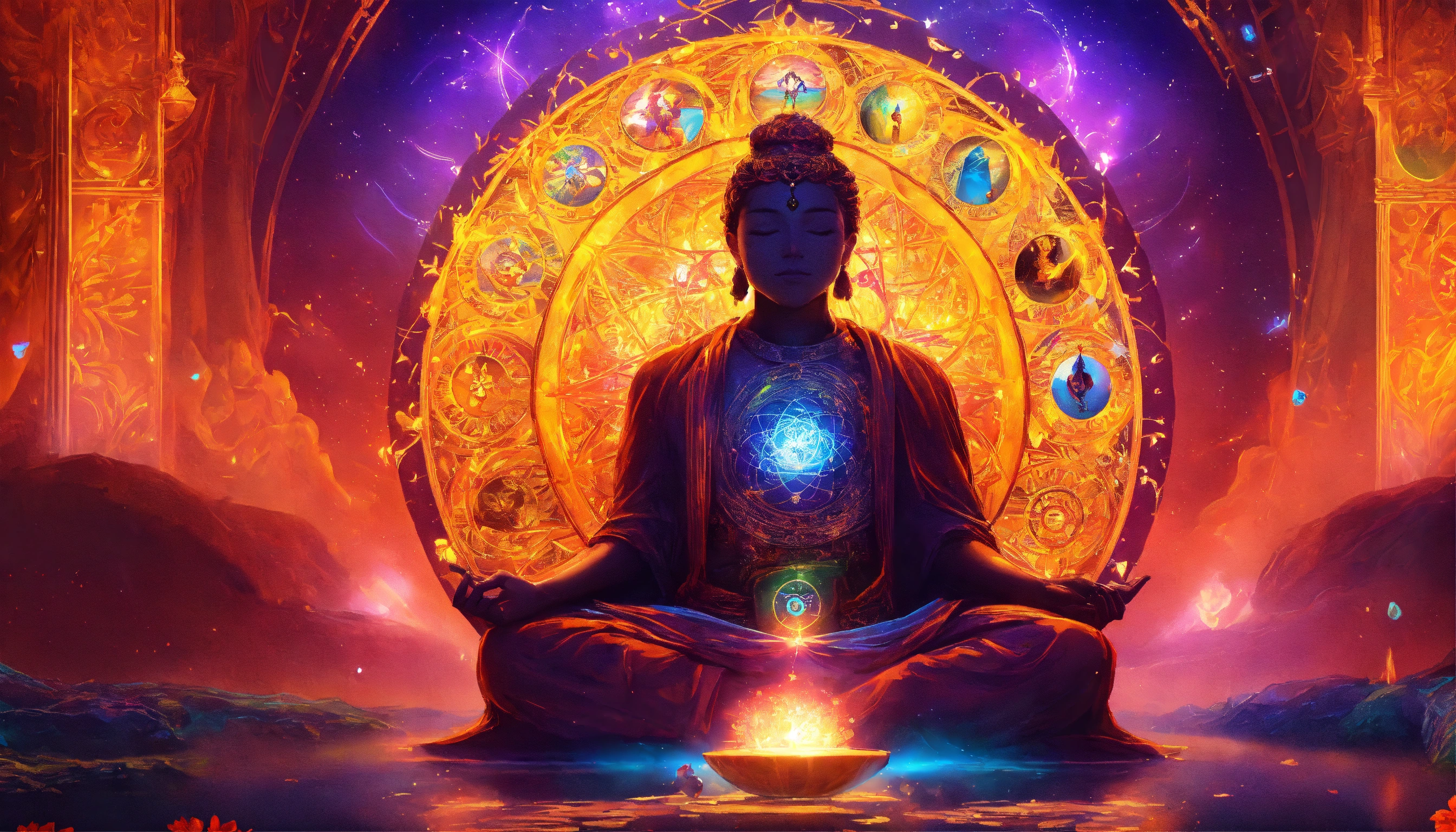 Generate an ai image for the 'awakening seed' youtube channel banner that combines elements of tarot cards, meditation, and self-motivation into a harmonious and visually captivating composition. incorporate vibrant colors, ethereal lighting, and a sense of spiritual awakening. the image should convey a sense of mystique and inspiration, inviting viewers to explore the world of tarot readings, meditation, and self-motivation on the channel