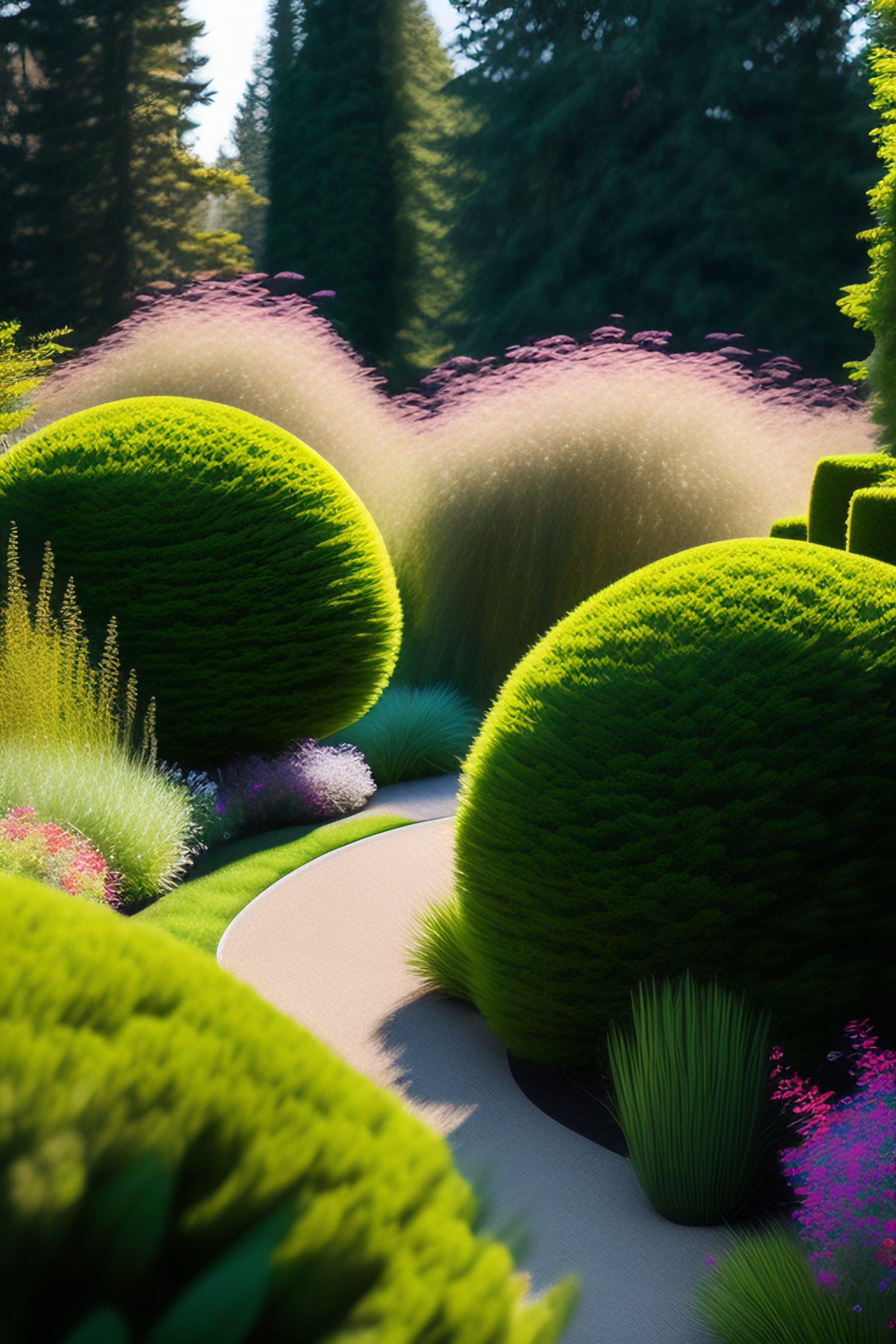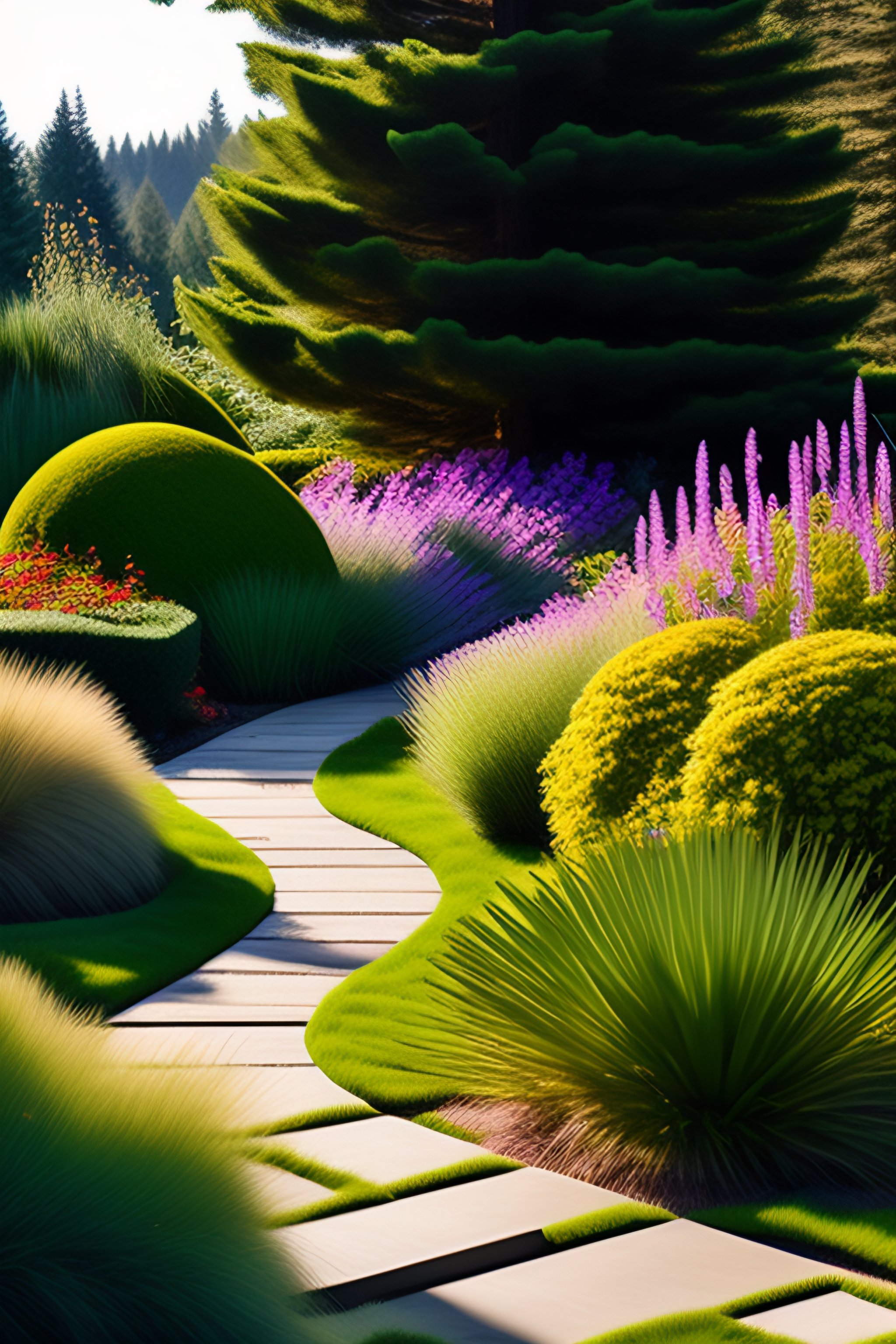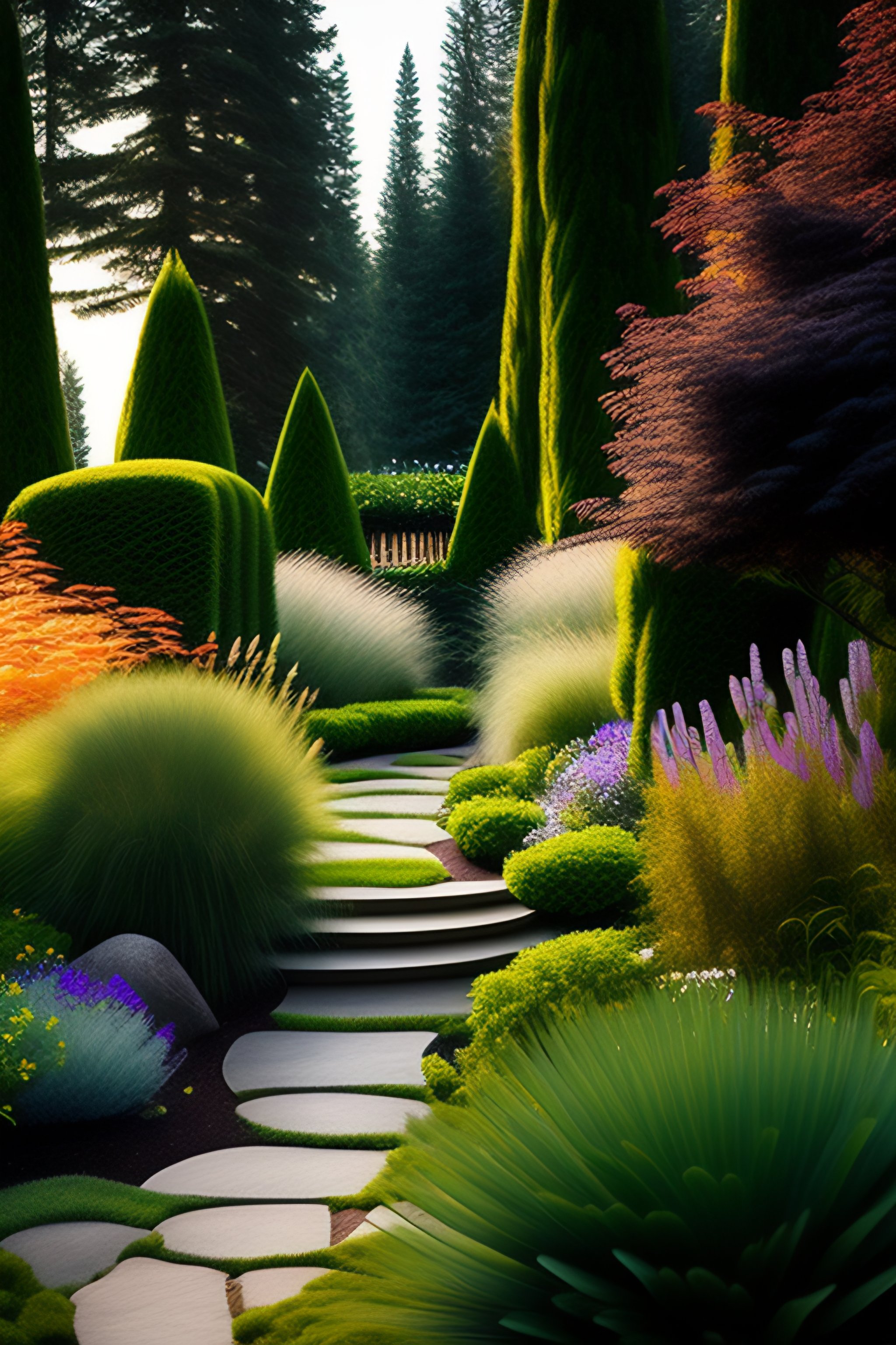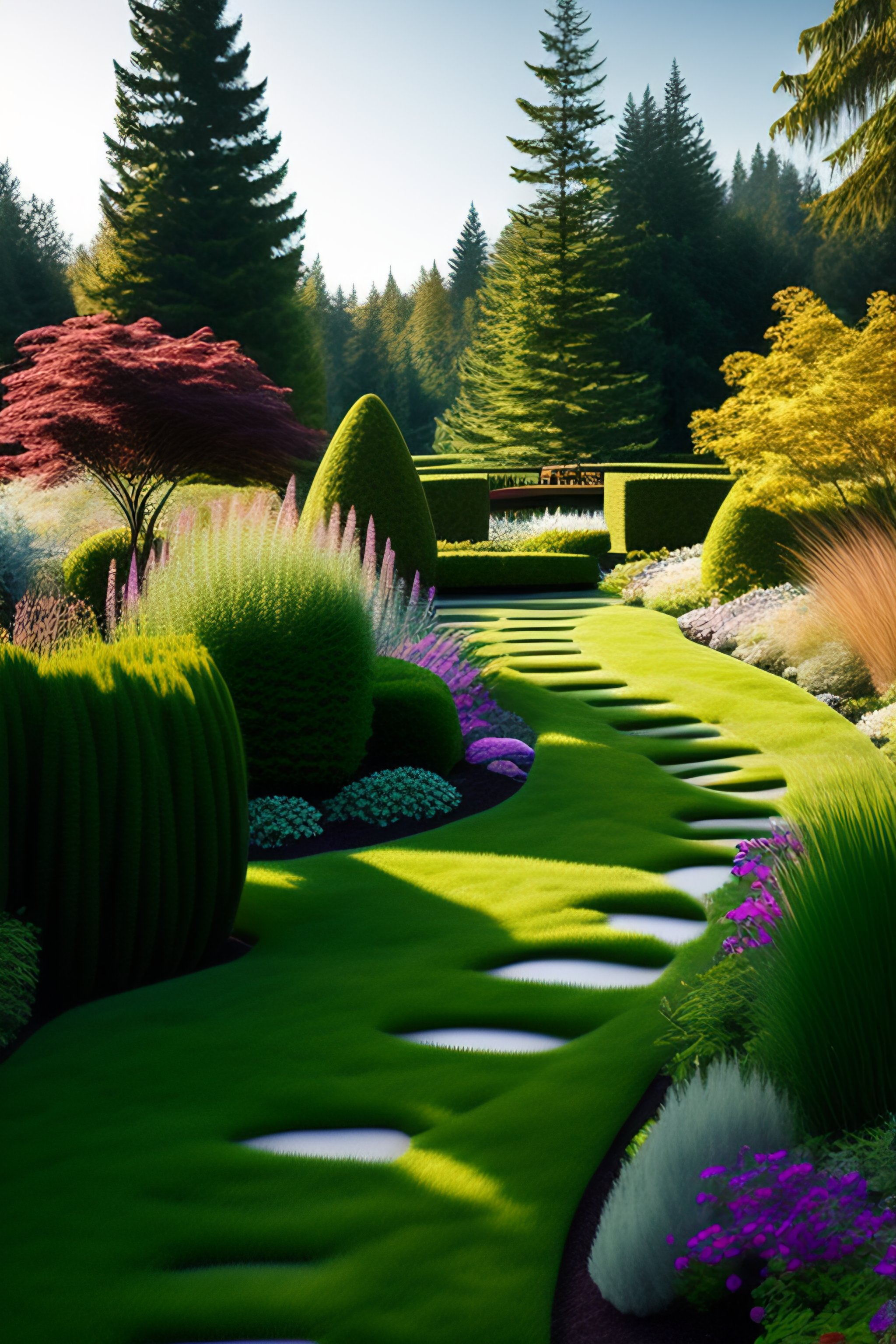 The ideal pacific northwest front yard landscape design, by olmsted, gorgeous combinations of deciduous trees and conifer trees, grasses, large leaves, small leaves, ferns, high dynamic range magazine photography